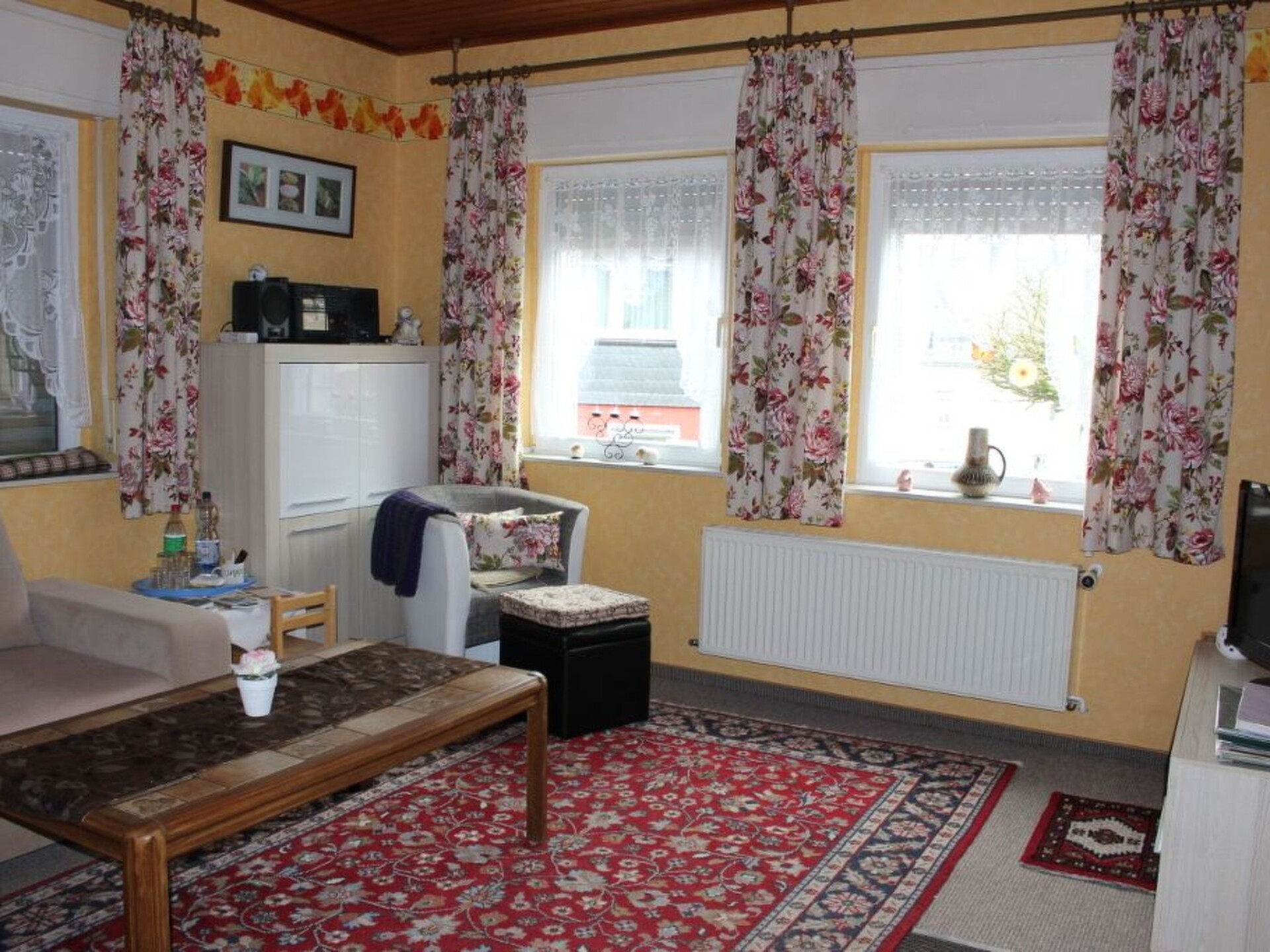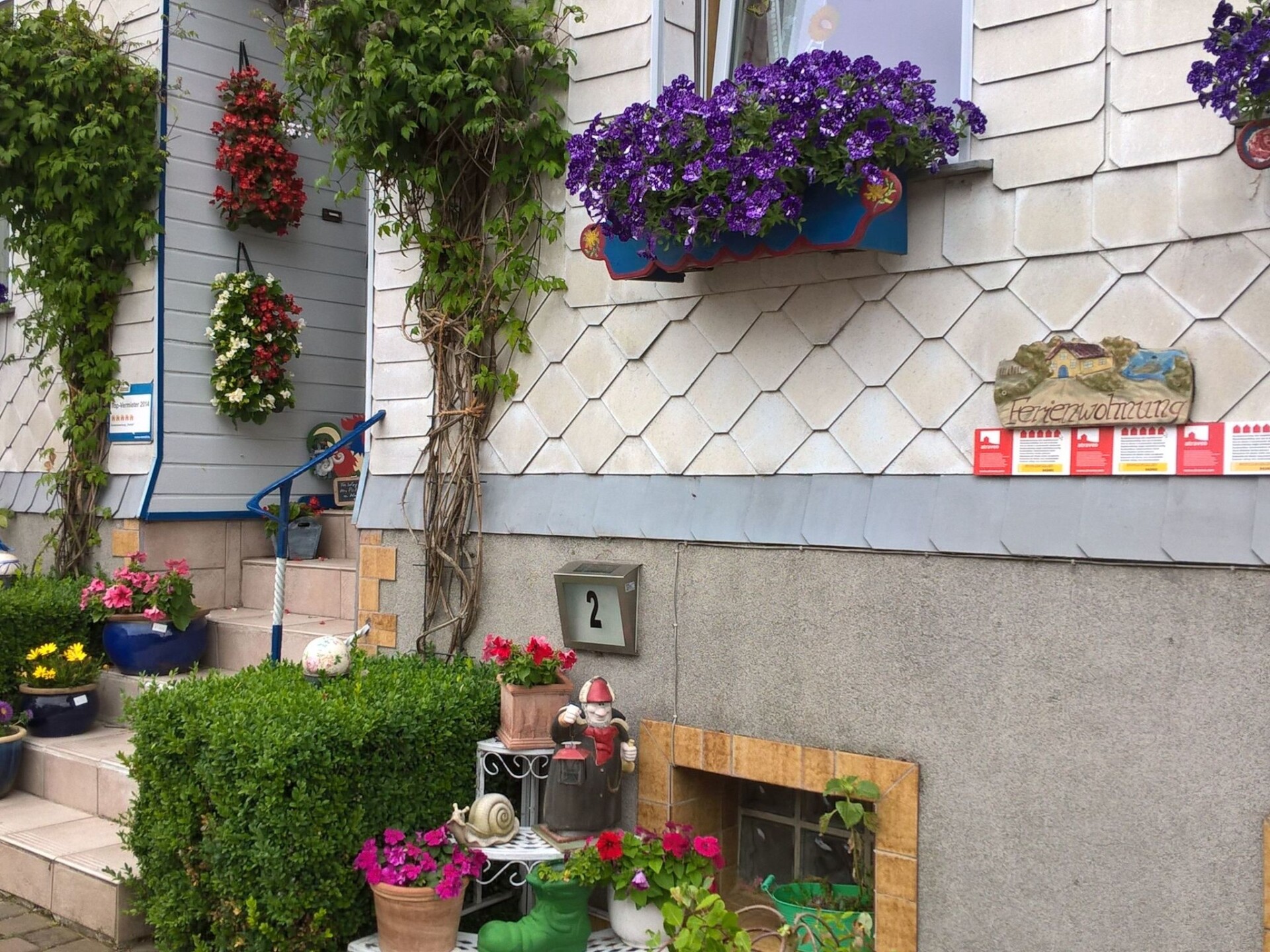 Holidays start where I feel at home. Holiday flat in a quiet side street, fully equipped for self-catering, hiking and cycling trails start right on the doorstep. Many excursion possibilities, situated between the Rhine, Moselle and Nahe. In our garden there is an outdoor seating area with garden furniture, loungers, beach chairs and barbecue. We have an inflatable paddling pool for smaller children. There is also a heated pool with a diameter of 4.5 metres and a depth of 1.20 metres for communal use, the water quality of which is checked regularly. A petting zoo with dogs, cats, goats, chickens and runner ducks provide animal entertainment. You are welcome to bring your dog with you; if you have more than one pet, please contact us. We have a dog basket, water and food bowls, towels and a dog paddling pool for your four-legged friend. Ideal for those who like peace and quiet.Garden with gazebo, garden furniture, loungers, beach chairs, barbecue, cupboard with bath towels and towels for the outdoor area, garden shower, inflatable paddling pool for children. Private garden area for guests. Shared heated pool with a diameter of 4.5 metres and a depth of 1.20 metres.Holiday flat on the ground floor, approx. 70 m2, consisting of an eat-in kitchen, living room and two bedrooms, as well as a bathroom. The eat-in kitchen is equipped with everything you could wish for, e.g. a fully automatic coffee machine, Senseo coffee machine, capsule coffee machine, ceramic hob, oven, dishwasher, microwave and much more. Cosy seating area for up to 5 people, living room with corner couch, TV via satellite DVD player, board games, (Lego building blocks, doll's house, Lego railway - we can provide these items in the flat on request) books. The bedrooms are equipped as follows: 1st double bed 1.80m x 2.00m split mattress, wardrobe, bedside table, mute servant, a baby cot can be added here (is available) Size of the bedroom approx. 16 m². 2 bedrooms approx. 12 m² Bed 1.60 x 2.00 m one-piece mattress, bed without footboard, wardrobe, bedside table, wicker armchair. Bathroom equipped with bathtub, shower curtain, washbasin, WC, mirror cabinet, washbasin base cabinet, hairdryer, blood pressure monitor, sufficient towels, bathrobes and free WLAN. Please note: to get to the 2nd bedroom, you have to go through the 1st bedroom.Cycling and hiking trails start right outside our front door. The small town of Kastellaun is approx. 2 km from us, where you can visit the castle and exhibitions, do your shopping and enjoy a good meal. A guided tour of the town, which takes place every Saturday, is not to be missed. There is an animal park in Bell where you can see beautiful animal shows. (Tigers, dogs, birds of prey etc.) 13 kilometres from us is the second longest suspension rope bridge in Germany. The view is magnificent. From there via Engelport Monastery directly to the Moselle, in the direction of Cochem, then a detour to Klotten, a beautiful amusement park with animals and rides (all included in the price). You should also take a day trip to Eltz Castle, a privately owned castle that is one of the most beautiful in Germany. The holiday flat is located between the Rhine, Moselle and Nahe rivers. Day trips to Bad Kreuznach, Trier, Koblenz, Wiesbaden, Mainz, Andernach (Europe's largest cold water geyser) and many more are also possible. In the holiday flat you will find folders, books, hiking and cycling maps where you can get detailed information. We wish you a relaxing holiday in our house and look forward to your booking.You can book the holiday flat with breakfast, then you can sit down at the breakfast table during your holiday. Fresh eggs are available on request from our free-range chickens.