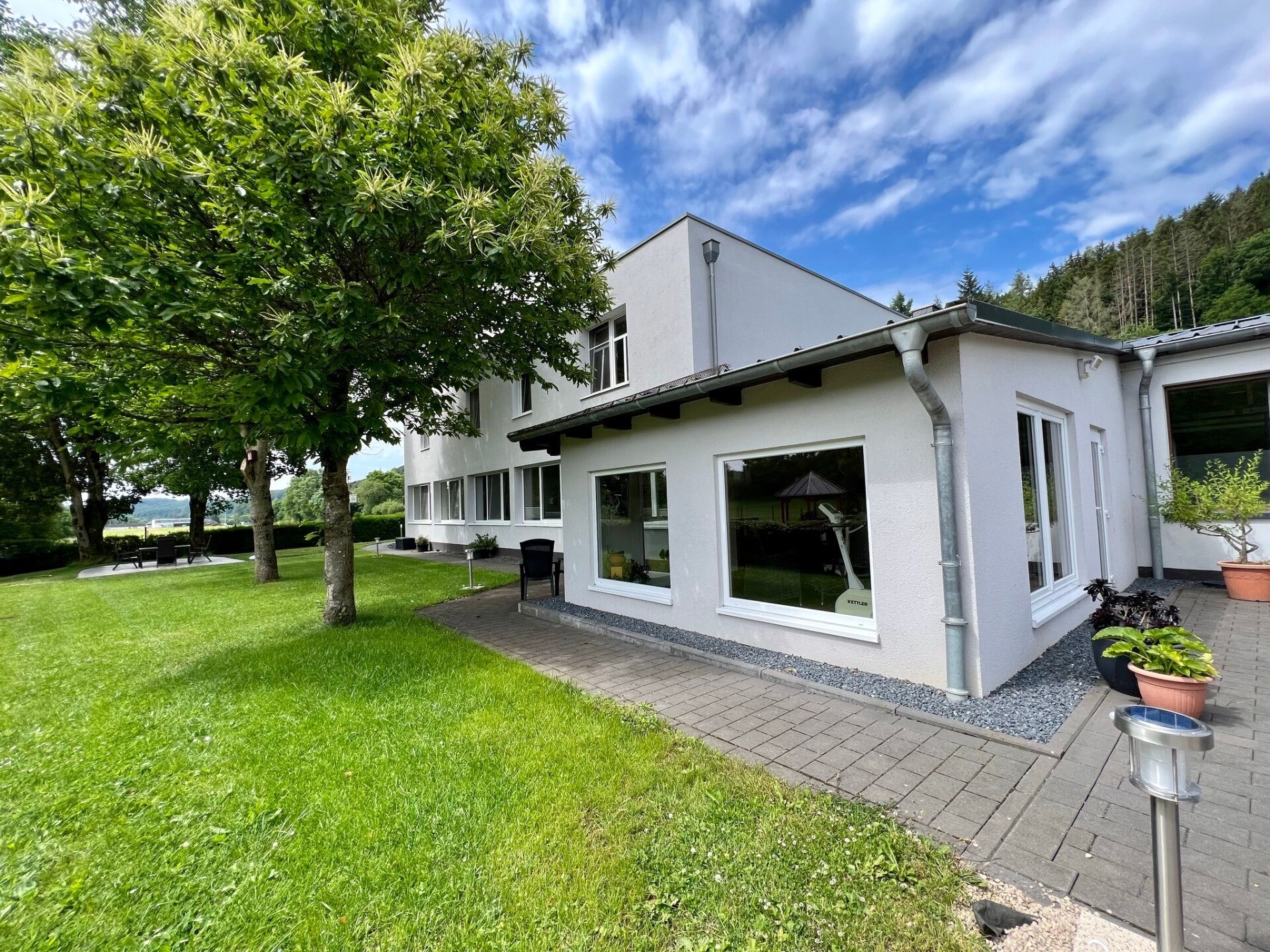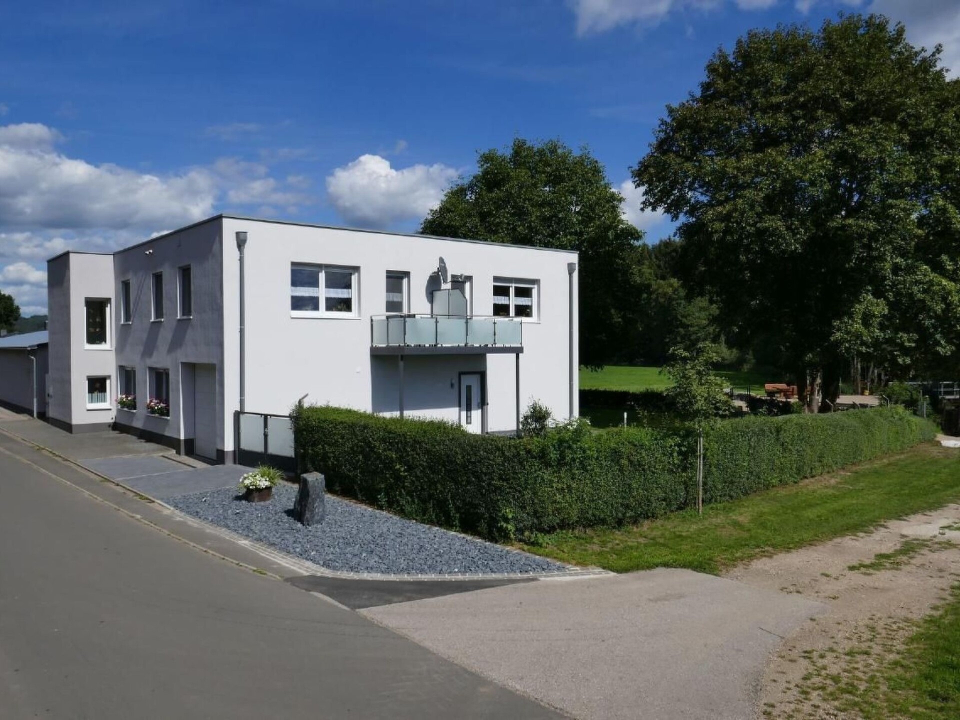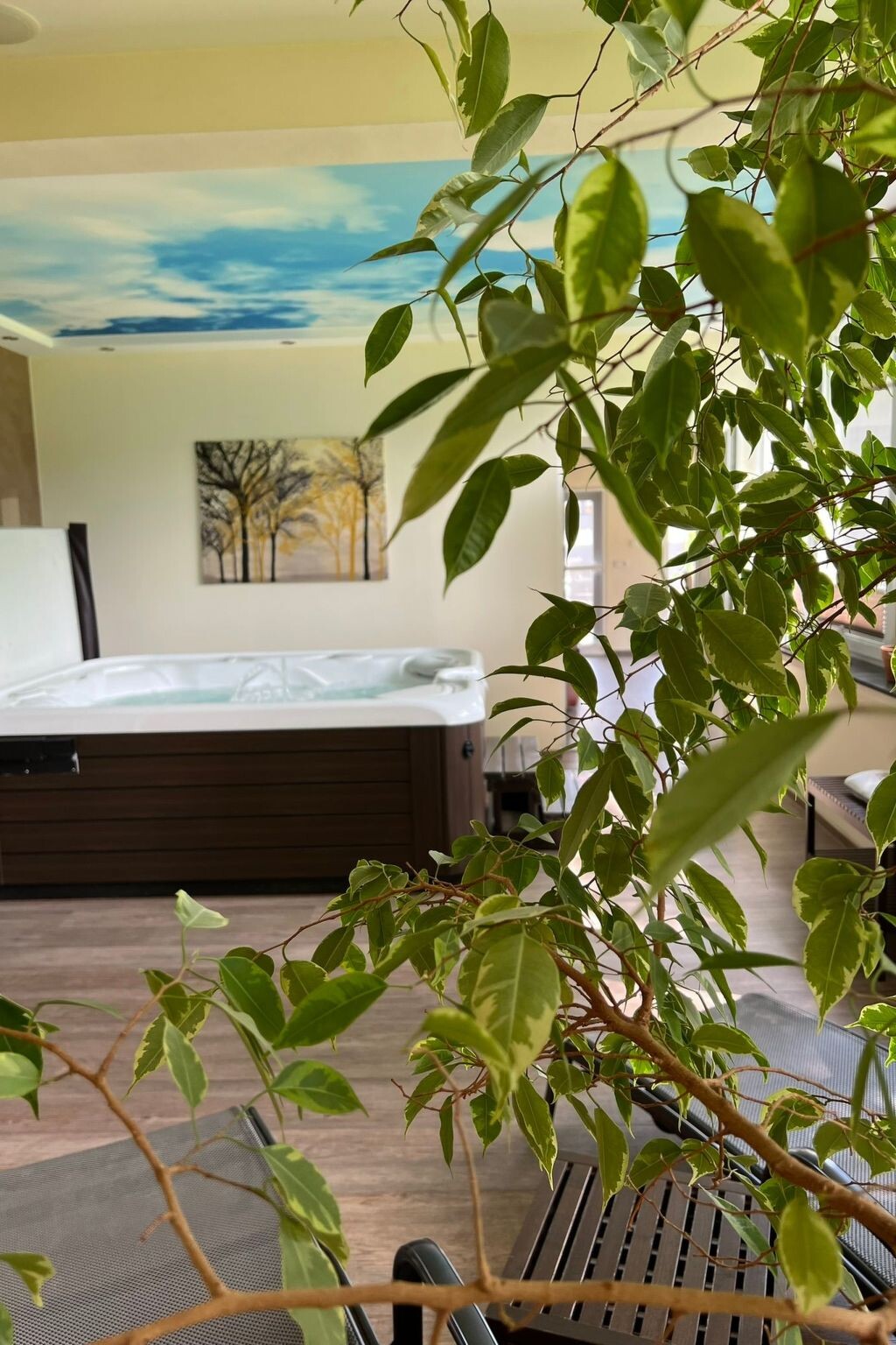 Maximaal 2 huisdieren/honden toegestaan. Welcome to our idyllically situated holiday flat "Kommerswag", a charming hideaway for 2 to 4 guests, which owes its unique name to the picturesque district behind the house. Situated on 66 square metres on the first floor, it offers the perfect starting point for a relaxing break in nature and for passionate wellness lovers.The interior of the flat is designed to ensure you have a comfortable stay. A cosy bedroom with an inviting double bed promises peaceful nights. In the spacious living room, a large sofa, which can be converted into a full double bed with a real mattress (150x198 cm), invites you to relax. A fully equipped corner kitchen with dining area is ready to fulfil culinary needs from breakfast to dinner, complemented by modern amenities such as a microwave, coffee machine, toaster and much more. The spacious bathroom is equipped with all the necessities, including WC, shower, hairdryer and towels.Inside, an exclusive, shared wellness area awaits you, which invites you to relax and can be used by the guests of our two holiday flats. The area includes a bio-sauna, which serves as both a Finnish sauna and a steam sauna, a whirlpool with massage jets, a relaxation room and a conservatory - for carefree relaxation at no extra cost. The option to pre-book private wellness sessions guarantees personalised moments of relaxation.The area surrounding "Kommerswag" offers a wealth of activities for nature lovers and adventure seekers. The direct connection to the Prümtal cycle path and numerous hiking trails in the region invite you to go on extensive exploratory tours. Cultural sights and leisure activities such as the Pronsfeld Nordic Walking Park, the Eifel Zoo or the Kruft Niederprüm Sculpture Park will enrich your holiday experience. For winter sports enthusiasts, the nearby winter sports areas offer perfect conditions.Enjoy an incomparable break in the "Kommerswag" holiday flat, which is the ideal holiday destination for every taste with its well thought-out comfort, luxurious wellness area and wide range of outdoor activities and cultural highlights. Discover the beauty of the region and take a break from everyday life - here you will find everything your heart desires.
