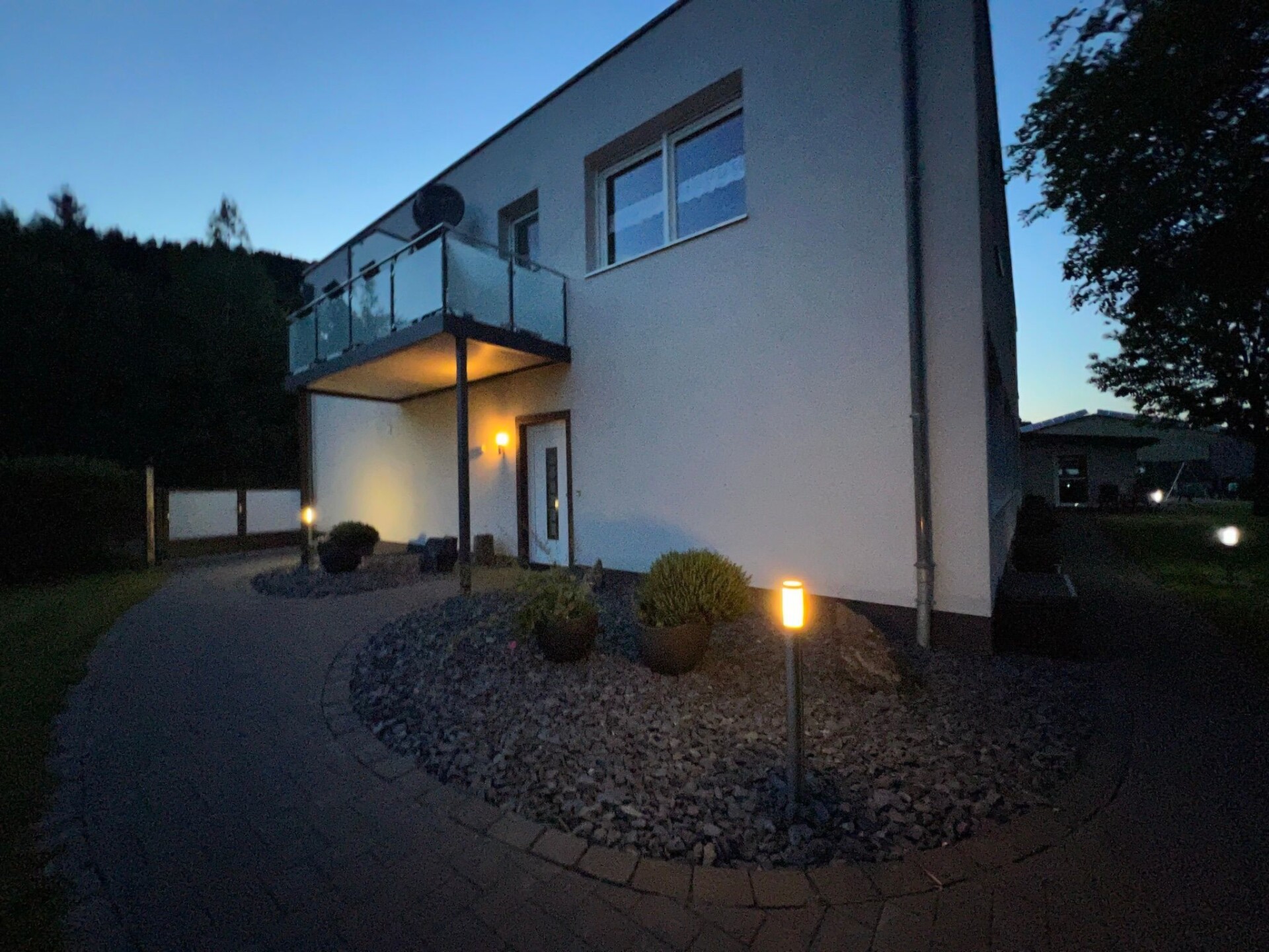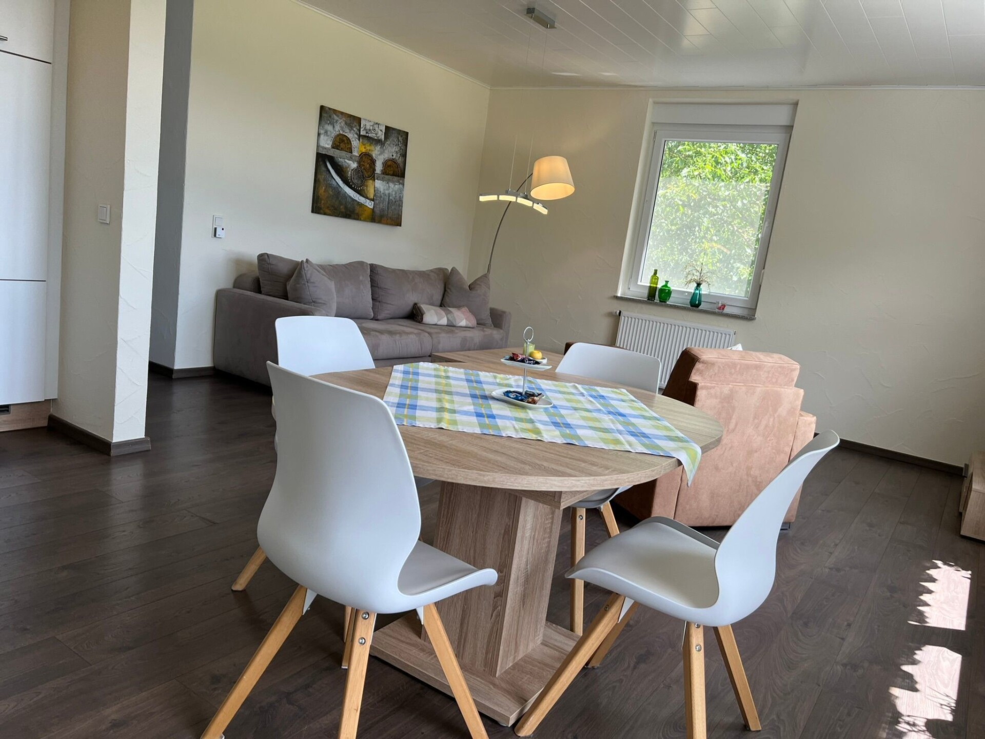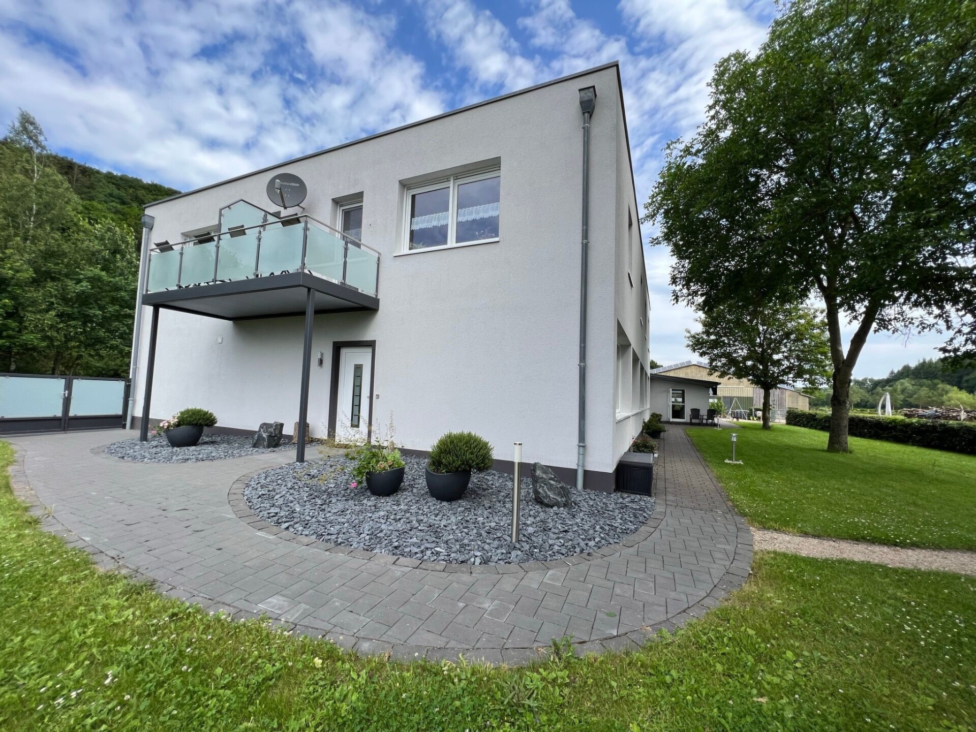 Maximaal 2 huisdieren/honden toegestaan. Welcome to our idyllically situated holiday flat "Kommerswag", a charming hideaway for 2 to 4 guests, which owes its unique name to the picturesque district behind the house. Situated on 66 square metres on the first floor, it offers the perfect starting point for a relaxing break in nature and for passionate wellness lovers.The interior of the flat is designed to ensure you have a comfortable stay. A cosy bedroom with an inviting double bed promises peaceful nights. In the spacious living room, a large sofa, which can be converted into a full double bed with a real mattress (150x198 cm), invites you to relax. A fully equipped corner kitchen with dining area is ready to fulfil culinary needs from breakfast to dinner, complemented by modern amenities such as a microwave, coffee machine, toaster and much more. The spacious bathroom is equipped with all the necessities, including WC, shower, hairdryer and towels.Inside, an exclusive, shared wellness area awaits you, which invites you to relax and can be used by the guests of our two holiday flats. The area includes a bio-sauna, which serves as both a Finnish sauna and a steam sauna, a whirlpool with massage jets, a relaxation room and a conservatory - for carefree relaxation at no extra cost. The option to pre-book private wellness sessions guarantees personalised moments of relaxation.The area surrounding "Kommerswag" offers a wealth of activities for nature lovers and adventure seekers. The direct connection to the Prümtal cycle path and numerous hiking trails in the region invite you to go on extensive exploratory tours. Cultural sights and leisure activities such as the Pronsfeld Nordic Walking Park, the Eifel Zoo or the Kruft Niederprüm Sculpture Park will enrich your holiday experience. For winter sports enthusiasts, the nearby winter sports areas offer perfect conditions.Enjoy an incomparable break in the "Kommerswag" holiday flat, which is the ideal holiday destination for every taste with its well thought-out comfort, luxurious wellness area and wide range of outdoor activities and cultural highlights. Discover the beauty of the region and take a break from everyday life - here you will find everything your heart desires.