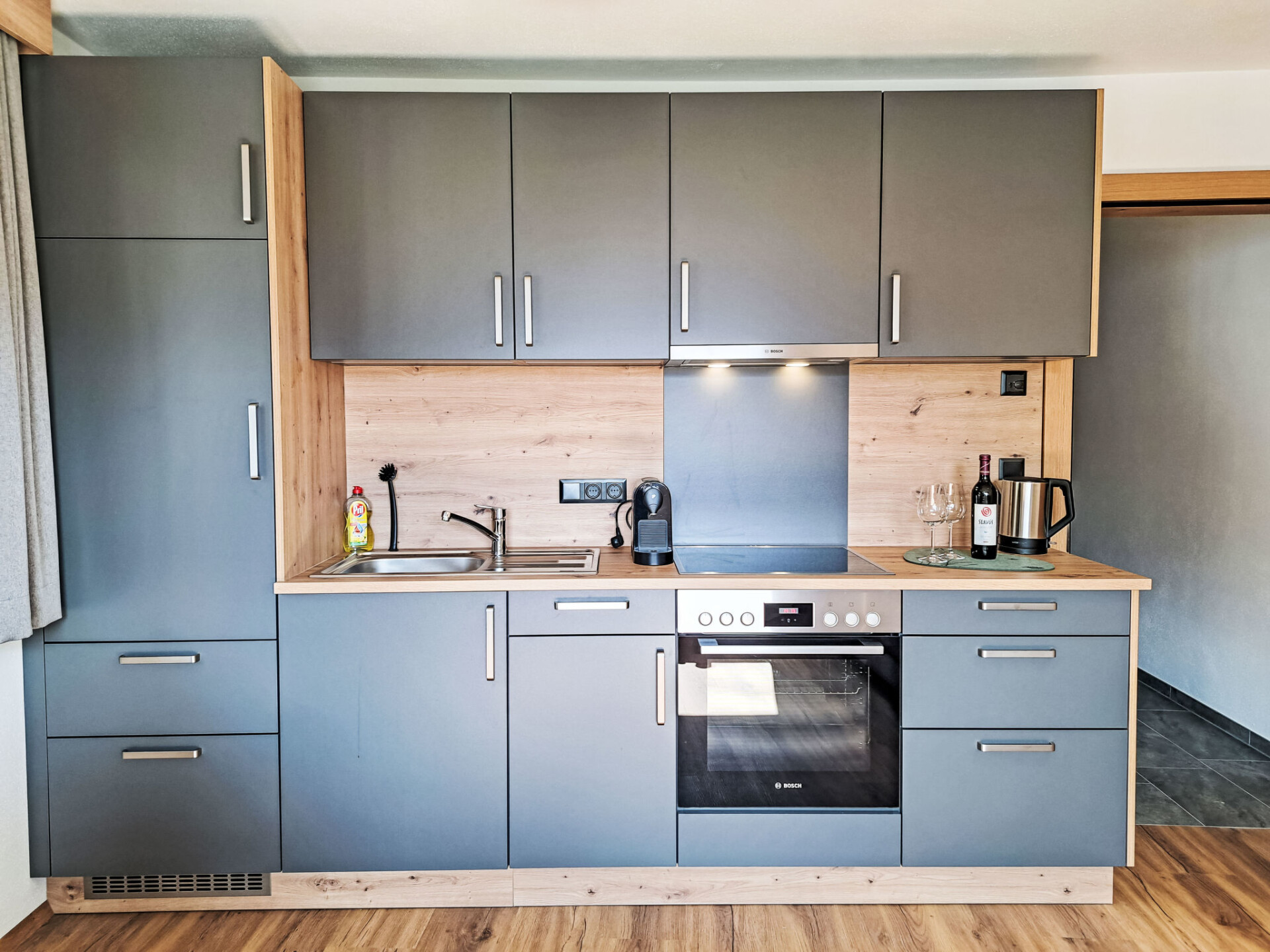 "Kragenjoch", appartement 2-kamers 50 m2. Licht, mooi en modern ingericht: woon-/slaapkamer met 1 2-pers divanbed, eettafel en Sat-TV. 1 2-pers. kamer. Open keuken (oven, 4 keramische glas kookplaten, waterkoker, elektrische koffiemachine). Douche/WC. Verwarming. Mooi uitzicht op de bergen, het landschap en de plaats. Ter beschikking: kinderbed. Internet (Internet (WiFi), gratis). Niet rokers woning. Rookmelders, brandblusser.