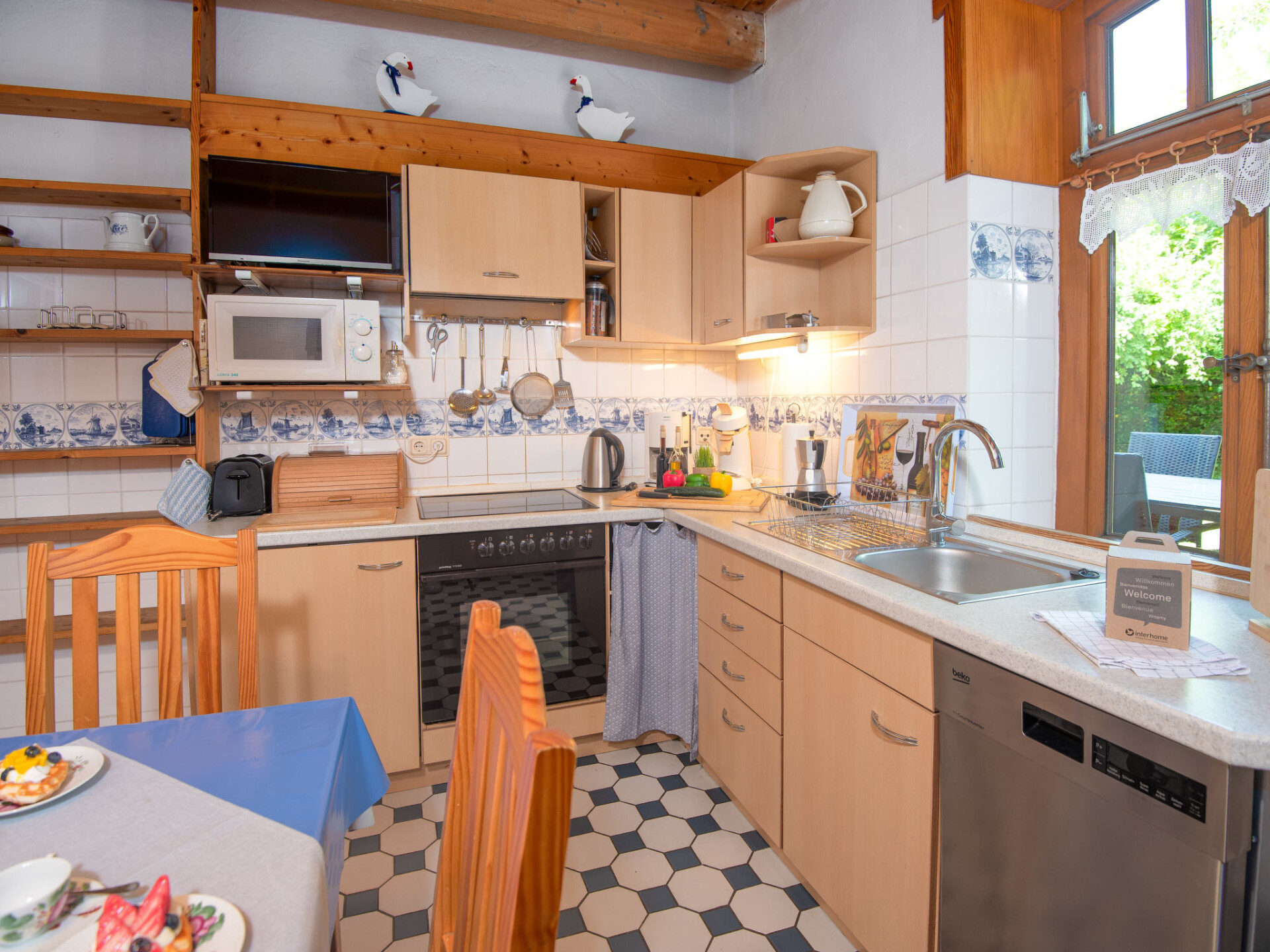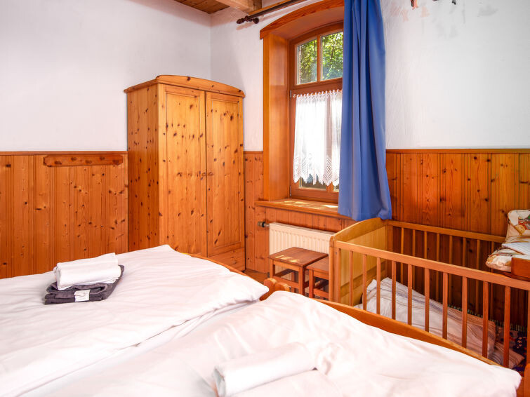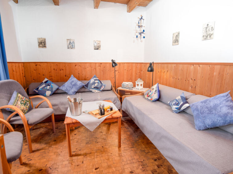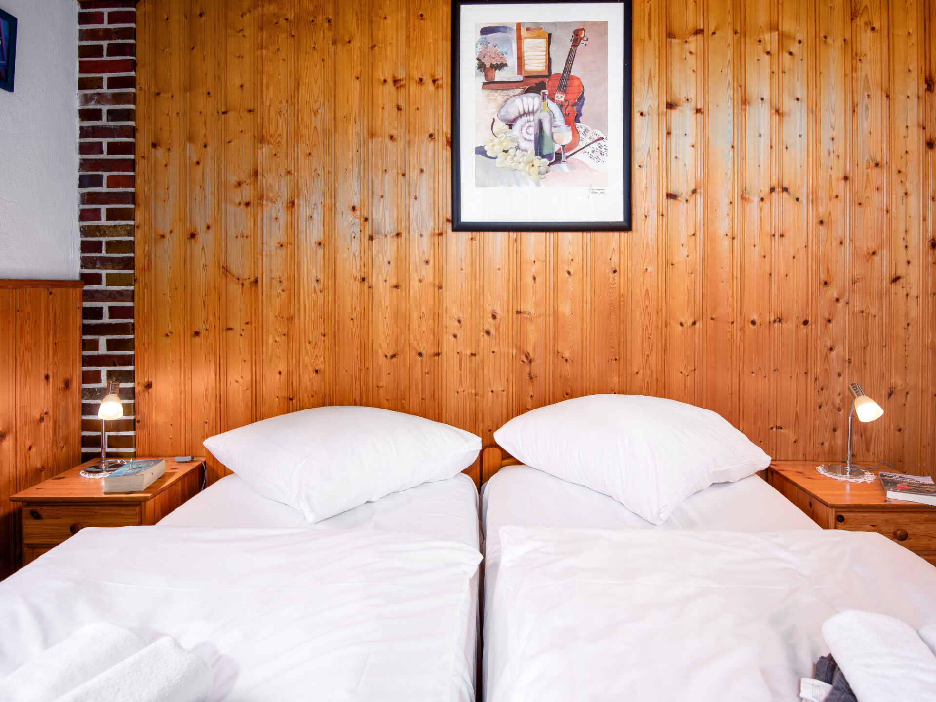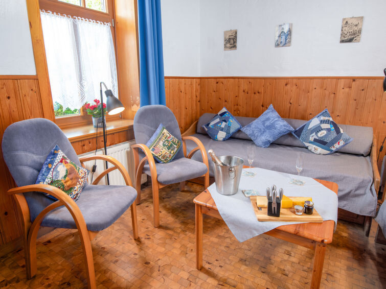 Appartement 2-kamers 50 m2, op de begane grond. Gezellig ingericht: woon-/eetkamer 14 m2 met 2 divanbedden (90 cm, lengte 200 cm), Sat-TV (Flatscreen TV), radio, CD-speler en DVD. 1 kamer 11 m2 met 1 2-pers bed (2 x 90 cm, lengte 200 cm). Keuken (4-pits kookplaat, oven, afwasmachine, broodrooster, waterkoker, magnetron, elektrische koffiemachine) met eettafel en Sat-TV. Douche/WC, aparte WC. Terras, zithoek in de tuin. Terrasmeubelen, barbecue, ligstoelen. Ter beschikking: kinderstoel (extra). Internet (Internet (WiFi), gratis). Niet rokers woning. Rookmelders.