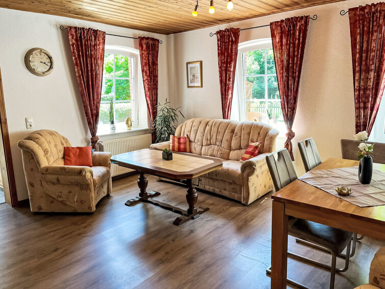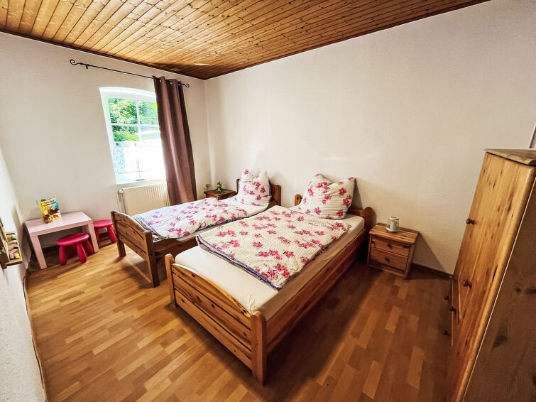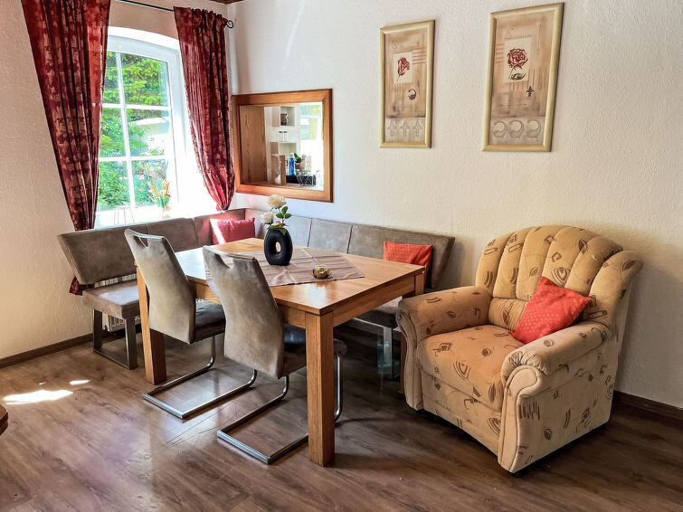 Appartement 3-kamers op de begane grond. Gezellig ingericht: woon-/eetkamer met Sat-TV (Flatscreen TV). Uitgang naar het terras. 1 kamer met 1 2-pers bed (2 x 90 cm, lengte 200 cm). 1 kamer met 2 bedden (90 cm, lengte 200 cm). Open keuken (oven, afwasmachine, 4 keramische glas kookplaten, broodrooster, waterkoker, magnetron, elektrische koffiemachine). Douche/WC. Terras. Terrasmeubelen. Ter beschikking: wasmachine, kinderstoel. Internet (WiFi, gratis). Parkeerplaats bij het huis. Niet rokers woning. Maximaal 1 klein huisdier/hond toegestaan.