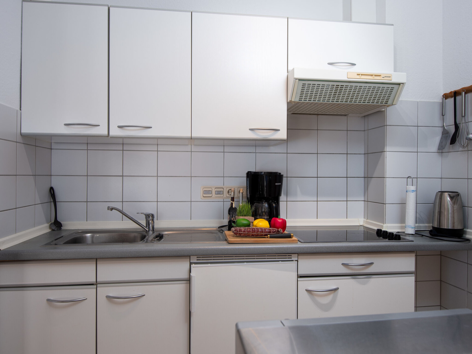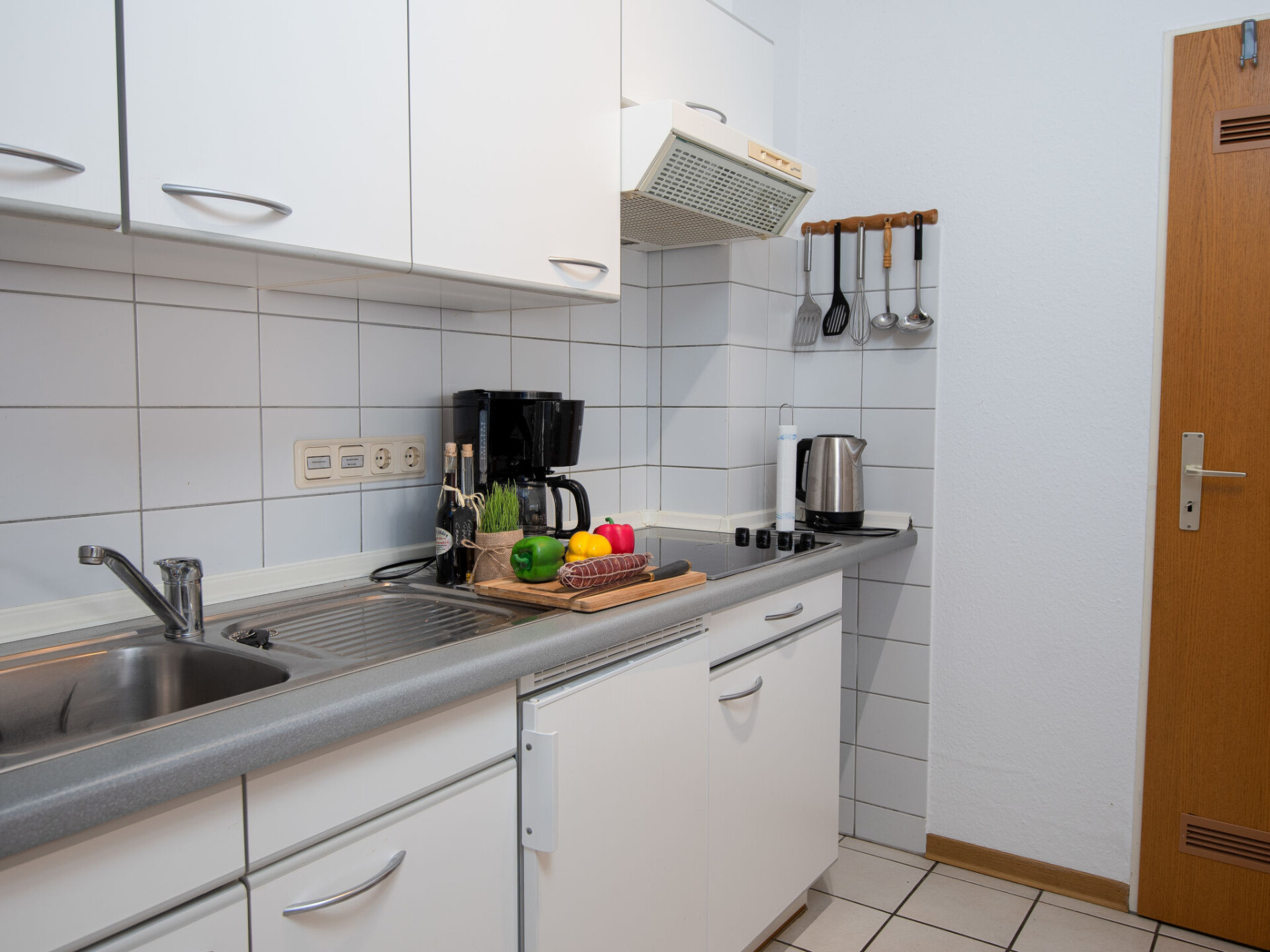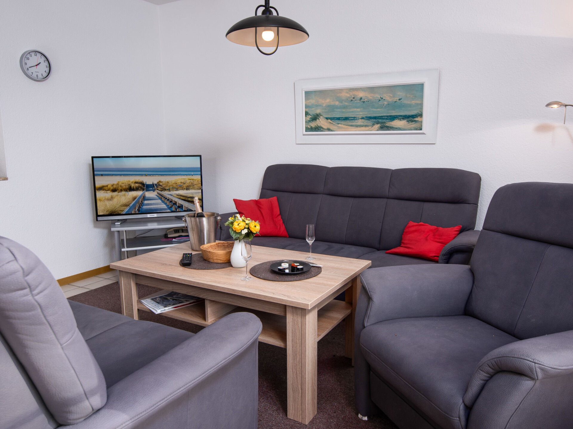 "Küstennebel", appartement 3-kamers 56 m2, op de begane grond. Woon-/eetkamer 23 m2 met Sat-TV (Flatscreen TV), CD-speler. 2 kamers 8 m2, elke kamer heeft 1 2-pers bed (2 x 90 cm, lengte 200 cm). Keuken (4-pits kookplaat, broodrooster, waterkoker, magnetron, elektrische koffiemachine) met doorgeefluik. Douche/WC. Terras 12 m2. Terrasmeubelen. Ter beschikking: kinderstoel (extra). Internet (Internet (WiFi), gratis). Niet rokers woning. Rookmelders.