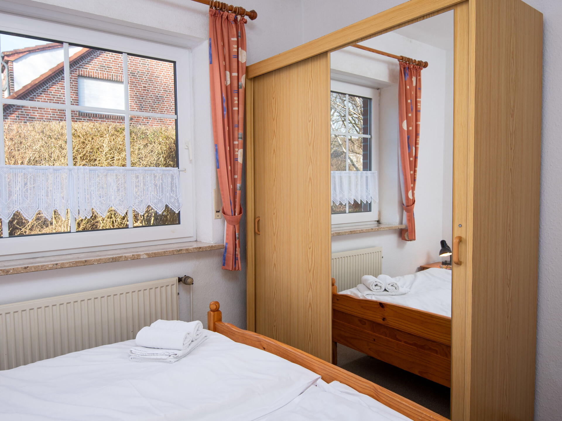 Appartementencomplex. In de plaats, gebied met weinig verkeer, 1.4 km van zee, 1.4 km van het strand, aan een doodlopende weg. Voor medegebruik: tuin met gazon. In het huis: centrale verwarming. Parkeerplaats bij het huis. Supermarkt 950 m, restaurant 600 m, bakkerij 850 m, café, bushalte 200 m, treinstation "Norddeich" 2 km, veerboot 2 km, zandstrand 1.4 km, openluchtzwembad 14 km, overdekt zwembad 800 m. Golfterrein (18 holes) 8 km, surfschool 1.3 km, tennis 2 km.