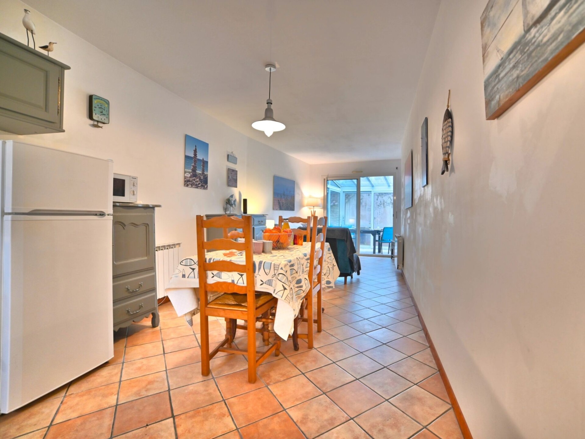 Huis in een rij 2-kamers 56 m2. Eenvoudig en mooi ingericht: woon-/eetkamer, venster naar het binnenplaats met 1 2-pers divanbed (1 x 140 cm, lengte 190 cm), TV (Flatscreen TV), elektrische verwarming. Uitgang naar de veranda. 1 kamer met 1 2-pers bed (1 x 140 cm, lengte 190 cm). Open keuken (1 kookplaat, oven, afwasmachine, 3 kookpitten (vlammen), broodrooster, waterkoker, magnetron, elektrische koffiemachine). Douche/WC. Elektrische verwarming. Klein terras 20 m2, op het noorden gelegen en op het oosten gelegen. Terrasmeubelen, barbecue. Ter beschikking: wasmachine, haardroger. Internet (WiFi, gratis). Rookvrij huis. Maximaal 1 huisdier/hond toegestaan. Rookmelders. Aanbod door een particulier volgens art. 155, IV van CGI. 17323000365C0