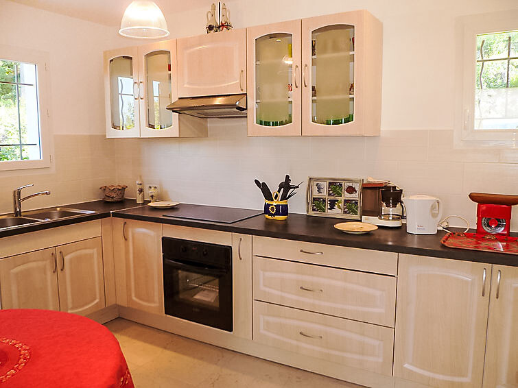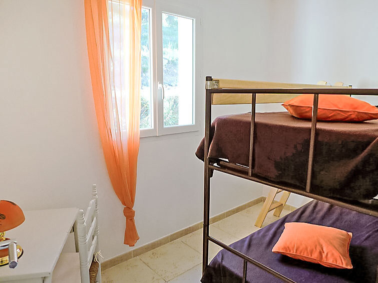 Huis 4-kamers 95 m2, op de bovenverdieping. Licht, doelmatig ingericht: groot woon-/eetkamer met TV. Uitgang naar het balkon, naar het terras. 2 kamers, elke kamer heeft 1 2-pers bed (1 x 140 cm, lengte 190 cm). Uitgang naar het balkon. 1 kamer met 1 x 2 stapelbedden (80 cm, lengte 190 cm). Keuken (oven, afwasmachine, 3 keramische glas kookplaten, magnetron, diepvriezer, elektrische koffiemachine). Douche, aparte WC. Vloerverwarming. Terras 25 m2. Terrasmeubelen, barbecue. Zeer mooi uitzicht op zee en het landschap. Ter beschikking: wasmachine. Maximaal 1 huisdier/hond toegestaan. TV alleen FR. Rookmelders.