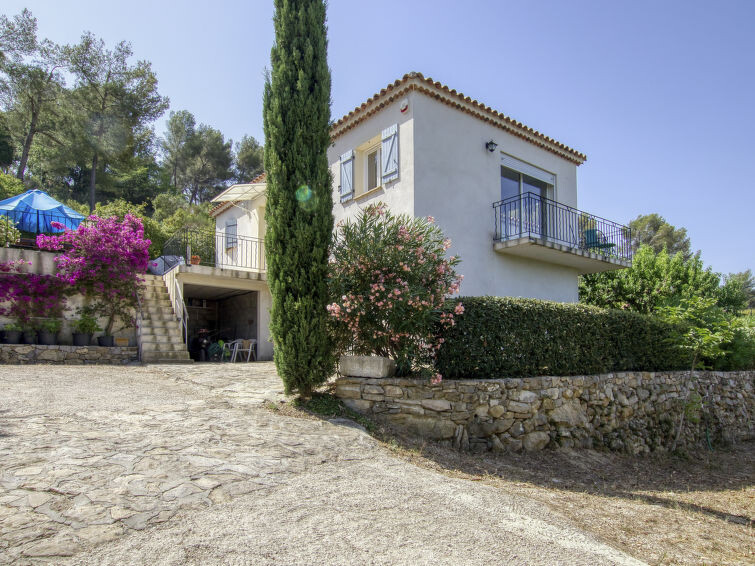La Cadière d'Azur: Mooi eengezinswoning "La Campagne", bouwjaar 2013, omgeven door velden en wijngaarden. Buiten de plaats La Cadière d'Azur, verhoogde ligging tegen een helling, 7 km van zee. Voor alleengebruik: wild terrein 4.000 m2, openluchtzwembad omheind (4 x 6 m, seizoensgebonden beschikbaarheid: 15.Mei. - 15.Okt.). In het huis: alarmsysteem. 20 m lange steile toegangsweg tot aan het huis (150 m onverharde weg). Parkeerplaats (voor 2 auto's) bij het huis. Winkel 4 km, levensmiddelenwinkel 4 km, bushalte "chemin des Baumes" 2.9 km, treinstation "Saint Cyr les Lecques-La Cadière" 4.4 km, zandstrand "Plage des Lecques" 7 km. Golfterrein (18 holes) 5 km. Attracties in de buurt: Aqualand. Wandelgebied Sainte Baume, Sainte Victoire, Calanques Port-Cros, Porquerolles, Ile verte, Embiez, Figuerolles, Cassis. Auto noodzakelijk. De toegang tot het zwembad is via 8 stappen. Toegang tot het woning is door 12 stappen.