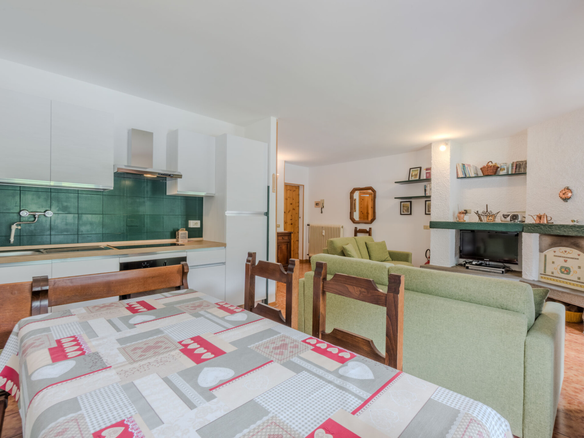 "La Casa dei Frassini", appartement 3-kamers 70 m2 op de 1e verdieping. Gedeeltelijk gerenoveerd in 2024, doelmatig en comfortabel ingericht: woon-/eetkamer met open haard (alleen decoratie), eettafel en TV. Uitgang naar het balkon. 1 2-pers. kamer. 1 kamer met 2 x 2 stapelbedden (80 cm, lengte 190 cm). Keuken (oven, 4 inductiekookplaten). Douche/bidet/WC. Verwarming. Verwarming alleen beschikbaar van 01.10. tot 30.04. Beperkt panoramazicht op de bergen en het landschap. Ter beschikking: wasmachine, kinderbed tot 2 jaar (extra), haardroger. Internet (WiFi, gratis). Parkeerplaats bij het huis. Maximaal 1 huisdier/hond toegestaan. Brandblusser, geen lift. IT022184C2GEVI83F5