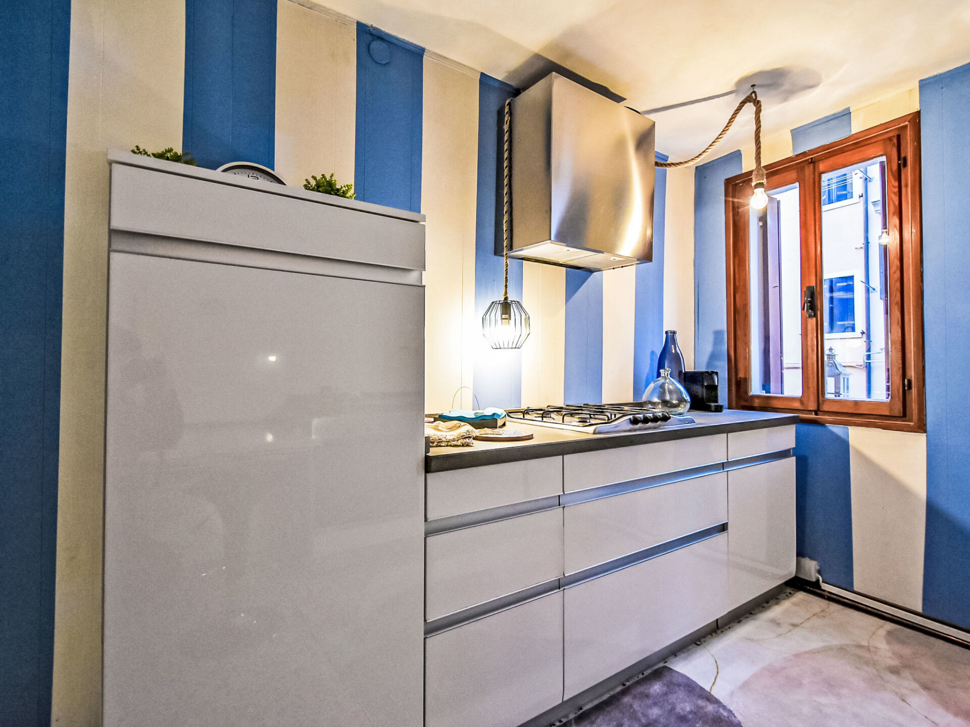 Huis 3-kamers 55 m2 op 4 verdiepingen. Comfortabel en smaakvol ingericht: hal. Douche/bidet/WC. Boiler. Bovenverdieping: (steile trap). Keuken (oven, 4 kookpitten (vlammen), broodrooster, waterkoker, magnetron, diepvriezer, elektrische koffiemachine, pads voor de koffiemachine (Nespresso)) met eettafel, air-conditioning. 2e Verdieping: (steile trap) woon-/slaapkamer met 1 2-pers divanbed en TV. 3e Verdieping: 1 2-pers. kamer, zonder kast met air-conditioning. Verwarming. Zijdelings uitzicht op het kanaal. Ter beschikking: wasmachine, kinderstoel, kinderbed, haardroger. Internet (Internet (WiFi), gratis). Rookvrij huis. Privé ingang, geen lift. IT027008C2JBGU5ESV