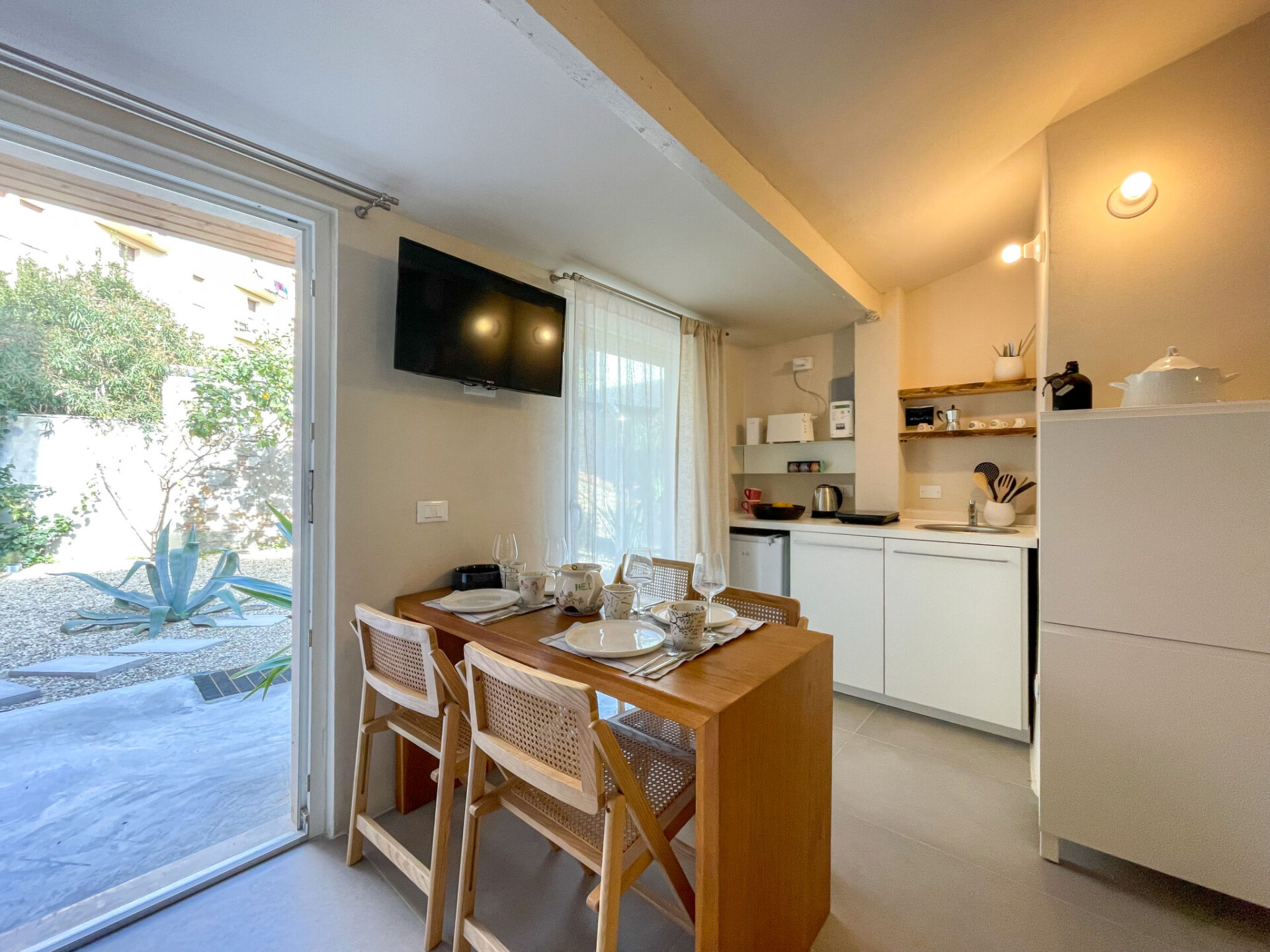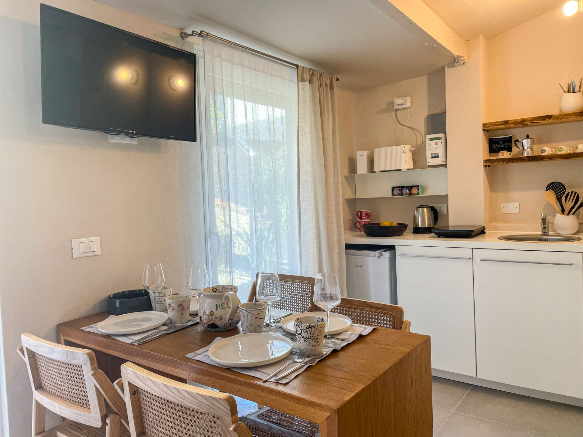 "La casa di Manu", appartement 1-kamer 30 m2, op de begane grond. Licht, mooi en stijlvol ingericht: met 1 bed en 1 2-pers bed (1 x 160 cm), Sat-TV. Uitgang naar de zitplaats in de tuin. Kookhoek (1 inductiekookplaten, broodrooster, waterkoker, elektrische koffiemachine) met eettafel. Douche/WC. Air-conditioning, heteluchtverwarming. Natuurstenen vloeren. Terrasmeubelen, barbecue. Ter beschikking: wasmachine, haardroger. Internet (Internet (WiFi)). IT008031C2TDBD9TV4