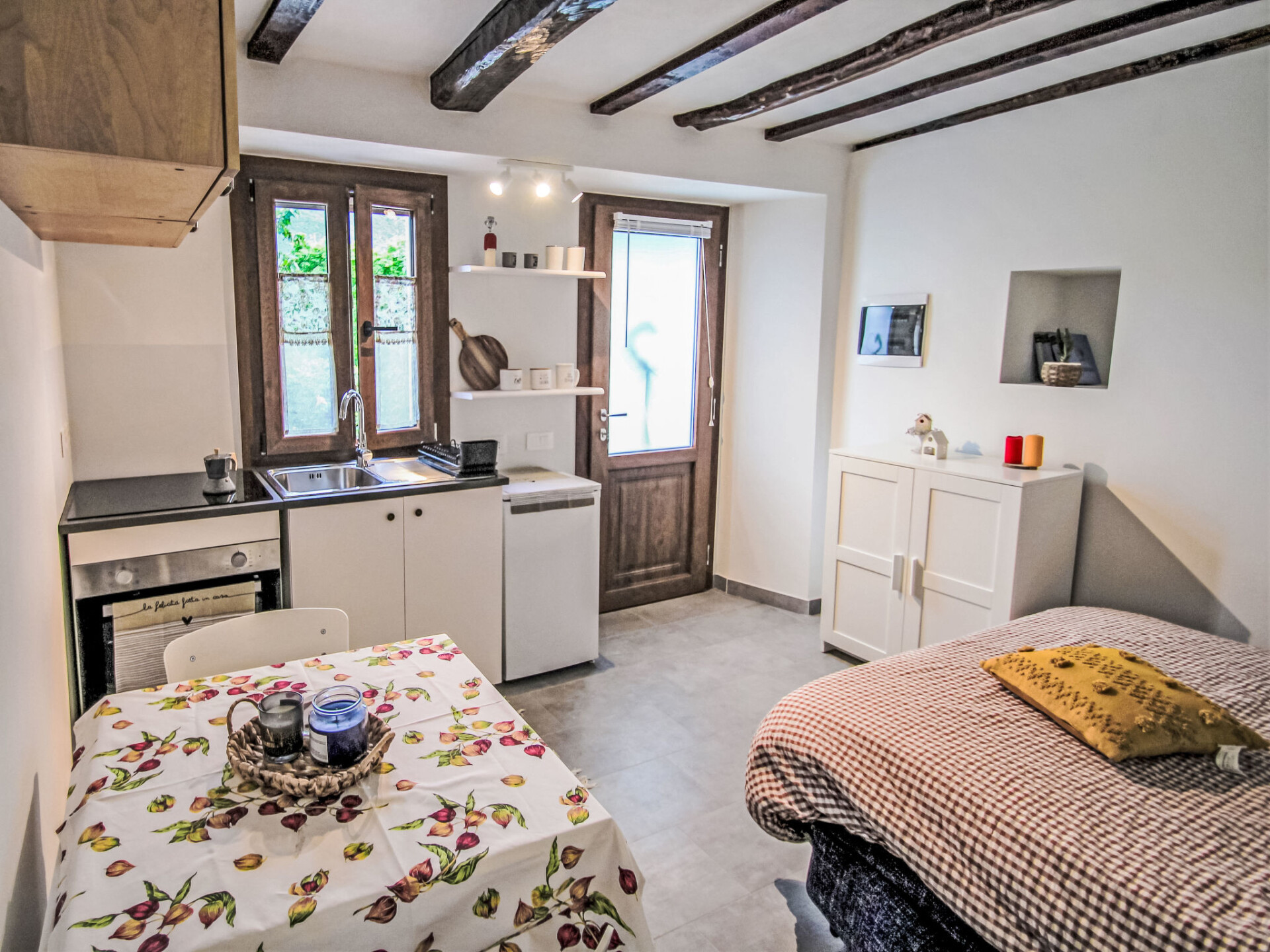 Studio 1-kamer 30 m2, op de begane grond. Volledig gerenoveerd in 2024, doelmatig en modern ingericht: Studio met 1 2-pers divanbed. Uitgang naar de zitplaats in de tuin. Kookhoek (oven, 4 inductiekookplaten, elektrische koffiemachine). Douche/bidet/WC. Gas-verwarming, air-conditioning, heteluchtverwarming. Verwarming alleen beschikbaar van 01.10. tot 01.05. Zithoek in de tuin 15 m2. Terrasmeubelen, ligstoelen (2). Ter beschikking: wasmachine, haardroger. Internet (WiFi, gratis). Koelkast zonder vriesvak. Maximaal 1 huisdier/hond toegestaan. Privé ingang.