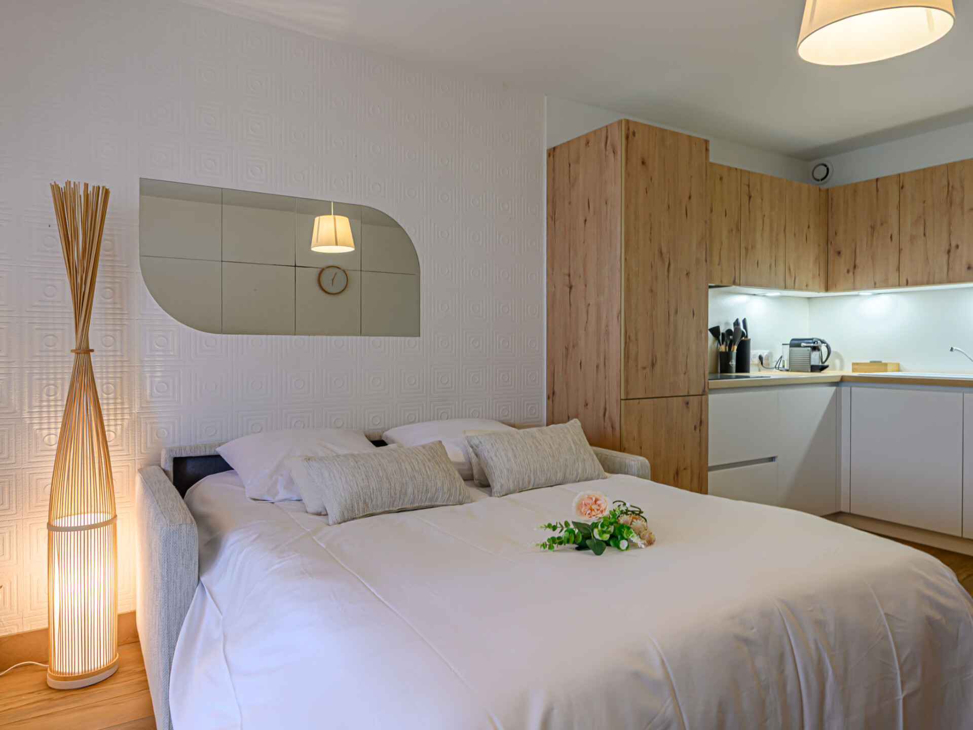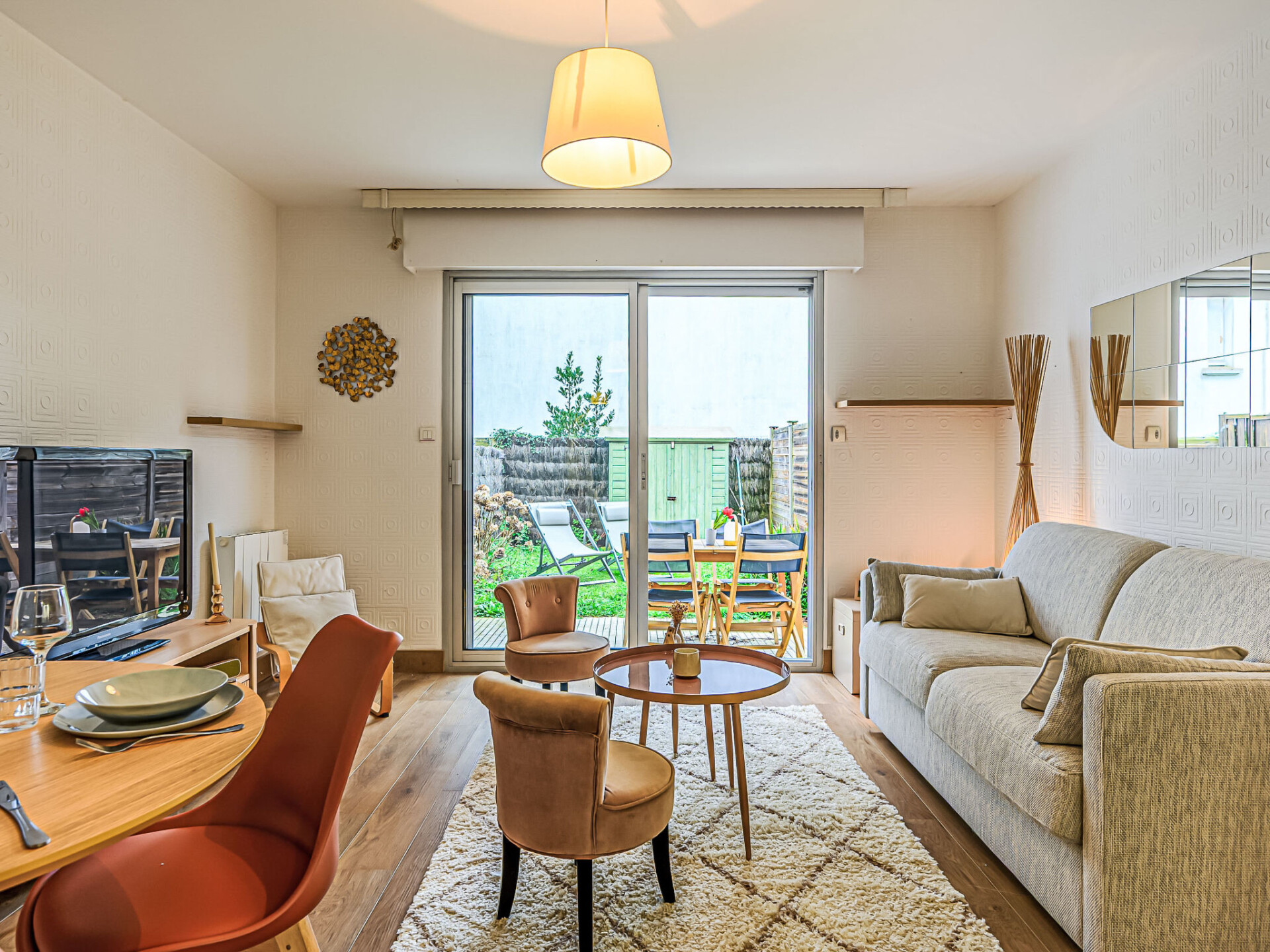 Studio 1-kamer 31 m2, op de begane grond. Volledig gerenoveerd in 2025: woon-/eetkamer met 1 divanbed (140 cm, lengte 190 cm), TV (Flatscreen TV). Uitgang naar het terras. Cabine met 1 x 1 stapelbedden (90 cm, lengte 190 cm), 1 2-pers bed (1 x 140 cm, lengte 190 cm). Kookhoek (2-pits kookplaat, oven, afwasmachine, broodrooster, waterkoker, magnetron, elektrische koffiemachine, raclette oven). Douche/WC. Elektrische verwarming. Terras 4 m2, op het zuiden gelegen, zithoek in de tuin 15 m2, op het zuiden gelegen. Terrasmeubelen, barbecue. Ter beschikking: wasmachine, haardroger. Internet (WiFi, gratis). Parkeerplaats (1 Auto). Rookmelders. Bedindeling is flexibel. Er zijn meer slaapmogelijkheden beschikbaar dan het maximaal toegestane aantal personen dat echter niet mag worden overschreden. Aanbod door een particulier volgens art. 155, IV van CGI. 56034000433A9