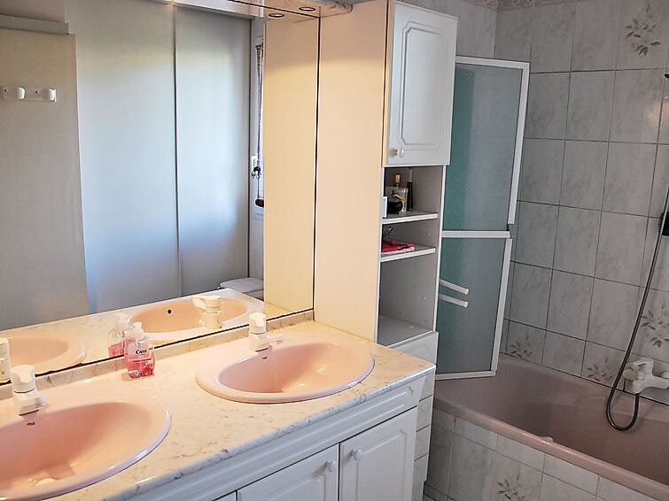 Huis 4-kamers 150 m2 op 2 verdiepingen. 1 kamer met 1 2-pers bed (1 x 140 cm, lengte 190 cm), bad en TV. 1 kamer met 1 2-pers bed (1 x 140 cm, lengte 190 cm). 1 kamer met 1 bed (90 cm, lengte 190 cm). Douche, aparte WC. Bovenverdieping: woon-/eetkamer 34 m2 met panoramavenster met TV (Flatscreen TV), video en stereo-installatie. Keuken (oven, afwasmachine, 4 keramische glas kookplaten, magnetron, elektrische koffiemachine). Uitgang naar het terras. Aparte WC. 2 terrassen. Terrasmeubelen, barbecue. Mooi uitzicht op het landschap. Ter beschikking: wasmachine, kinderbed tot 2 jaar. Internet (WiFi, gratis). Maximaal 1 huisdier/hond toegestaan. Rookmelders.