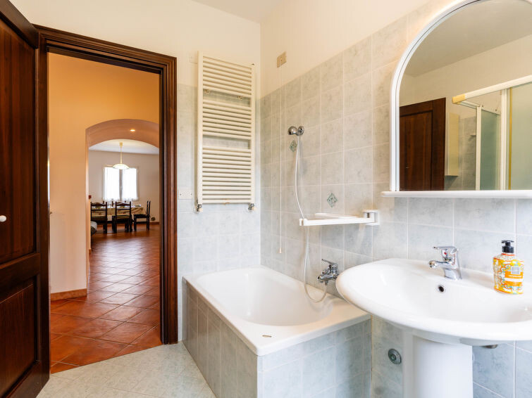 "Il vento D", appartement 3-kamers 70 m2 op de 1e verdieping. Rustiek ingericht: woon-/slaapkamer met 1 2-pers divanbed, eettafel en Sat-TV. 1 kamer met 1 2-pers bed (160 cm). Uitgang naar het balkon. 1 kamer met 2 bedden (80 cm). Open keuken (oven, 4 kookpitten (vlammen), broodrooster, waterkoker, diepvriezer, elektrische koffiemachine). Douche/WC. Gas-verwarming. Balkon, terras. Terrasmeubelen, balkonmeubilair. Ter beschikking: wasmachine, kinderstoel, kinderbed. Internet (WiFi, gratis). Maximaal 1 huisdier/hond toegestaan. Privé ingang. IT008026B53FWFJN55