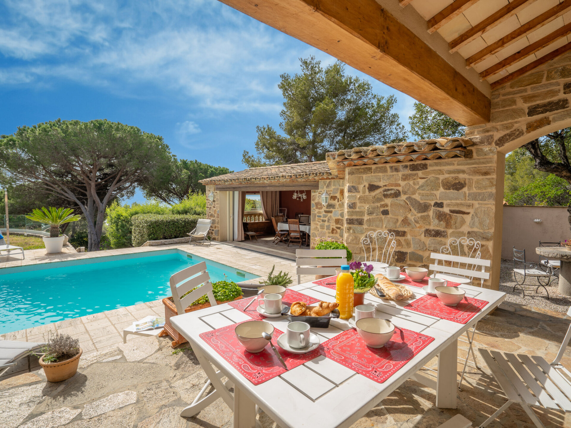 Zeer mooi eengezinswoning "La Crischona". 2 km van het centrum van Les Issambres, 10 km van het centrum van Sainte Maxime, 45 km van het centrum van Cannes, in een woonwijk, 300 m van zee, 300 m van het strand. Voor alleengebruik: terrein 2.400 m2 (omheind), verzorgde tuin, openluchtzwembad (10 x 5 m, 50 - 270 cm diepte, seizoensgebonden beschikbaarheid: 01.Jan. - 31.Dec.) met alarminstallatie en zout-elektrolyse. WC bij het zwembad, buitendouche, poolhouse met koelkast, parkeerplaats op het terrein. Carport. Winkel 2 km, bushalte, zandstrand, rotsstrand 300 m.