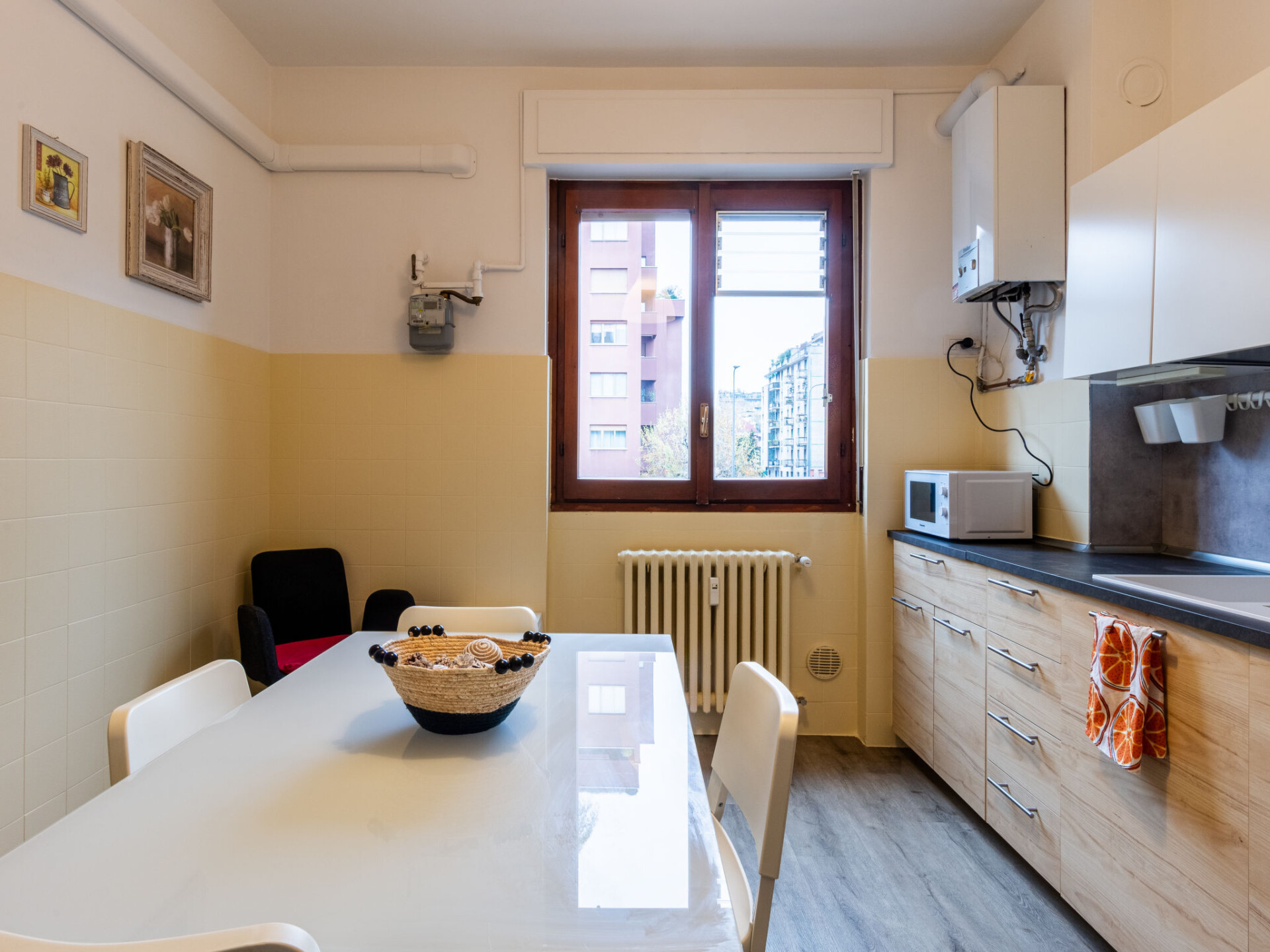 Groot appartementencomplex "La Dimora di Keplero", van 8 verdiepingen. 2 km van het centrum van Milano, in het district Zara/ Sondrio, rustige, zonnige ligging in een woonwijk. Voor medegebruik: groot tuin (omheind) met planten en bomen. In het huis: centrale verwarming, verwarming alleen beschikbaar van 15.Okt. - 15.Apr.. Trappenweg naar het huis. Openbare parkeerplaatsen in de straat extra. Supermarkt 500 m, restaurant, bar 300 m, tramhalte "n. 5" 200 m, bushalte 400 m, treinstation "Stazione Centrale" 1.2 km, metrostation "Zara (M3 and M5)" 450 m, park "BAM (Biblioteca degli Alberi)" 900 m, thermaalbad "Terme Milano" 5.3 km. Attracties in de buurt: Isola District 650 m, Piazza Gae Aulenti 1.5 km, Corso Buenos Aires (shopping street) 1.9 km, Brera 2 km, Castello Sforzesco 3.3 km, Piazza del Duomo 3.6 km. Bekende meren kunnen gemakkelijk worden bereikt: Lago di Como 41 km. Geen lift.