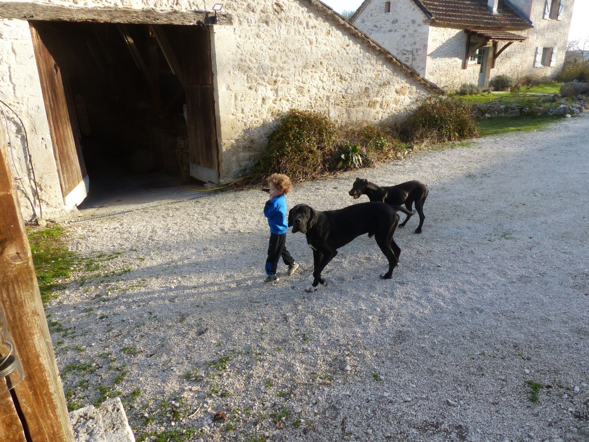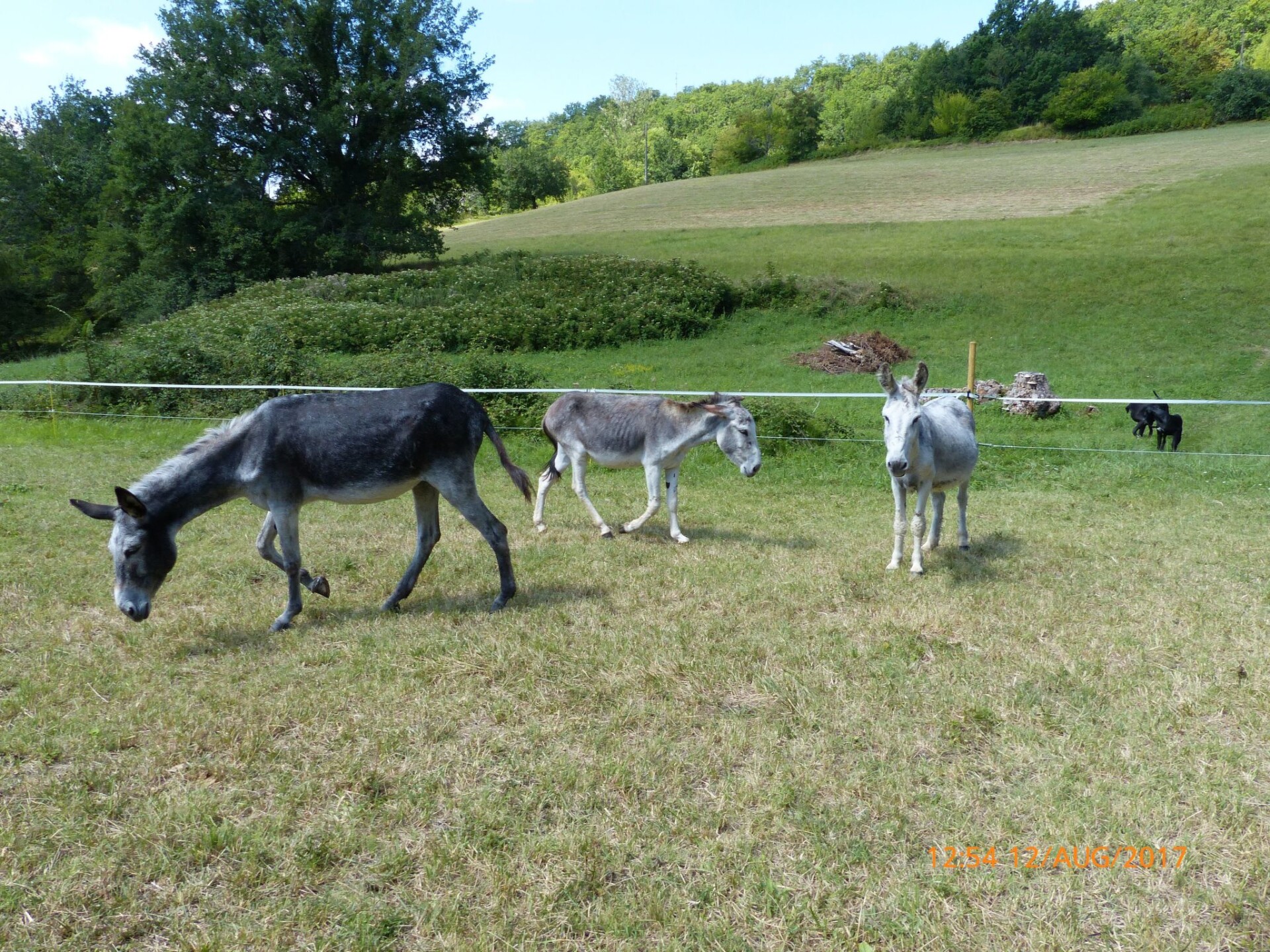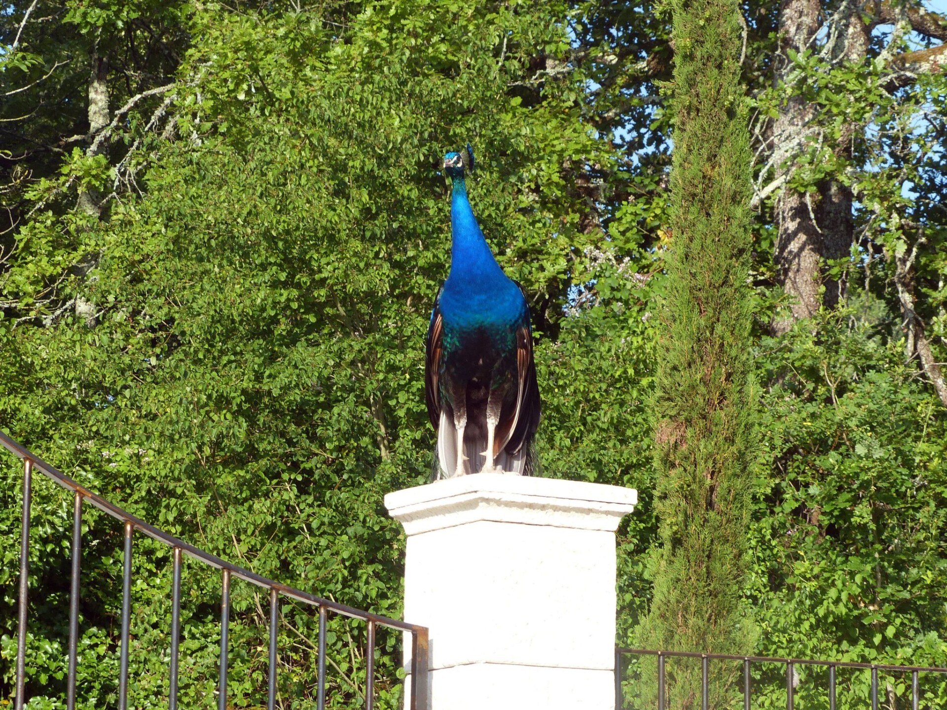 Our pigeonnier (pigeon house) is located in Montagudet. Here, at the very back of the Valromane, lies our peacock farm, in the centre of the magnificent region of south-western Quercy. The road ends after our small country estate. The peacock farm and the 3 hectares of pastureland belonging to it are populated by 3 donkeys, 7 cats, 2 dogs and 6 peacocks. Our 2 dogs: a French mongrel and a Great Dane. They are very friendly and affectionate!The Pigeonnier, our guest house. There are 2 rooms in the tower of the former pigeon house. The living room next to the tower offers plenty of space for 4 people. Behind the new, very well-equipped kitchen there is a toilet, washbasin and shower. The guest house has free WLAN access. You can enjoy breakfast to the full on the magnificent sun terrace with pergola and views over the entire wild and romantic valley! You can enjoy the evening sun at the bistro table in the garden on the "village square". The former pigeon house is fully equipped for our guests. In the tower room upstairs there is a double bed (200 x 180 cm), below it a bedroom with two single beds (190 x 90 cm), the living room with adjoining kitchen is generously sized for 4 people and has a large dining table for 6 people. In addition to the air conditioning, there is a cosy fireplace and access to the magnificent terrace. The kitchen is also equipped with a modern electric 4-burner hob and an equally new oven, microwave, dishwasher ¨and an espresso machine. The fenced pool, which is only reserved for the tenants of the holiday home, is just a few steps away, and the Lac du Polonais, which is also located on the property, is a short walk away.Dining The beautiful old solid wood table seats up to 6 people, together with the matching high-quality cutlery and crockery, of course.The bedroom on the ground floor The light-flooded room has 2 beds (190 x 95 cm), it is located directly below the tower room and is connected to it by a staircase.The tower room Lie back on the 1.80 m x 2.00 m family bed and look up into the roof truss. You'll feel like you're in the Middle Ages - only much, much more comfortable!When you enter the house from our "village square", you will find yourself in a wonderful location that is almost all yours! The pergola-covered terrace with its magnificent view is equipped with a new table and chairs for 4 people, and the child-proof fenced pool (7.5 x 12.5 m) with sunbathing area and sun loungers is all yours! Behind it is a children's playground the size of a football pitch with a petanque court. On the opposite side of our "village square" is a small, open games room with a games table (cards, poker etc.), darts and lots of toys. Down in our valley is the private "nature reserve", the Lac du Polonaise, which was created almost 100 years ago by a Polish owner of the estate. On our private zoo on the farm there are 2 dogs (a large Great Dane and a French special mix), they are all very affectionate and friendly, the 7 cats keep their distance, the 6 peacocks romp around the farm and retreat to the oak trees at night and the donkeys are either in the stable or in the pasture, they are also very affectionate and trusting.With a bit of luck, you can feel like Asterix and Obelix in the evening and watch the wild boars at our spring on the other side of the valley. Our animals (3 dogs, 2 cats and 7 peacocks) romp around on the "village square" and keep things busy. We love children and children love our peacock farm!The extensive and overgrown oak forests with the old stone walls fencing the former pastures, the ruins of old farmhouses and sod fountains invite you to go hiking right on the doorstep. Down in the valley, after 4 km, you will find the Way of St James and the pilgrimage town of Lauzerte, which is one of the most beautiful villages in France (with restaurants, market, pharmacy, kiosks, bakery and supermarket), within a radius of 20 km, equally well-known places such as Montaigu du Quercy with its beautiful beach and hire boats, Montcuq with its splendid market, Roquecor, whose first traces of a settlement date back to the Bronze Age, in particular at the cave site "Lou Roc des Nobis", which lies below the village. the old abbey town of Moissac with its magnificent monastery and Cahors, the town on the Lot with its beautiful vineyards