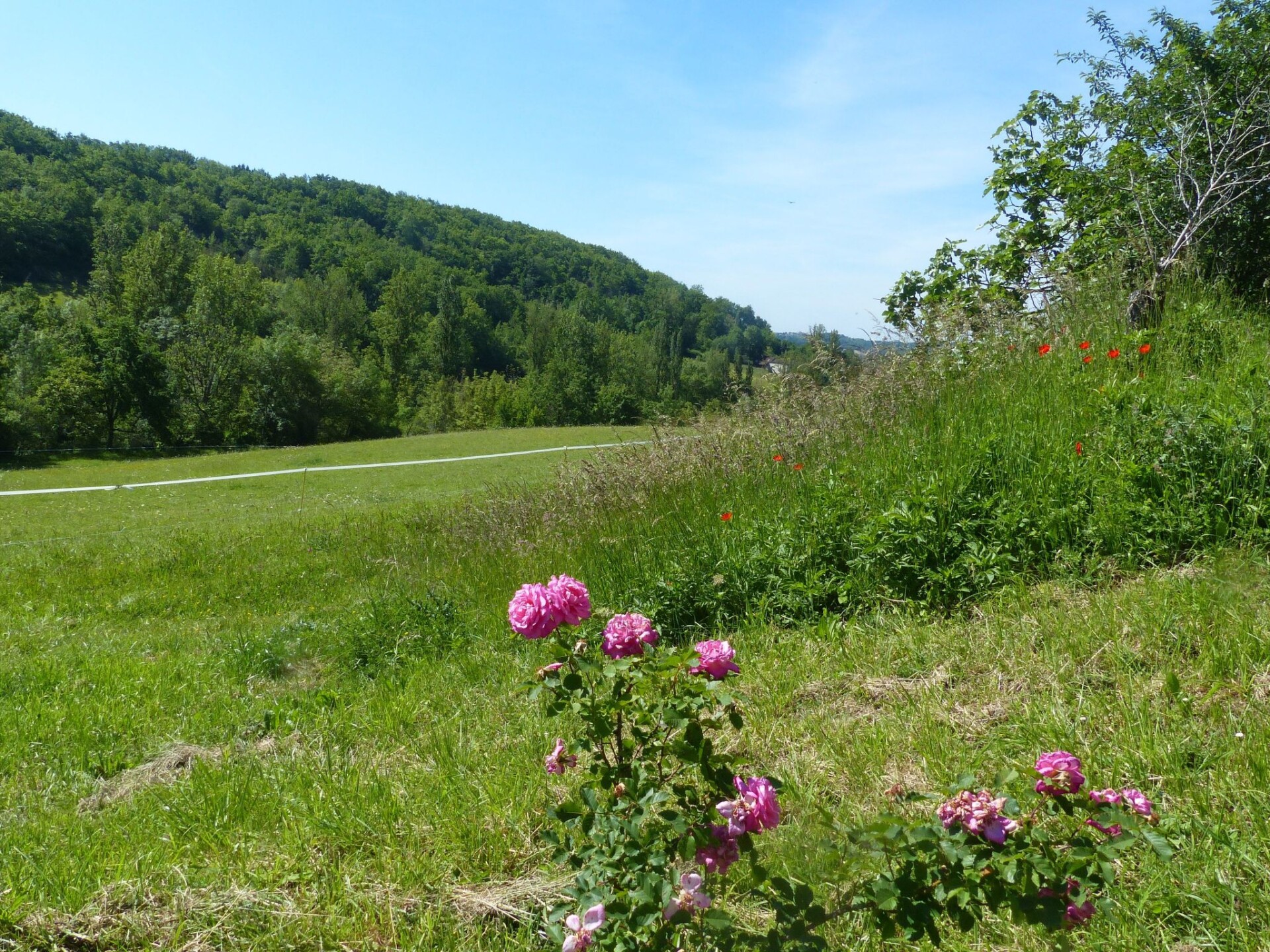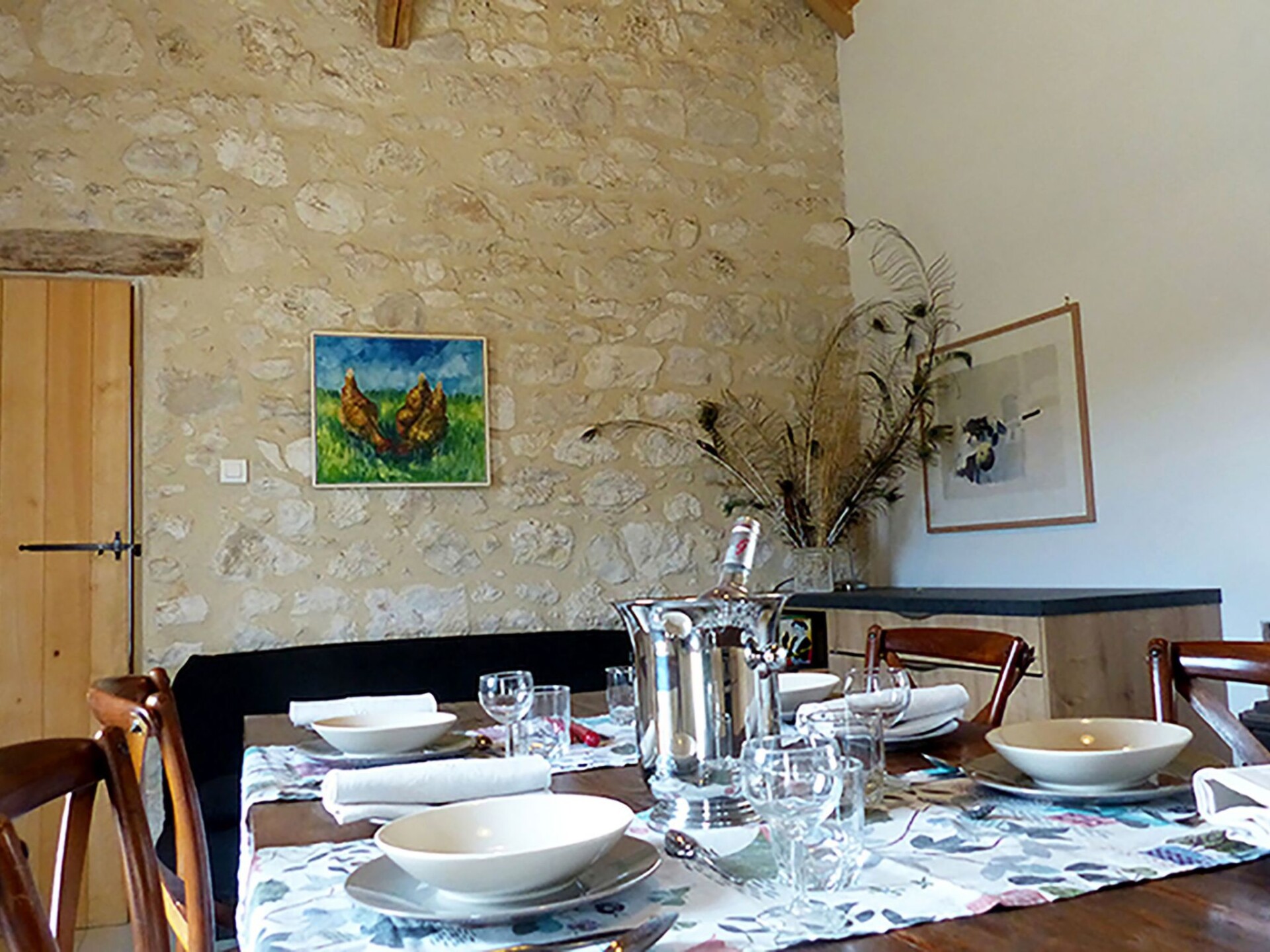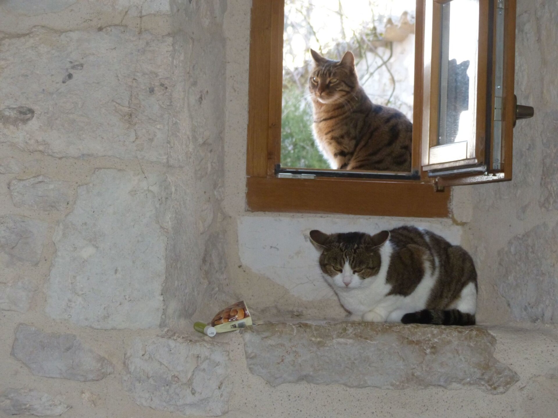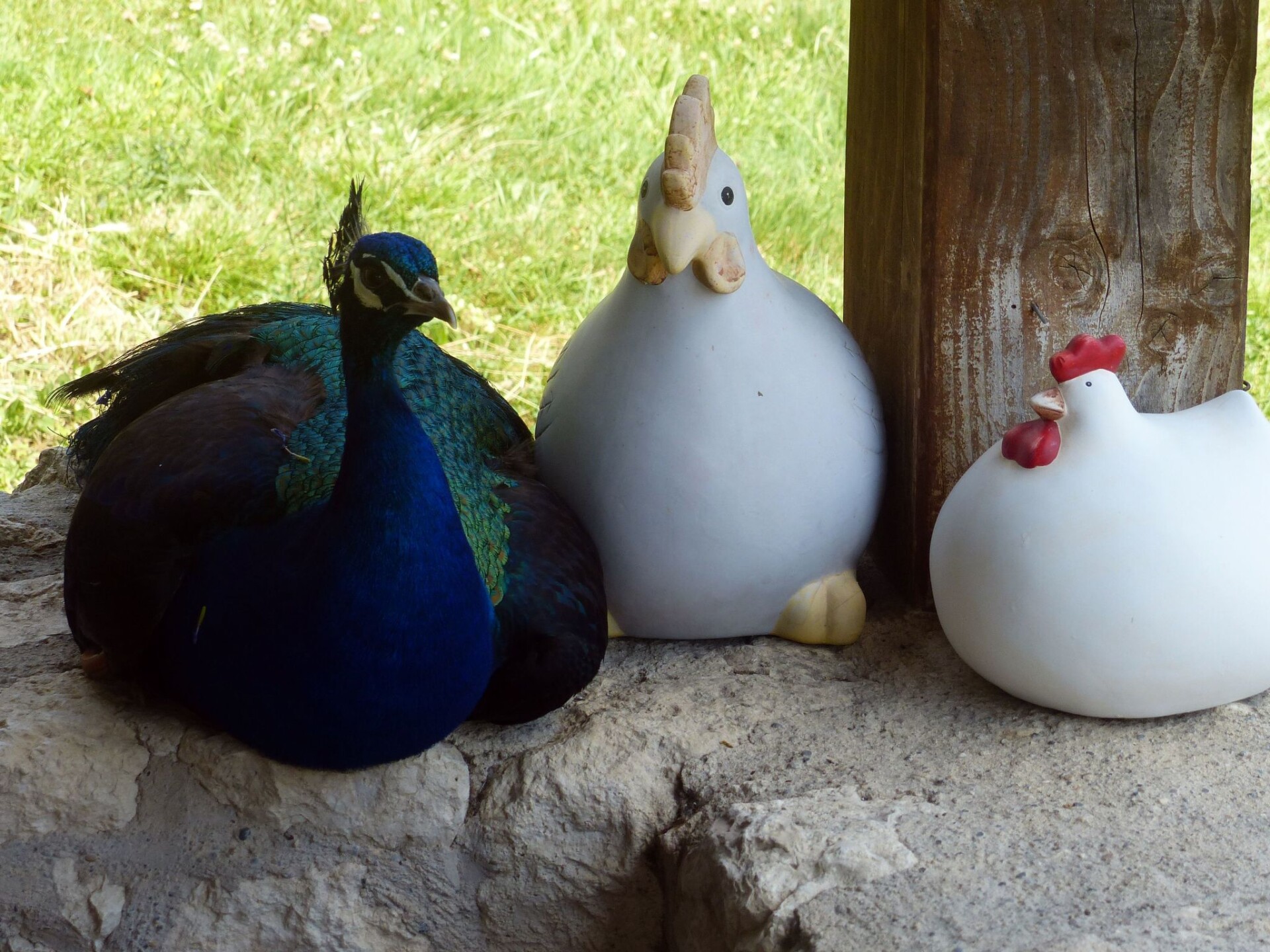 Our pigeonnier (pigeon house) is located in Montagudet. Here, at the very back of the Valromane, lies our peacock farm, in the centre of the magnificent region of south-western Quercy. The road ends after our small country estate. The peacock farm and the 3 hectares of pastureland belonging to it are populated by 3 donkeys, 7 cats, 2 dogs and 6 peacocks. Our 2 dogs: a French mongrel and a Great Dane. They are very friendly and affectionate!The Pigeonnier, our guest house. There are 2 rooms in the tower of the former pigeon house. The living room next to the tower offers plenty of space for 4 people. Behind the new, very well-equipped kitchen there is a toilet, washbasin and shower. The guest house has free WLAN access. You can enjoy breakfast to the full on the magnificent sun terrace with pergola and views over the entire wild and romantic valley! You can enjoy the evening sun at the bistro table in the garden on the "village square". The former pigeon house is fully equipped for our guests. In the tower room upstairs there is a double bed (200 x 180 cm), below it a bedroom with two single beds (190 x 90 cm), the living room with adjoining kitchen is generously sized for 4 people and has a large dining table for 6 people. In addition to the air conditioning, there is a cosy fireplace and access to the magnificent terrace. The kitchen is also equipped with a modern electric 4-burner hob and an equally new oven, microwave, dishwasher ¨and an espresso machine. The fenced pool, which is only reserved for the tenants of the holiday home, is just a few steps away, and the Lac du Polonais, which is also located on the property, is a short walk away.Dining The beautiful old solid wood table seats up to 6 people, together with the matching high-quality cutlery and crockery, of course.The bedroom on the ground floor The light-flooded room has 2 beds (190 x 95 cm), it is located directly below the tower room and is connected to it by a staircase.The tower room Lie back on the 1.80 m x 2.00 m family bed and look up into the roof truss. You'll feel like you're in the Middle Ages - only much, much more comfortable!When you enter the house from our "village square", you will find yourself in a wonderful location that is almost all yours! The pergola-covered terrace with its magnificent view is equipped with a new table and chairs for 4 people, and the child-proof fenced pool (7.5 x 12.5 m) with sunbathing area and sun loungers is all yours! Behind it is a children's playground the size of a football pitch with a petanque court. On the opposite side of our "village square" is a small, open games room with a games table (cards, poker etc.), darts and lots of toys. Down in our valley is the private "nature reserve", the Lac du Polonaise, which was created almost 100 years ago by a Polish owner of the estate. On our private zoo on the farm there are 2 dogs (a large Great Dane and a French special mix), they are all very affectionate and friendly, the 7 cats keep their distance, the 6 peacocks romp around the farm and retreat to the oak trees at night and the donkeys are either in the stable or in the pasture, they are also very affectionate and trusting.With a bit of luck, you can feel like Asterix and Obelix in the evening and watch the wild boars at our spring on the other side of the valley. Our animals (3 dogs, 2 cats and 7 peacocks) romp around on the "village square" and keep things busy. We love children and children love our peacock farm!The extensive and overgrown oak forests with the old stone walls fencing the former pastures, the ruins of old farmhouses and sod fountains invite you to go hiking right on the doorstep. Down in the valley, after 4 km, you will find the Way of St James and the pilgrimage town of Lauzerte, which is one of the most beautiful villages in France (with restaurants, market, pharmacy, kiosks, bakery and supermarket), within a radius of 20 km, equally well-known places such as Montaigu du Quercy with its beautiful beach and hire boats, Montcuq with its splendid market, Roquecor, whose first traces of a settlement date back to the Bronze Age, in particular at the cave site "Lou Roc des Nobis", which lies below the village. the old abbey town of Moissac with its magnificent monastery and Cahors, the town on the Lot with its beautiful vineyards