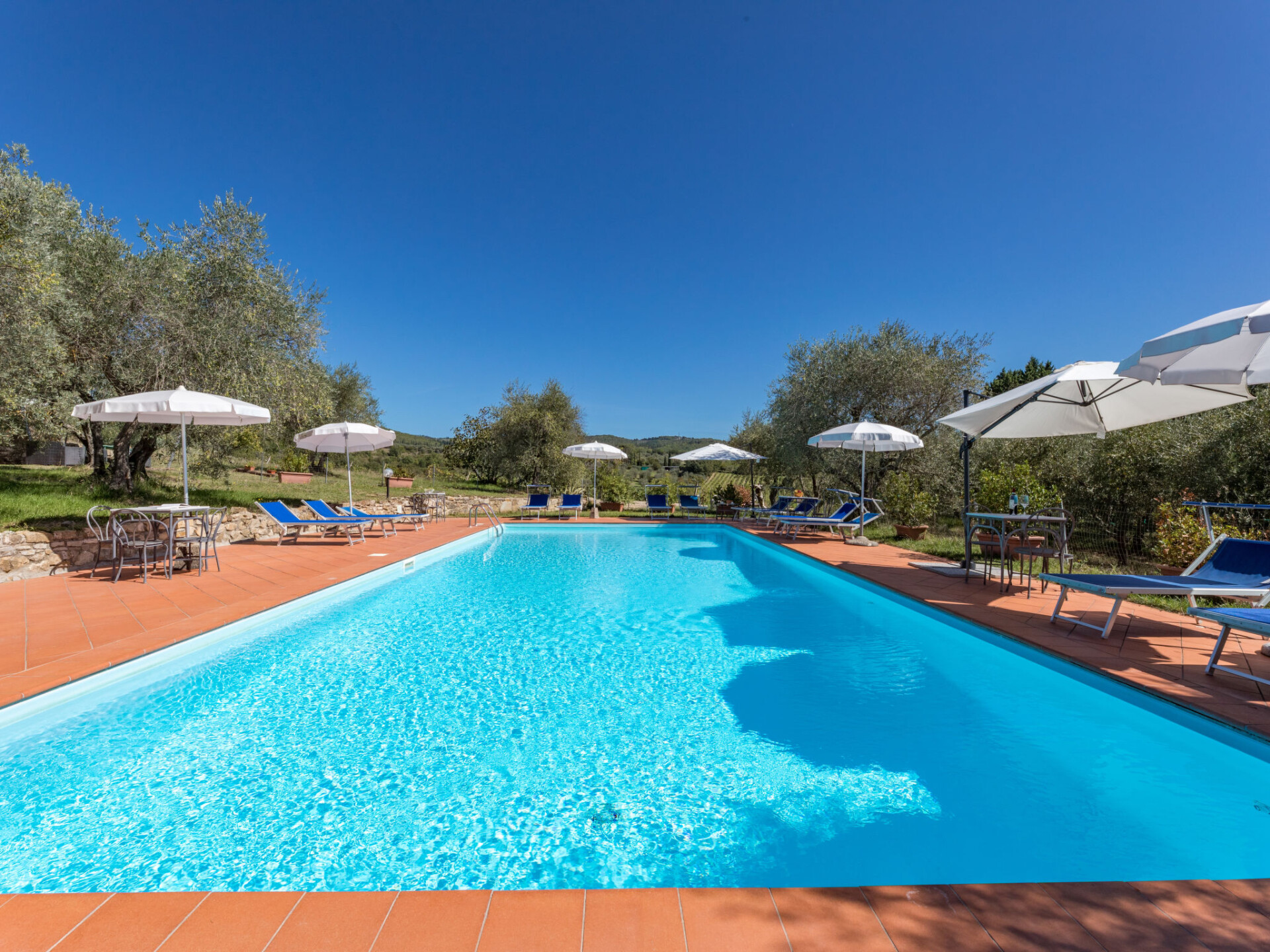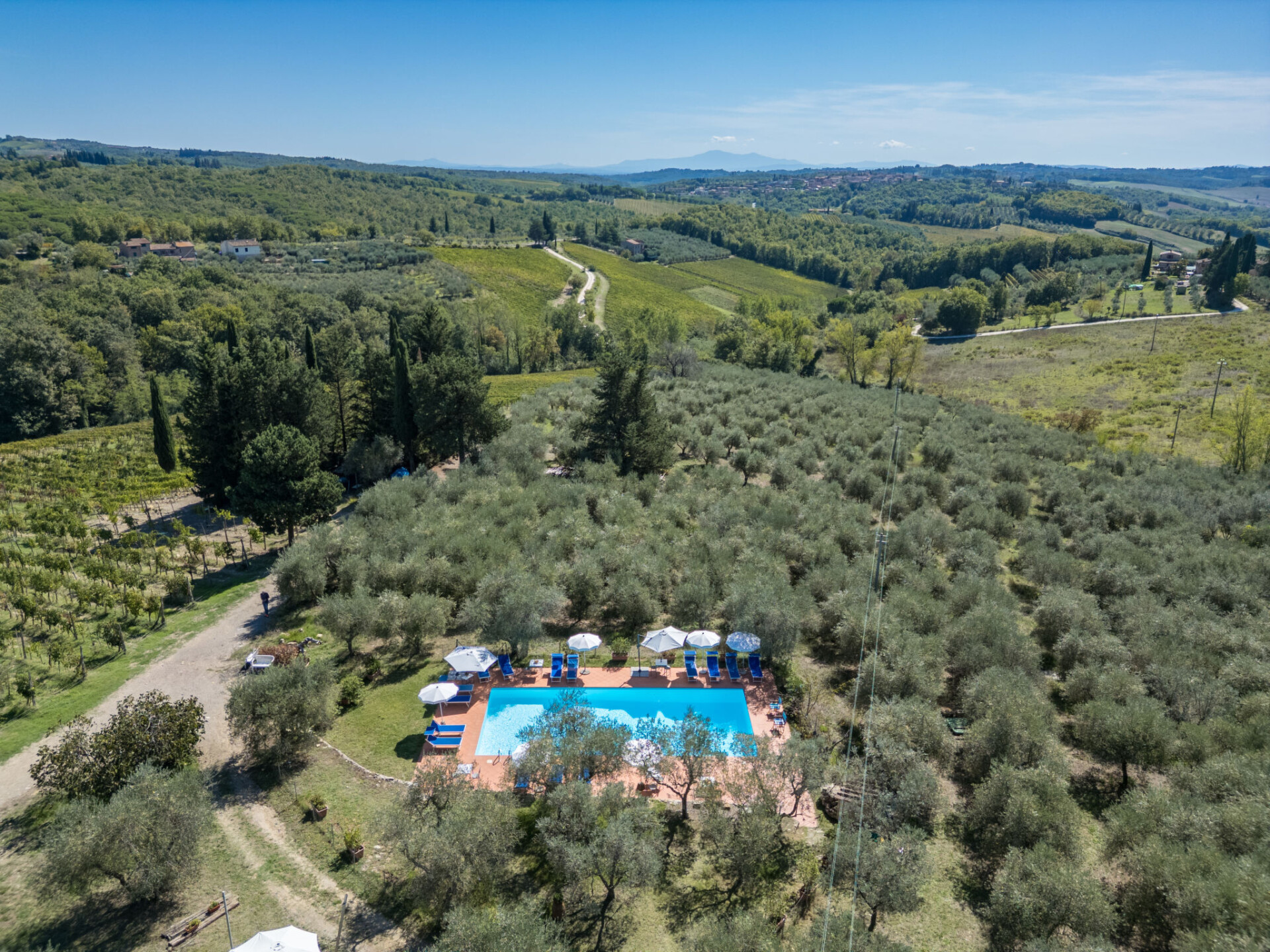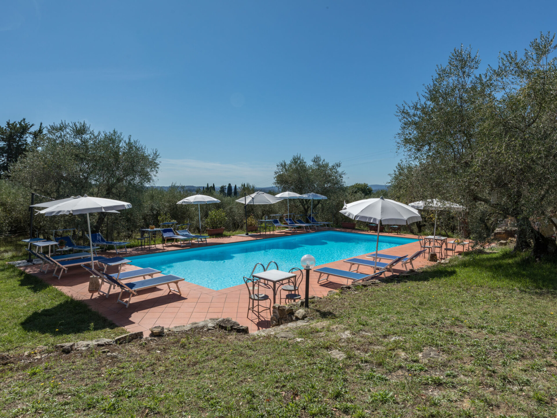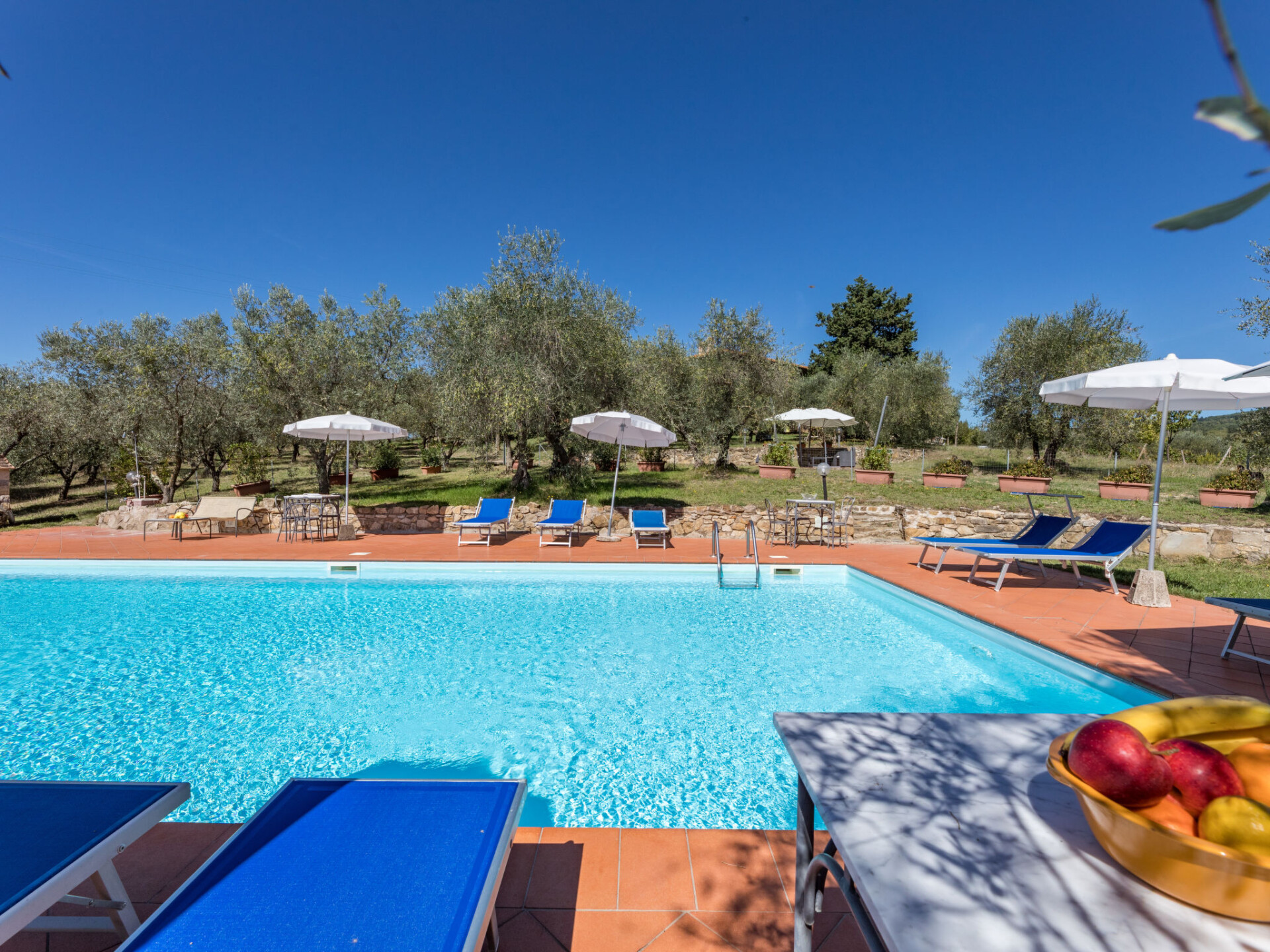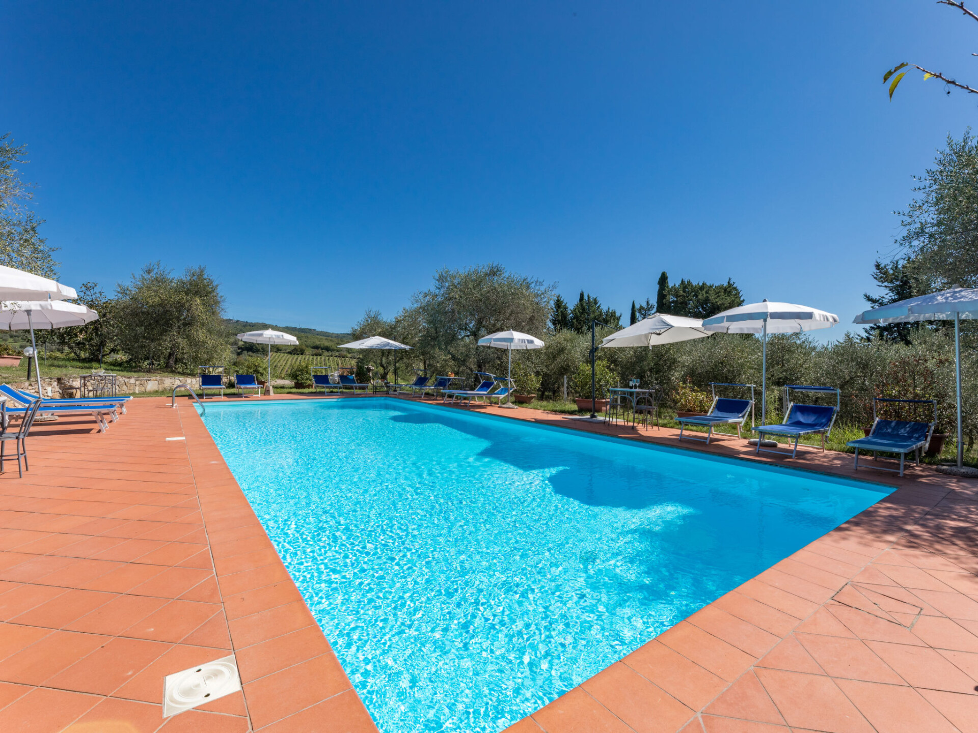 Castellina in Chianti: Rustieke agriturismo "La Foresta", omgeven door velden en wijngaarden. 4 appartementen in de woning. 10 km van het centrum van Castellina in Chianti, 12 m van het centrum van Siena, rustige, zonnige ligging, te midden van groen. Voor medegebruik: terrein, planten en bomen, weide, openluchtzwembad omheind (6 x 14 m, seizoensgebonden beschikbaarheid: 01.Mei. - 15.Okt.). Buitendouche, patio, terras, tuinmeubelen, barbecue, onderhoud zwembad door de eigenaar/tuinman. In het huis: receptie, wasmachine (voor medegebruik). 2 km lange rommelige toegangsweg tot aan het huis. Overdekte parkeerplaats bij het huis. Winkel 6 km, levensmiddelenwinkel 6 km, supermarkt 6 km, restaurant 2 km, bushalte "Via Chiantigiana" 2 km, treinstation "Siens" 12 km. Attracties in de buurt: Siena 12 km, Greve in Chianti 20 km, SAn Gimignano 25 km, Firenze 65 km. Auto noodzakelijk. Baby uitrusting (incl.). Lokale verkoop van streekproducten. De woningen kunnen onderling van inrichting verschillen.