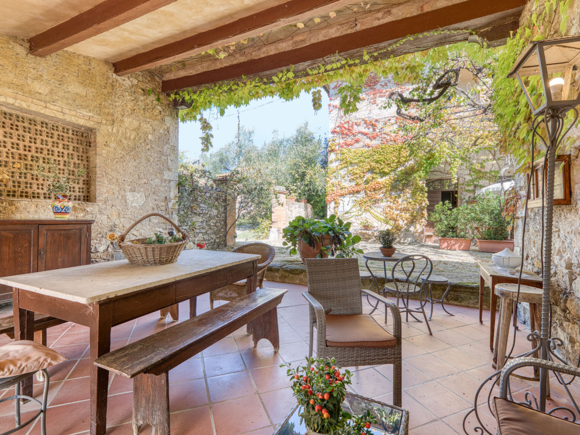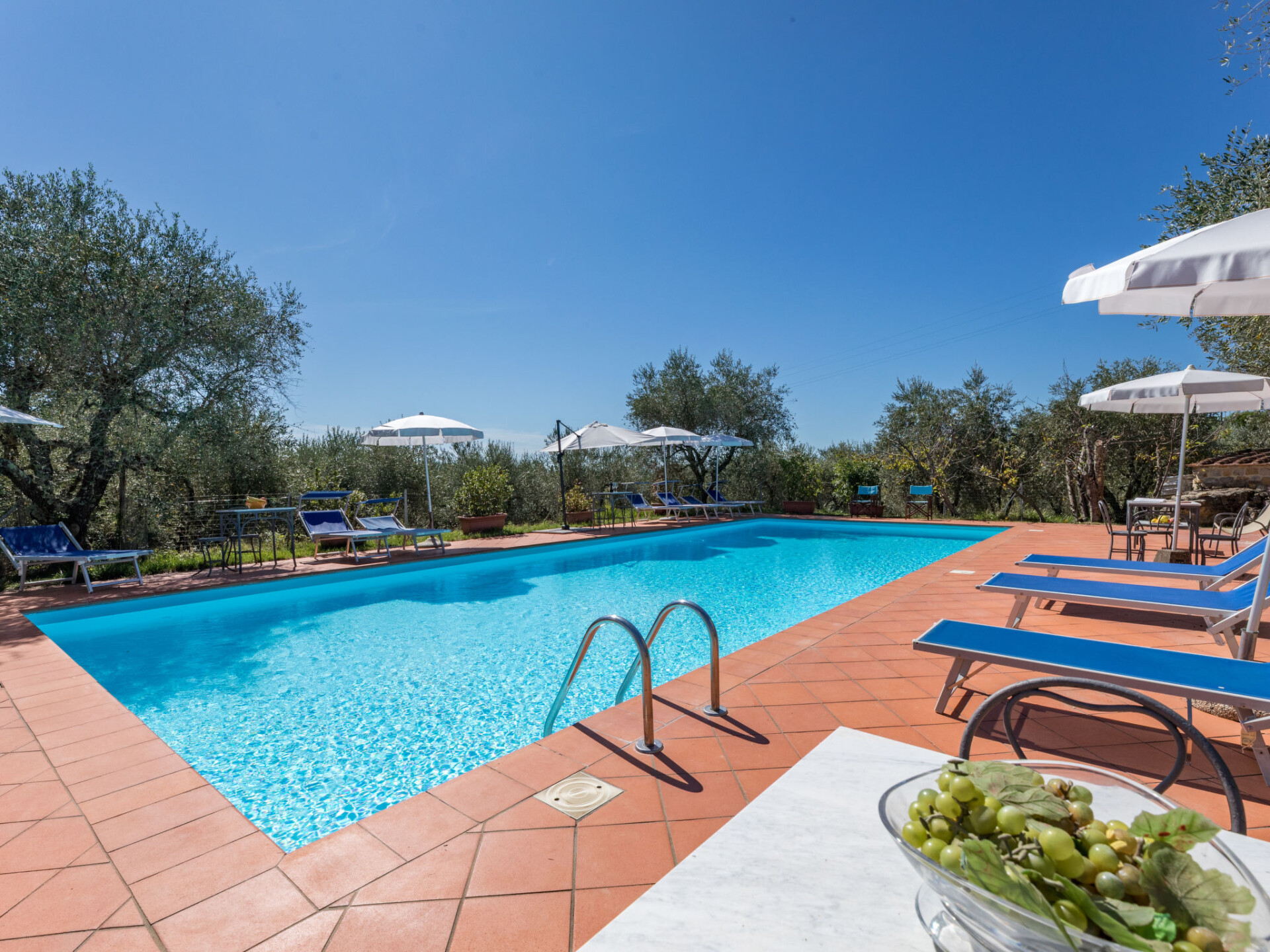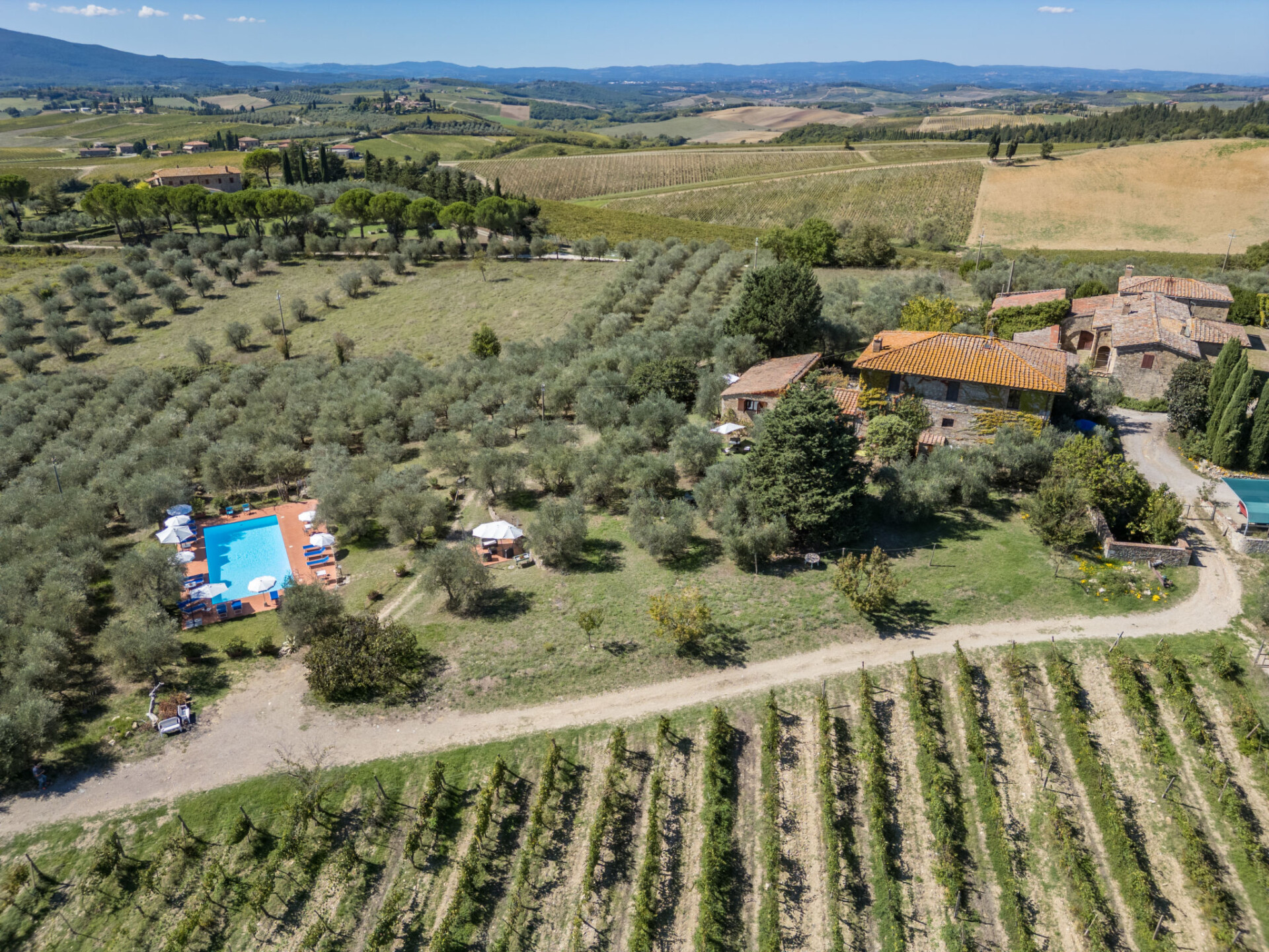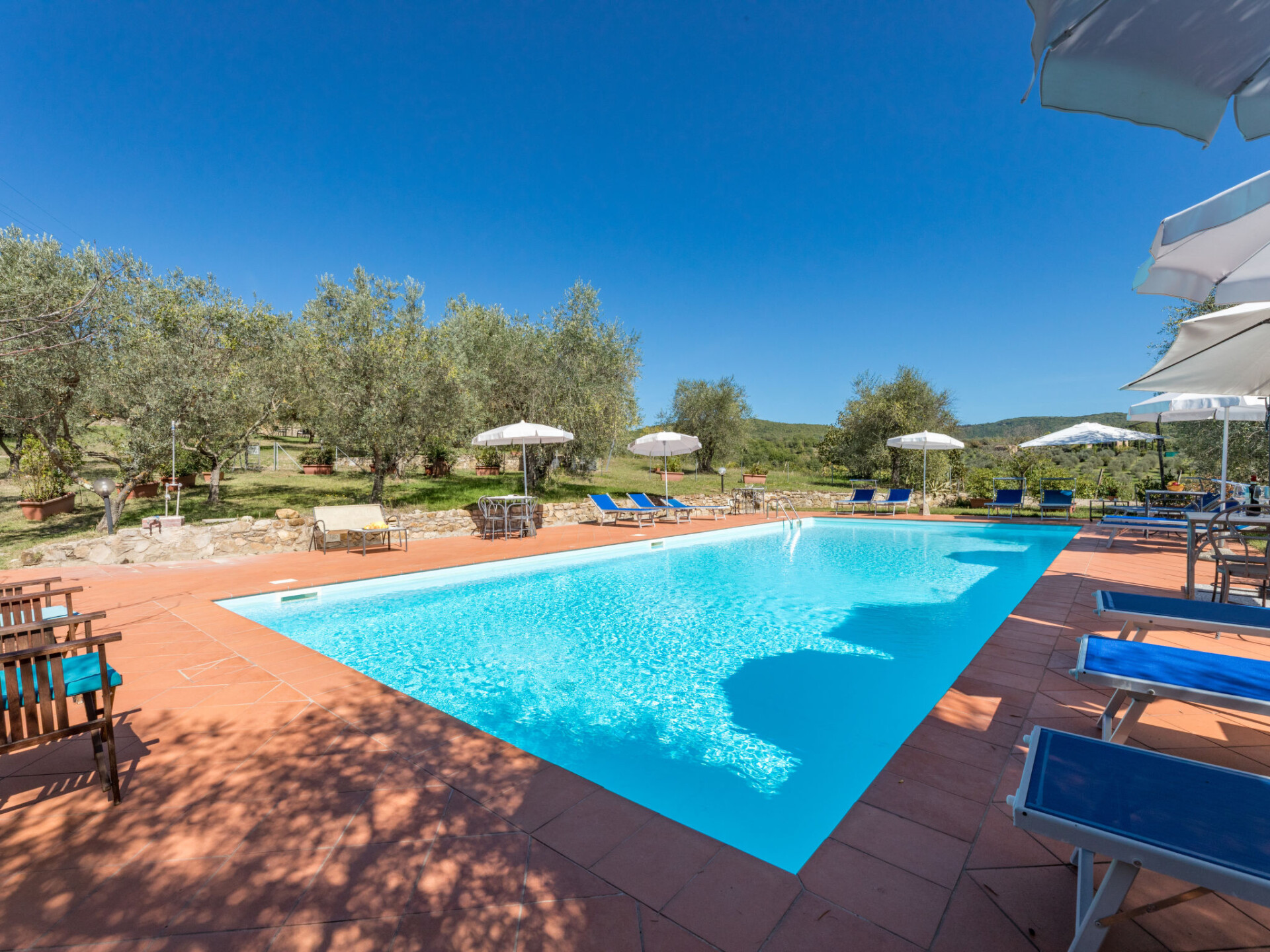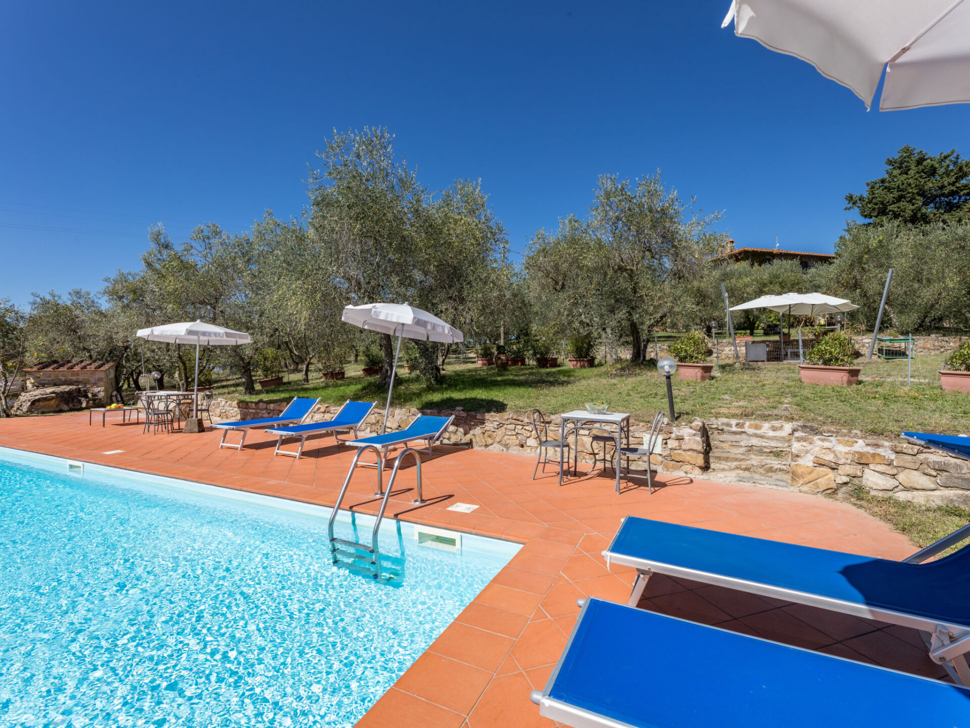 Castellina in Chianti: Rustieke agriturismo "La Foresta", omgeven door velden en wijngaarden. 4 appartementen in de woning. 10 km van het centrum van Castellina in Chianti, 12 m van het centrum van Siena, rustige, zonnige ligging, te midden van groen. Voor medegebruik: terrein, planten en bomen, weide, openluchtzwembad omheind (6 x 14 m, seizoensgebonden beschikbaarheid: 01.Mei. - 15.Okt.). Buitendouche, patio, terras, tuinmeubelen, barbecue, onderhoud zwembad door de eigenaar/tuinman. In het huis: receptie, wasmachine (voor medegebruik). 2 km lange rommelige toegangsweg tot aan het huis. Overdekte parkeerplaats bij het huis. Winkel 6 km, levensmiddelenwinkel 6 km, supermarkt 6 km, restaurant 2 km, bushalte "Via Chiantigiana" 2 km, treinstation "Siens" 12 km. Attracties in de buurt: Siena 12 km, Greve in Chianti 20 km, SAn Gimignano 25 km, Firenze 65 km. Auto noodzakelijk. Baby uitrusting (incl.). Lokale verkoop van streekproducten. De woningen kunnen onderling van inrichting verschillen.