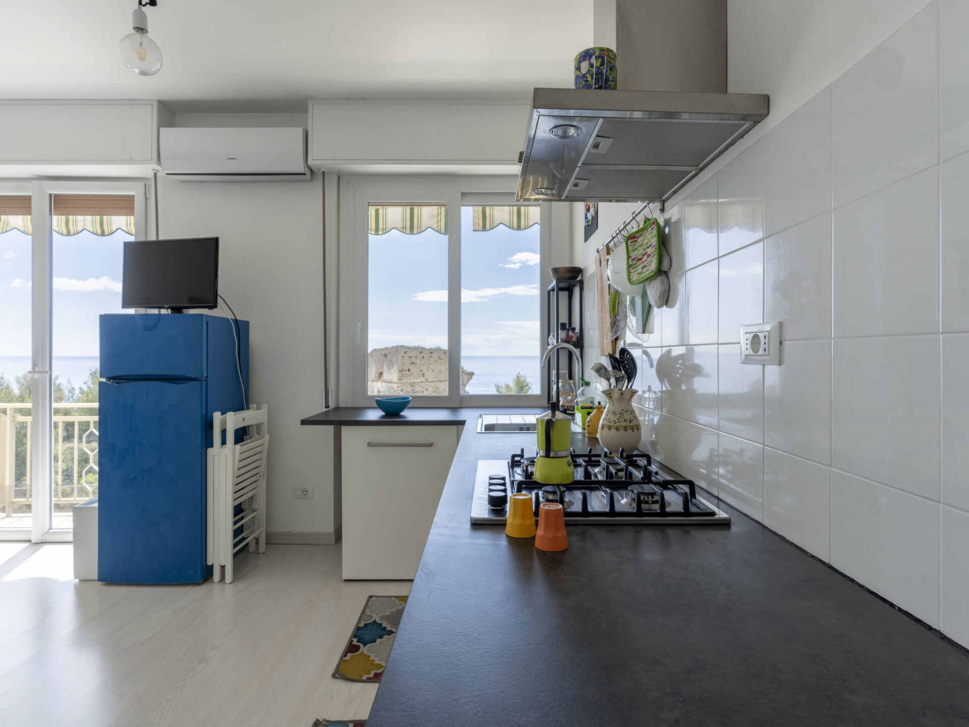 "La Fortezza", appartement 3-kamers 75 m2 op de 3e verdieping. Licht, doelmatig en modern ingericht: woon-/eetkamer. Uitgang naar het balkon. 1 2-pers. kamer. 1 kamer met 1 2-pers bed (2 x 90 cm, lengte 200 cm). Uitgang naar het balkon. Kookhoek (oven, afwasmachine, 4 kookpitten (vlammen), broodrooster, waterkoker). Uitgang naar het balkon. Douche/WC. Air-conditioning, heteluchtverwarming. Verwarming alleen beschikbaar van 01.11. tot 08.04. Balkon 20 m2. Balkonmeubilair. Mooi panoramazicht op zee en de plaats. Ter beschikking: wasmachine, kinderbed tot 2 jaar, haardroger. Internet (WiFi, gratis). Geschikt voor families. IT008055C26PQXFEV5