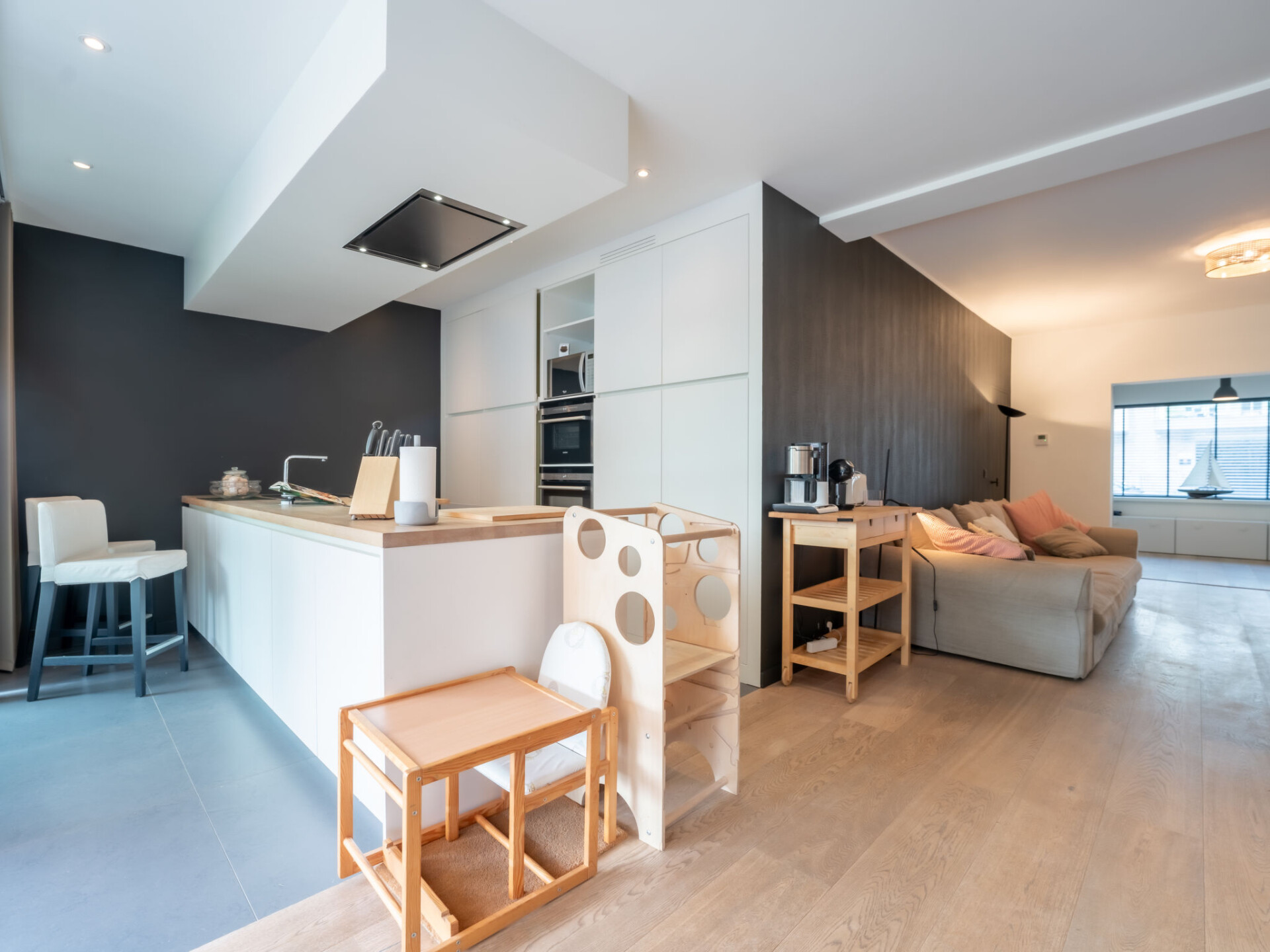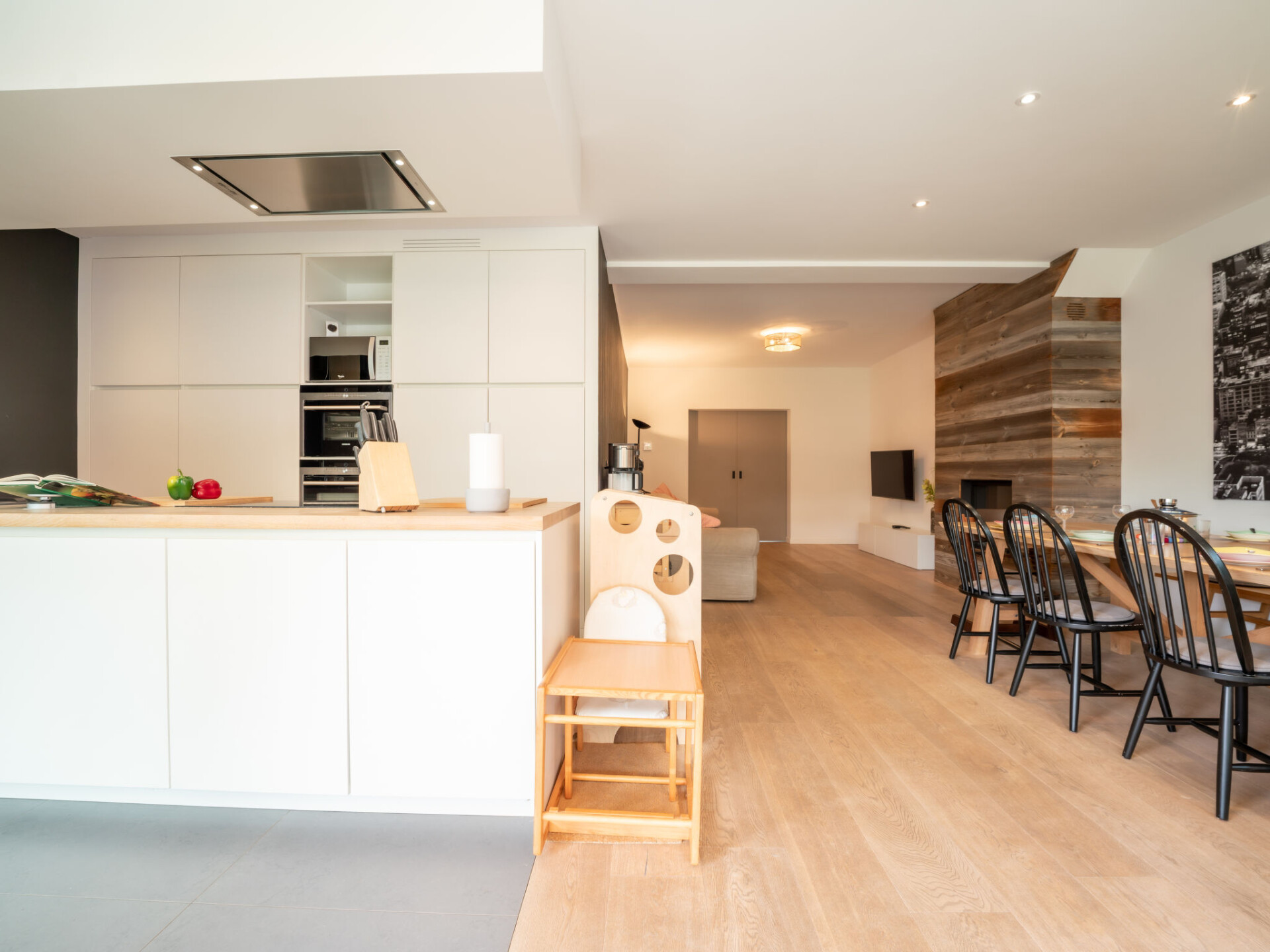 "La Gabane quiet but central house", huis 4-kamers 120 m2. Het objekt is geschikt voor 4 volwassenen + 3 kinderen. Modern en stijlvol ingericht: hal met aparte WC. Open woon-/slaapkamer met 1 divanbed (160 cm, lengte 200 cm). Open woon-/eetkamer met schuifdeur met open haard, TV en internationale TV-zenders (Flatscreen TV). Uitgang naar de tuin. Doorgangskamer. Keuken (oven, afwasmachine, 5 inductiekookplaten, broodrooster, waterkoker, magnetron, diepvriezer, elektrische koffiemachine, kookeiland). Uitgang naar de tuin. Bovenverdieping: 1 kinderkamer met 2 bedden (90 cm, lengte 200 cm). 1 groot 2-pers. kamer met 1 2-pers bed (2 x 90 cm, lengte 200 cm), TV en internationale TV-zenders (Flatscreen TV). Galerij met aparte WC. 1 groot kamer met 1 x 2 stapelbedden (90 cm, lengte 200 cm), 1 2-pers bed (2 x 80 cm, lengte 200 cm). Bad/douche. Terrasmeubelen, barbecue (verrijdbaar). Ter beschikking: wasmachine, droger, kinderstoel, kinderbed tot 2 jaar, haardroger, haardhout (gratis). Internet (Internet (WiFi), gratis). Geschikt voor families. Rookvrij huis. Rookmelders, brandblusser.