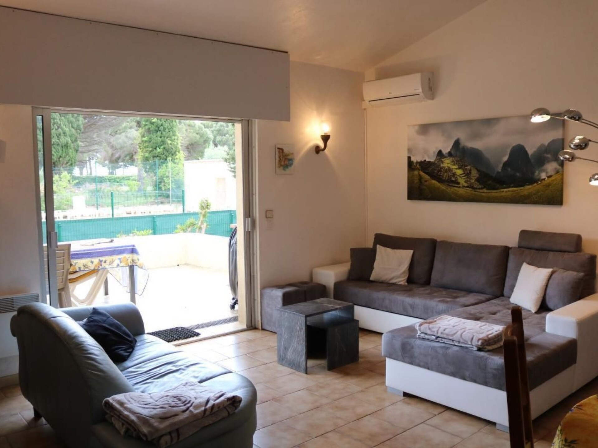 Maximaal 2 huisdieren/honden toegestaan. La Garonnette welcomes you to Sainte-Maxime on the Côte d'Azur. The holiday homes are located away from the hustle and bustle in a beautifully landscaped residence. The complex is fenced and equipped with an electric gate opener. The holiday homes in La Garonnette are ideal for holidaymakers looking for peace and quiet and want to spend their holidays close to the sea and beach. Families with children and dog owners are also very welcome. Baby cots and high chairs can be provided on request.There is a private swimming pool (5.5 x 11 metres) and various sports facilities in the surrounding area. Each cottage is self-contained and has its own entrance, as well as its own garden with terrace and barbecue.Deckchairs are available for you!There are many excursion possibilities and places of interest in the neighbourhood. The sea and sandy beach "La Garonnette" are only 350 metres away, which you can easily reach on foot. We are happy to give you tips for excursions, restaurants and much more. So that you can enjoy the south of France to the full! La Garonnette 3 can accommodate up to six people. It has a master bedroom with a double bed (1.6 x 2 m), as well as a private bathroom / WC (in the corridor) and direct access to the garden. The second bedroom with a double bed (1.60 x 2m) and the third bedroom with a double bed (1.40 x 1.90m) share a bathroom/WC. A large, fully equipped kitchen adjoins the living/dining room. The living room has a cosy upholstered suite, as well as satellite TV and a music player. The small villa is equipped with air conditioning and a washing machine. A parking space is available for holiday guests. Enjoy the spacious garden (fenced) and the adjoining terrace with barbecue and outdoor fireplace. Deckchairs are available for you!Other sports and leisure facilities: There is a restaurant and a supermarket ("SPAR" market) in the immediate vicinity. If you want a fresh French croissant or baguette for breakfast every day, you can get one just round the corner on foot. There is a "Petit Casino" in the centre of Les Issambres, which is about one kilometre away. Holidaymakers will find larger shopping centres in the small town of Sainte Maxime and in Fréjus, which is not far away.Excursion options: Younger guests can also enjoy various attractions. Aqua Land with its various water slides and wave pool is just a few kilometres from the residence. In the direction of St Tropez there is also a park with various bouncy castles where children can spend their time. Our sporty guests also have the opportunity to practise various sports in the immediate vicinity. The Ste Maxime golf course can be reached in about 10 minutes. Horse lovers can also pursue their hobby in the neighbourhood. There is also a tennis court within easy reach and, of course, water sports enthusiasts will not miss out either. Windsurfing is possible on numerous beaches in the area (e.g. directly in front of the house on the beach of "La Garonette"). Kitesurfers can reach the kite zone on the beach of "St Aygulf" within approx. 10 minutes. There are also various beaches where you can hire a jet ski and take it out to sea. If you prefer to do your laps on the go-kart track, you don't have to travel far for that either. This is just an exemplary list of various leisure activities in the area. There are also two amusement parks with various courses, an outdoor paint ball course, various mini golf courses, etc., which can be visited as required.Sports facilities in the area: fishing, golf course, mountain biking, paragliding, cycling tours, riding stables / riding facilities, sports centre, surfing, diving, tennis, water skiing, sailingLocation description: Ste Maxime is a small town located in the bay of St. Tropez directly by the sea. Restaurants, pavement cafés and bars as well as various boutiques invite you to linger. Here you will find the ideal holiday destination with beach, sun and sea, peace and relaxation as well as adventure and fascination. The municipality of Ste Maxime offers its guests numerous entertainment options. During the summer months, for example, there are regular outdoor concerts by renowned musicians, which can be attended by everyone free of charge. In addition, weekly markets are held daily at various locations in the Ste Maxime region, where you can buy everyday items as well as Provençal specialities. The town of Ste Maxime and numerous Provençal villages in the surrounding area also have a lot to offer in terms of culture. For example, a visit to the castle of Grimaud or St. Tropez (arrival by boat or car) is highly recommended. A boat trip through Port Grimaud ("Little Venice") is also a welcome change from a day at the beach. 481 639 383 00027