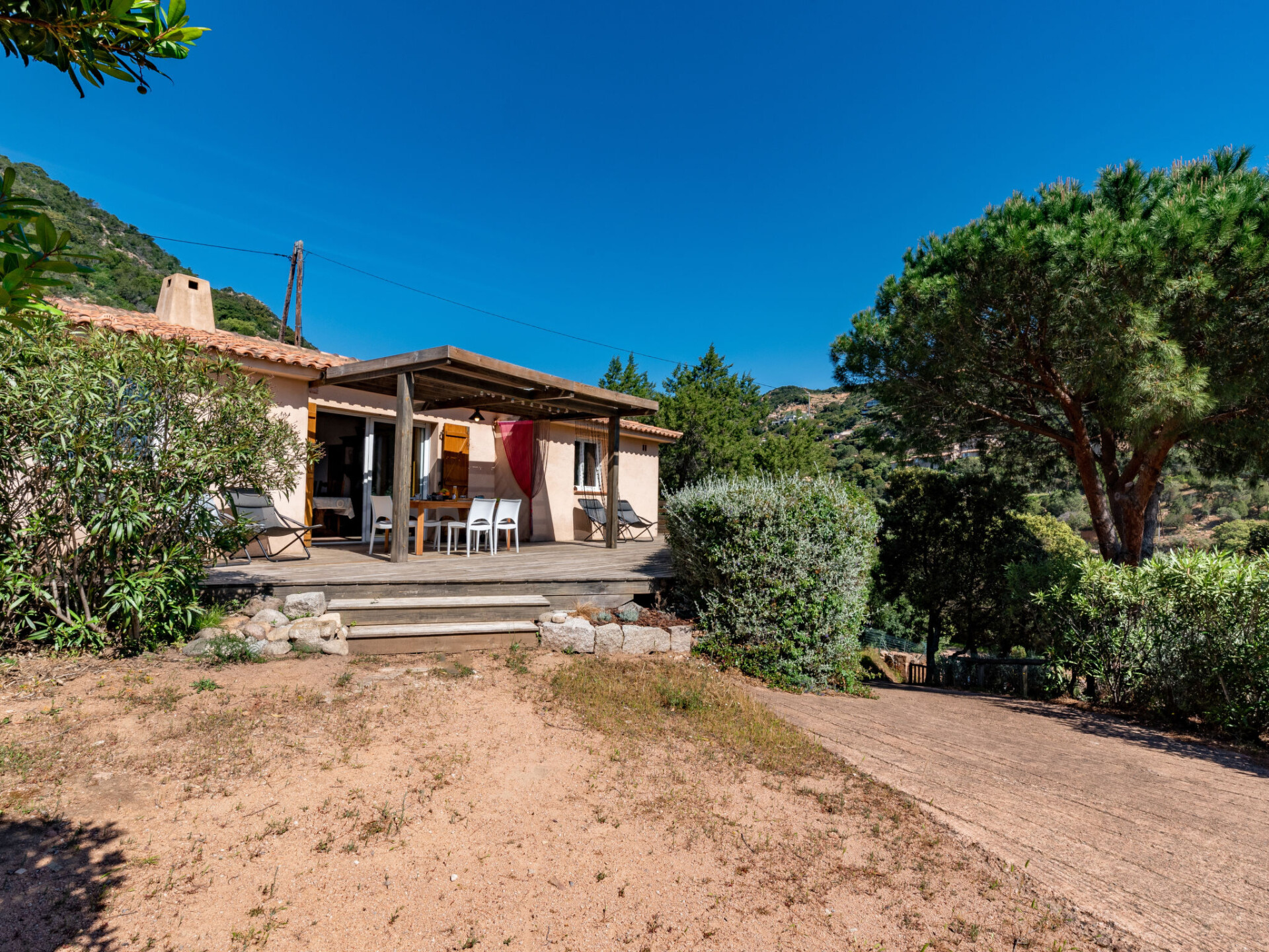 Eengezinswoning. In de plaats, 10 km van het centrum van Porto-Vecchio, op een heuvel, 500 m van zee, 500 m van het strand, de straat oversteken. Voor alleengebruik: terrein 1.400 m2 (omheind), parkeerplaats (voor 2 auto's) op het terrein. Supermarkt 6 km, winkelcentrum 11 km, restaurant 500 m, bushalte 6.5 km, zandstrand "Plage de Palombaggia" 500 m. Jachthaven 9 km. Attracties in de buurt: Centre ville de Porto-Vecchio 10 km, Plage de Santa Giulia 8 km, Bonifacio 26 km. Bekende meren kunnen gemakkelijk worden bereikt: Lac de l'Ospédale 20 km. Wandelgebied Aiguilles de Bavella 48 km. Auto noodzakelijk.