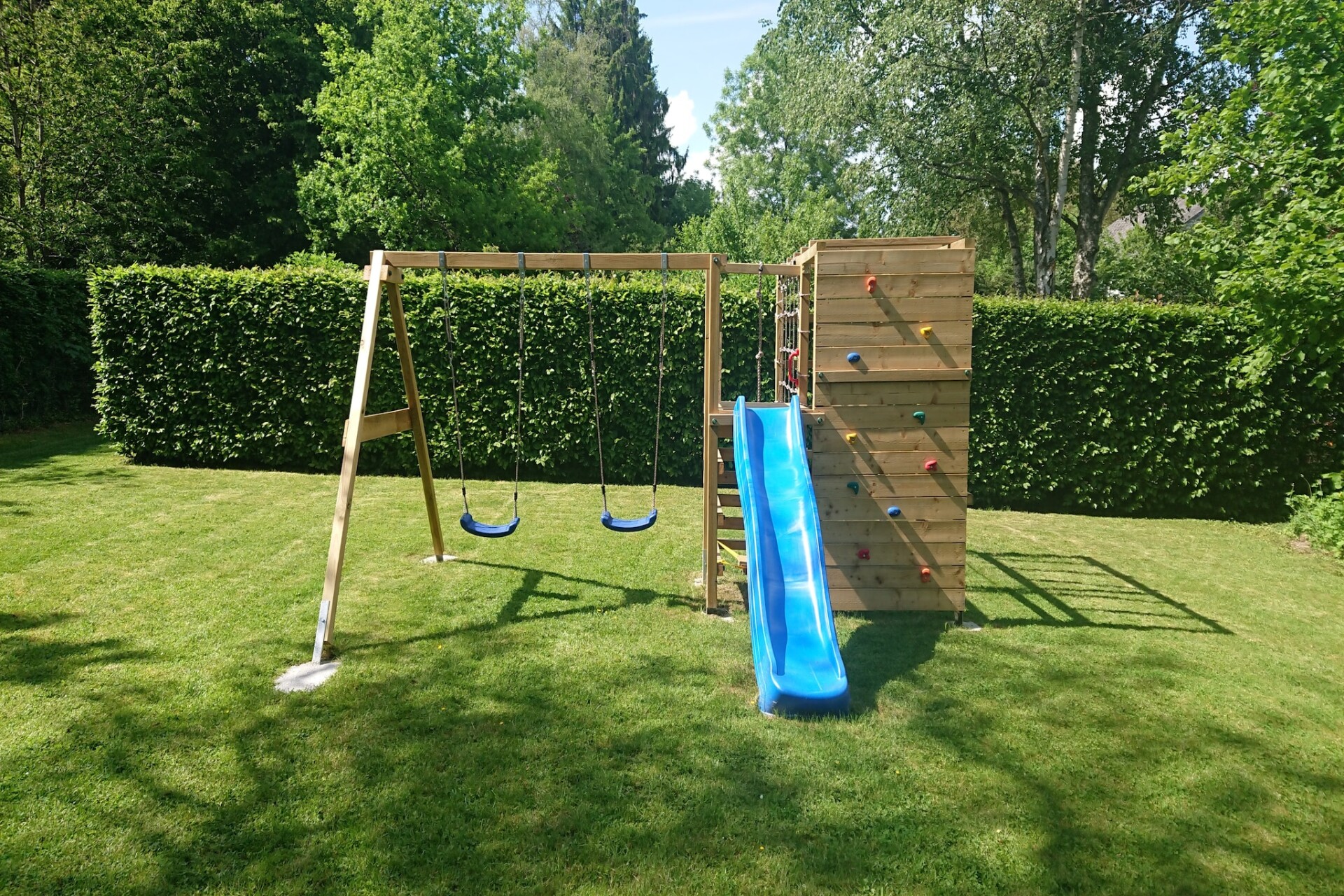 De villa is verdeeld over drie verdiepingen en beschikt over meerdere slaapkamers met en-suite badkamers, een gezellige woonkamer met open haard en entertainmentsysteem, en een volledig uitgeruste keuken. Gasten kunnen ontspannen in het privé-binnenzwembad, de sauna of spelletjes spelen in de speelkamer met darts en biljart. Buitenfaciliteiten omvatten een gemeubileerde tuin, een barbecue, een jeu de boulesbaan, een schommel en een plancha-grill, perfect om te ontspannen of bijeenkomsten te organiseren.