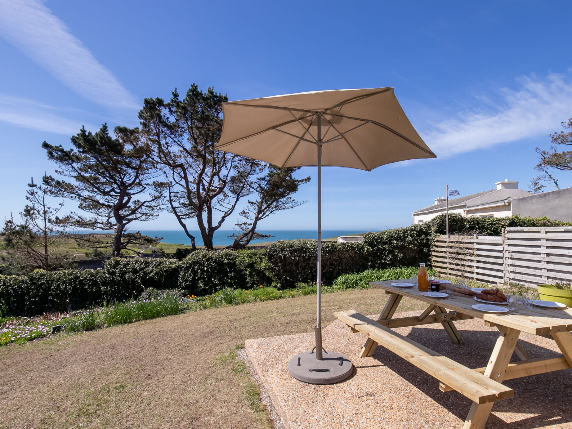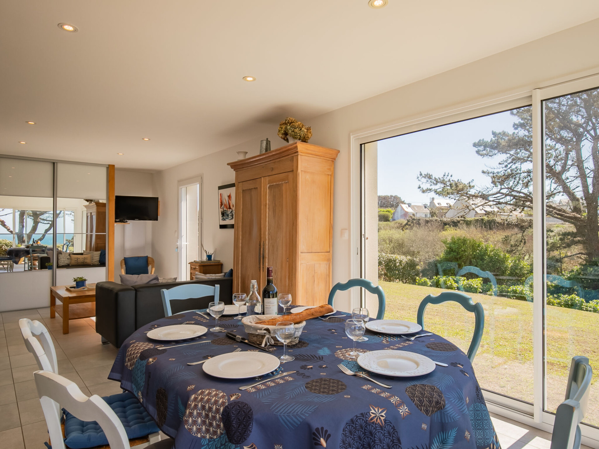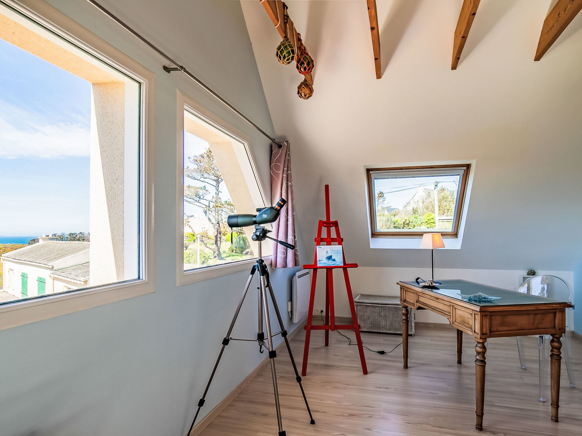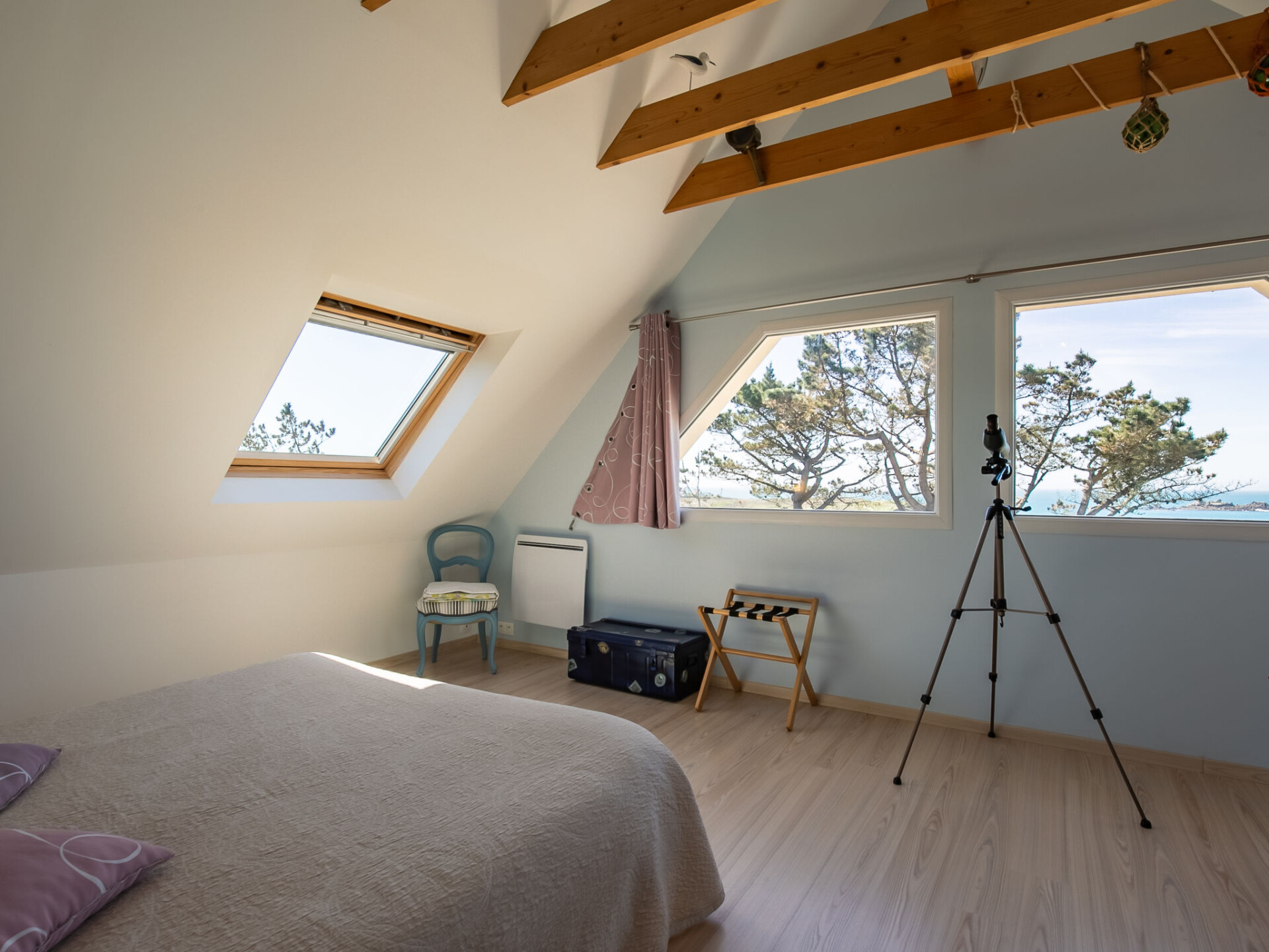 "La maison de Toul an Dour", huis 4-kamers 135 m2 op 2 verdiepingen. Ruim en licht, comfortabel en smaakvol ingericht: groot woon-/eetkamer 60 m2 met eettafel, TV en Flatscreen TV. Uitgang naar de tuin, naar het terras. Open keuken (oven, afwasmachine, 5 kookpitten (vlammen), broodrooster, waterkoker, magnetron, elektrische koffiemachine, pads voor de koffiemachine (Senseo) extra). Douche, aparte WC. Bovenverdieping: 1 groot kamer met panoramavenster met 1 2-pers bed (160 cm, lengte 200 cm). 1 kamer met 2 bedden (90 cm, lengte 190 cm). 1 kamer met 1 2-pers bed (140 cm, lengte 190 cm). Badkamer, aparte WC. Elektrische verwarming. Terras 20 m2, op het zuiden gelegen. Terrasmeubelen, barbecue, ligstoelen (4). Mooi uitzicht op zee. Ter beschikking: wasmachine, droger, strijkijzer, kinderstoel, kinderbed tot 2 jaar, haardroger, babycommode. Internet (WiFi, gratis). Rookvrij huis. Rookmelders. Aanbod door een particulier volgens art. 155, IV van CGI. FR 2996.645.1