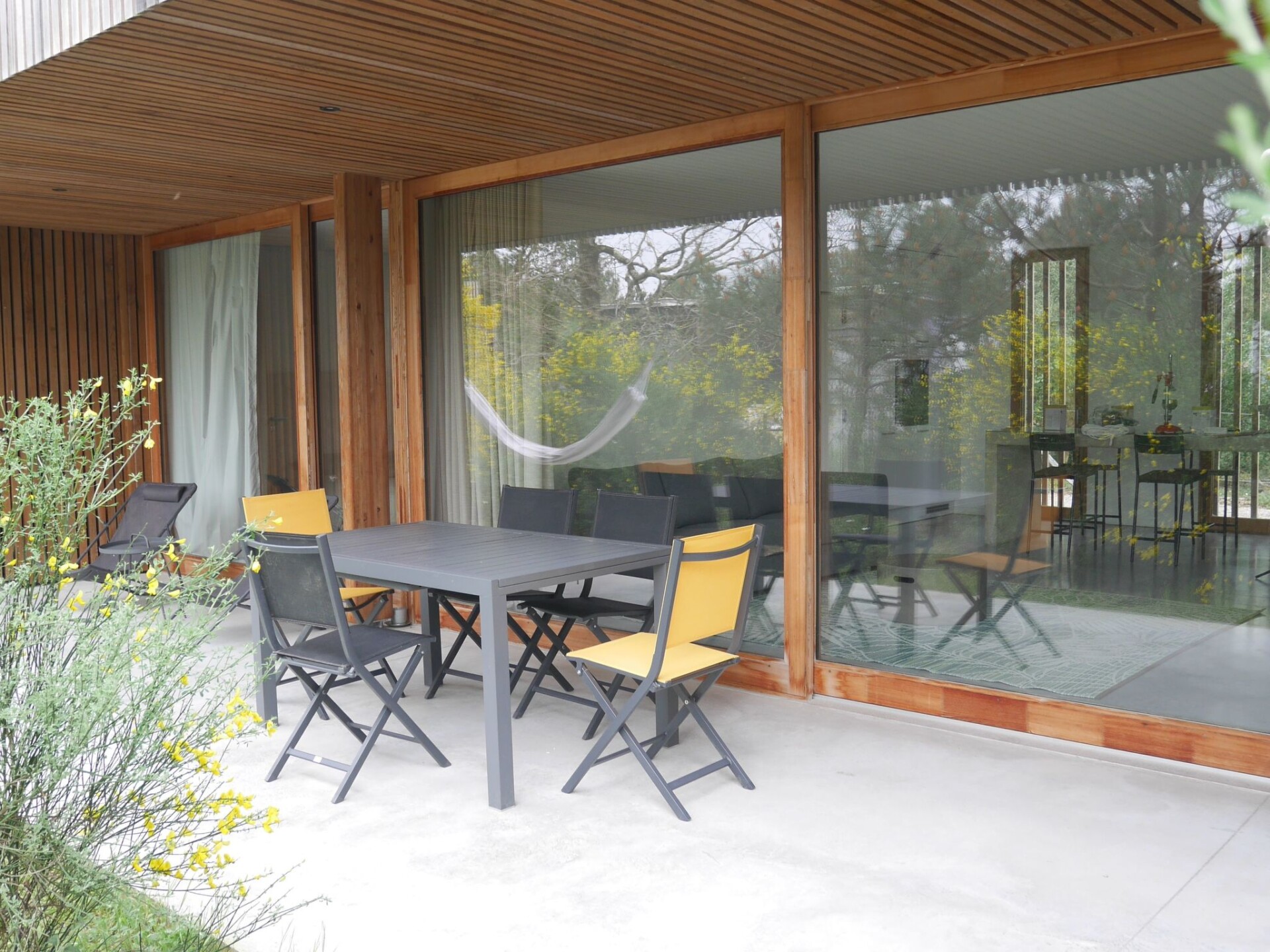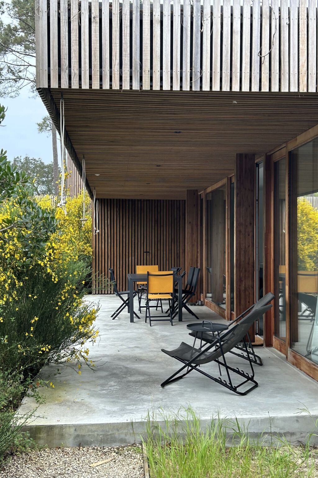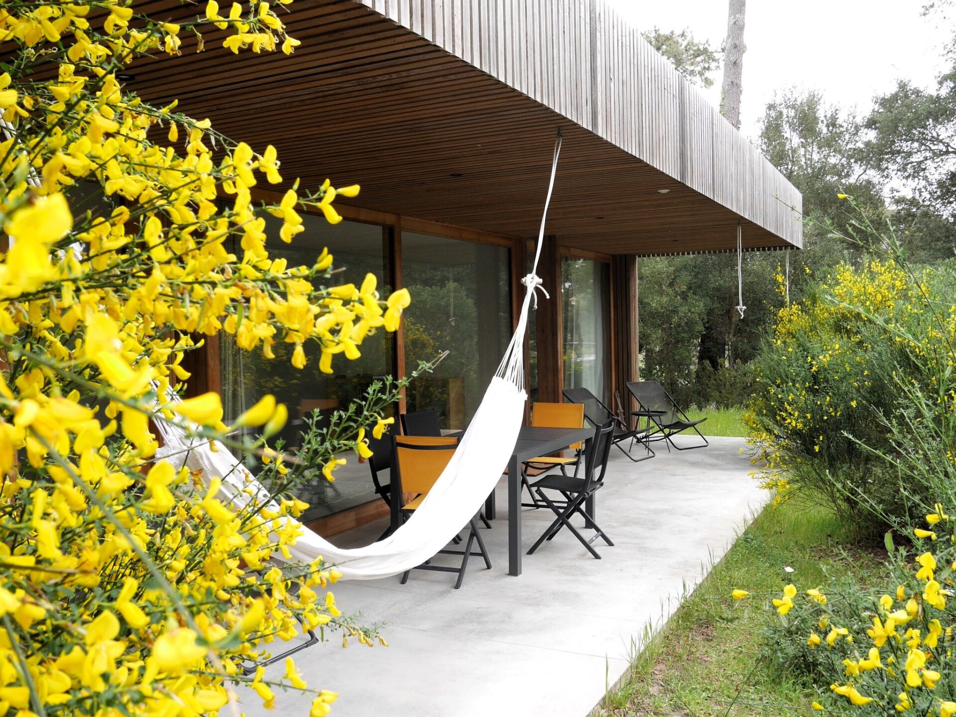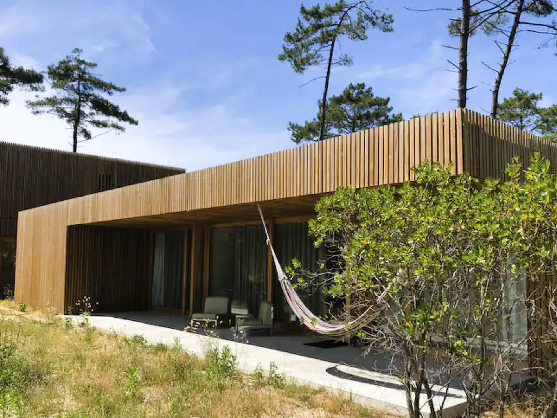 The house is located in a small residential area in the middle of one of the largest contiguous forest nature reserves in Europe, just 800 metres from the Atlantic Ocean. The idyllic location offers a harmonious connection to the surrounding nature and enables a relaxing stay amidst the pine forests and the refreshing breeze of the Atlantic.Direct access to the cycle path behind the house and to the beach, which can be reached on foot via an idyllic path in just 10 minutes, gives you the opportunity to experience the beauty of Contis Plage to the full. Larger towns such as Hossegor, Biarritz, Bordeaux and sights such as the Dune de Pillars or the vineyards around Bordeaux and the Pyrenees are easily accessible by car for a day trip.Contis Plage is a picturesque coastal resort that offers a variety of highlights and activities to make your stay unforgettable:- Beautiful beach: the beach at Contis Plage is known for its fine sand and stunning coastal scenery. Here you can relax, swim and enjoy the sun.- Surfing paradise: Contis Plage is a favourite destination for surfers of all levels. The waves of the Atlantic offer ideal conditions for surfing and attract surfing enthusiasts from all over the world.- Charming village centre: The main street of Contis Plage is lined with cosy cafés, restaurants and shops that invite you to stroll and explore. Here you can sample local specialities and experience the hustle and bustle of the coastal town.-We offer you a modern architect-designed house in ecological timber construction that harmoniously combines design and nature. Enjoy the spacious living room with direct access to the terrace and garden through elegant sliding glass doors.The fully equipped kitchen and open-plan dining area invite you to cook and linger together. A desk with high-speed fibre optic internet and monitor/TV is available for working in a creative environment. The house has two identical bedrooms with a view of the garden and two bathrooms. One of the bathrooms is equipped with a bathtub, the other with a walk-in shower. So you can relax in peace and enjoy your privacy. You can sit back and relax on the terrace with dining area and sun loungers or refresh yourself under the outdoor shower. An outdoor plancha and two nearby tennis courts complete the offer. This idyllic home is perfect for nature lovers and design enthusiasts.- Architect's house in organic timber construction in the middle of a nature reserve- Absoute peace and quiet during the high season- Car park for private use- Tennis court for private use includedPerfect location for visits to the nearby Contis Plage and excursions- Distance to the Atlantic Ocean: 800m- Cycle path access at the back of the house- Distance to Contis Plage: 2 km- Distance Bordeaux: 120 km- Distance to Biarritz: 105 km- Distance to Hossegor: 61 km- Dune du Pilat: Enjoy the breathtaking view of the Atlantic Ocean from Europe's largest sand dune - distance: approx. 90 km, approx. 1 hour's drive.- Biarritz: Visit the charming coastal town of Biarritz with its beautiful beaches and lively culture - distance: approx. 150 km, approx. 2 hours' drive.- Arcachon: Explore the picturesque town of Arcachon, known for its oyster farming and impressive architecture - distance: approx. 120 km, approx. 1.5 hours' drive.- Basque villages: Immerse yourself in Basque culture and explore charming villages such as Saint-Jean-de-Luz and Espelette - distance: varies depending on destination, on average approx. 100 km, around 1.5 hours' drive.- Réserve Naturelle du Courant d'Huchet: Discover the nature reserve along the Courant d'Huchet river - distance: approx. 10 km, about 15 minutes' drive.- Médoc vineyards: taste first-class Bordeaux wines in the renowned vineyards of Médoc - distance: approx. 140 km, approx. 2 hours' drive.- Marais d'Orx: Experience the diverse flora and fauna in the Marais d'Orx nature reserve - distance: approx. 30 km, approx. 30 minutes' drive.- Bordeaux: Discover the magnificent architecture and excellent gastronomy of the city of Bordeaux - distance: approx. 150 km, approx. 2 hours' drive.- The Pyrenees: Take a trip to the Pyrenees and explore the breathtaking mountain landscape - distance: varies depending on destination, on average approx. 150-200 km, approx. 2-3 hours' drive.- Museum in Sabres: Learn more about the history and culture of the region at the Musée de la Chalosse in Sabres - distance: approx. 20 km, approx. 20 minutes' drive. FRA2024B