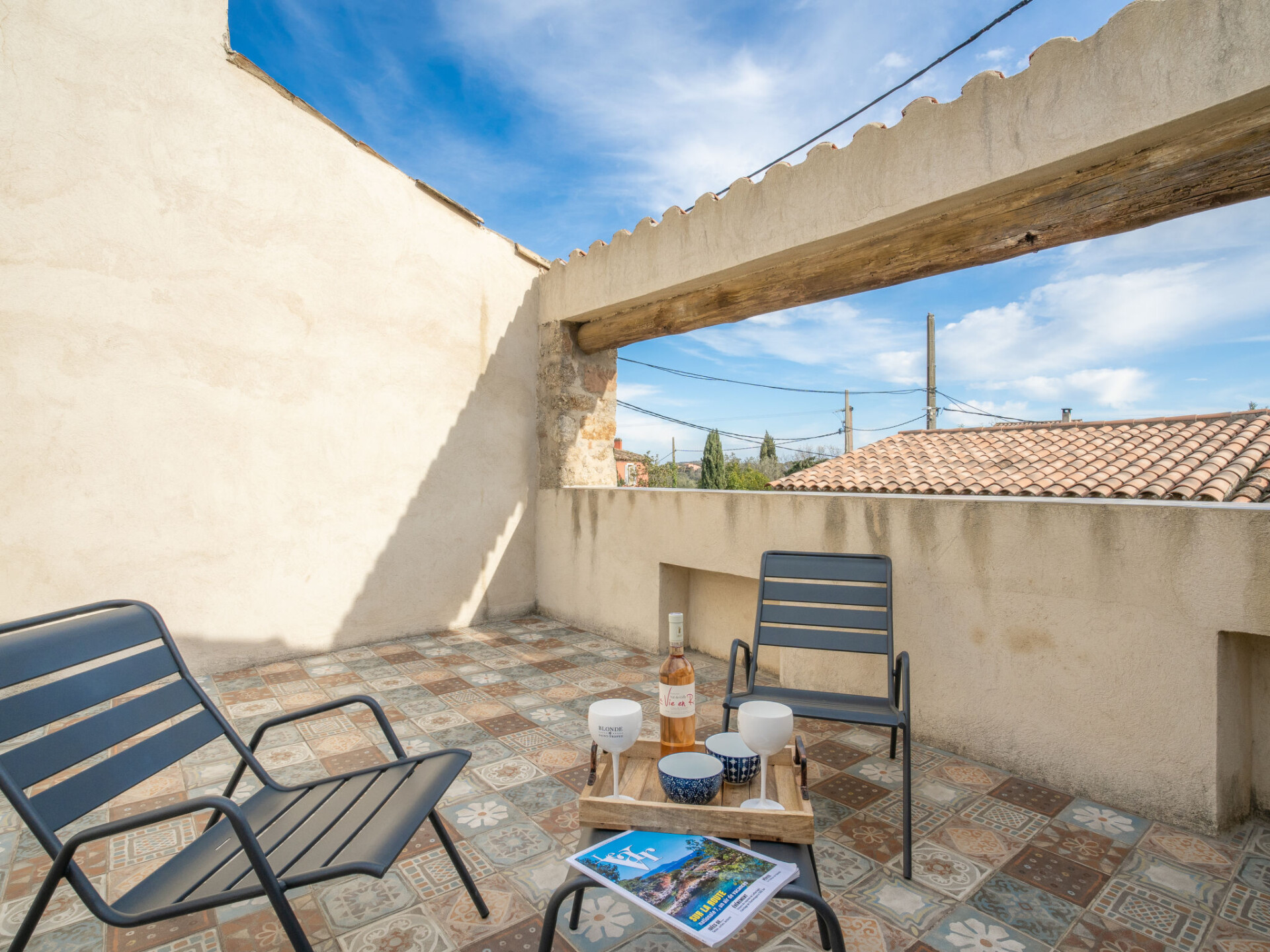 "La Petite Occitane", huis in een rij 5-kamers 220 m2 op 2 verdiepingen. Ruim, smaakvol ingericht: woonkamer met TV. 1 kamer met 1 2-pers bed (160 cm, lengte 200 cm), douche/WC. Open keuken (oven, afwasmachine, 3 inductiekookplaten, broodrooster, waterkoker, magnetron, elektrische koffiemachine) met eethoek. Uitgang naar het terras. Aparte WC. Bovenverdieping: 1 kamer met 1 2-pers bed (160 cm, lengte 200 cm). Uitgang naar het balkon. 1 kamer met 1 2-pers bed (160 cm, lengte 200 cm). 1 kamer met 1 2-pers bed (140 cm, lengte 190 cm). 2 douche/WC's. Elektrische verwarming, air-conditioning. Balkon 10 m2, groot terras 50 m2 gedeeltelijk overdekt. Terrasmeubelen, barbecue (verrijdbaar). Ter beschikking: wasmachine, droger. Internet (Internet (WiFi), gratis). Op 200 m. Rookvrij huis. Rookmelders. Aanbod door een particulier volgens art. 155, IV van CGI. 21XLVN