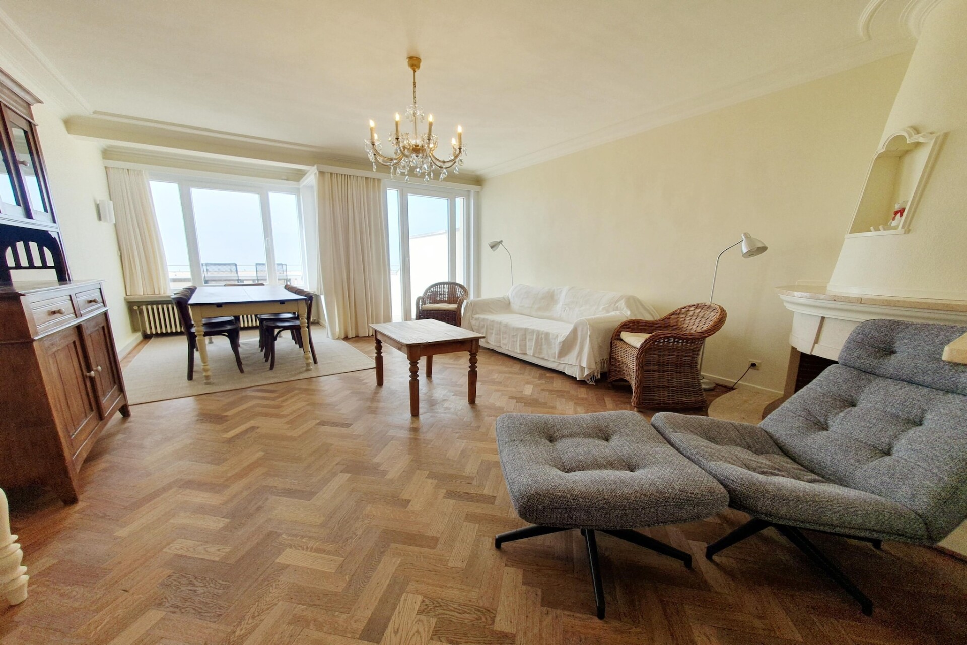 Appartement met één slaapkamer op de eerste verdieping, groot terras aan de voorzijde en frontaal uitzicht op zee.