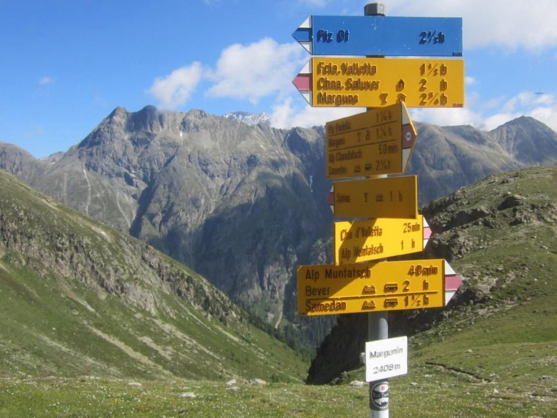 Welcome to our cosy holiday home: A dignified and personally furnished 2 1/2 room flat awaits you directly below the former Hotel Quadratscha. This exquisite holiday flat is situated in a quiet, sunny location with breathtaking panoramic views of Muottas Muragl, Bernina and Corvatsch. In the immediate vicinity you will find the railway station, bus stop, cross-country ski trail and shopping facilities - a combination that offers everything for those seeking relaxation and those looking for adventure.The interior leaves nothing to be desired: Enjoy the high standard of finish, which includes fine flagstone and parquet flooring, complete with underfloor heating throughout. The pine wood used in the kitchen and built-in cupboards creates a cosy atmosphere. The modern kitchen is well equipped with a fridge including freezer compartment, ceramic hob (induction), oven and versatile kitchen appliances such as a coffee machine (Nespresso, filter, Moka Express), hand blender, toaster and kettle, complemented by a fondue and raclette rechaud. A high-quality bathroom with bath/shower and double washbasin completes the comfortable interior.Outside, you can use the underground car park free of charge, which is particularly convenient. In addition, a large ski and bike room offers plenty of space to store your sports equipment safely and conveniently. These amenities provide additional comfort and peace of mind after an active day in the great outdoors.Samedan, a lively village in the heart of the Upper Engadine and the location of our holiday flat, spoils its visitors with a perfect blend of nature, culture and sporting activities. In addition to cultural gems such as the "La Tuor" cultural tower and the "Planta House", Samedan offers countless opportunities for hikers, mountain bikers and winter sports enthusiasts. The close proximity to an excellent network of hiking and mountain bike trails as well as golf, cross-country skiing and tobogganing makes Samedan an ideal starting point for outdoor adventures.Relax in our quiet and exclusive holiday flat, enjoy the breathtaking view of the Engadine mountains or explore the variety of leisure activities on offer. In this inspiring environment, you will find everything your heart desires to experience unforgettable moments. Welcome to Engadin, your perfect holiday destination for every season - a place where memories are made.
