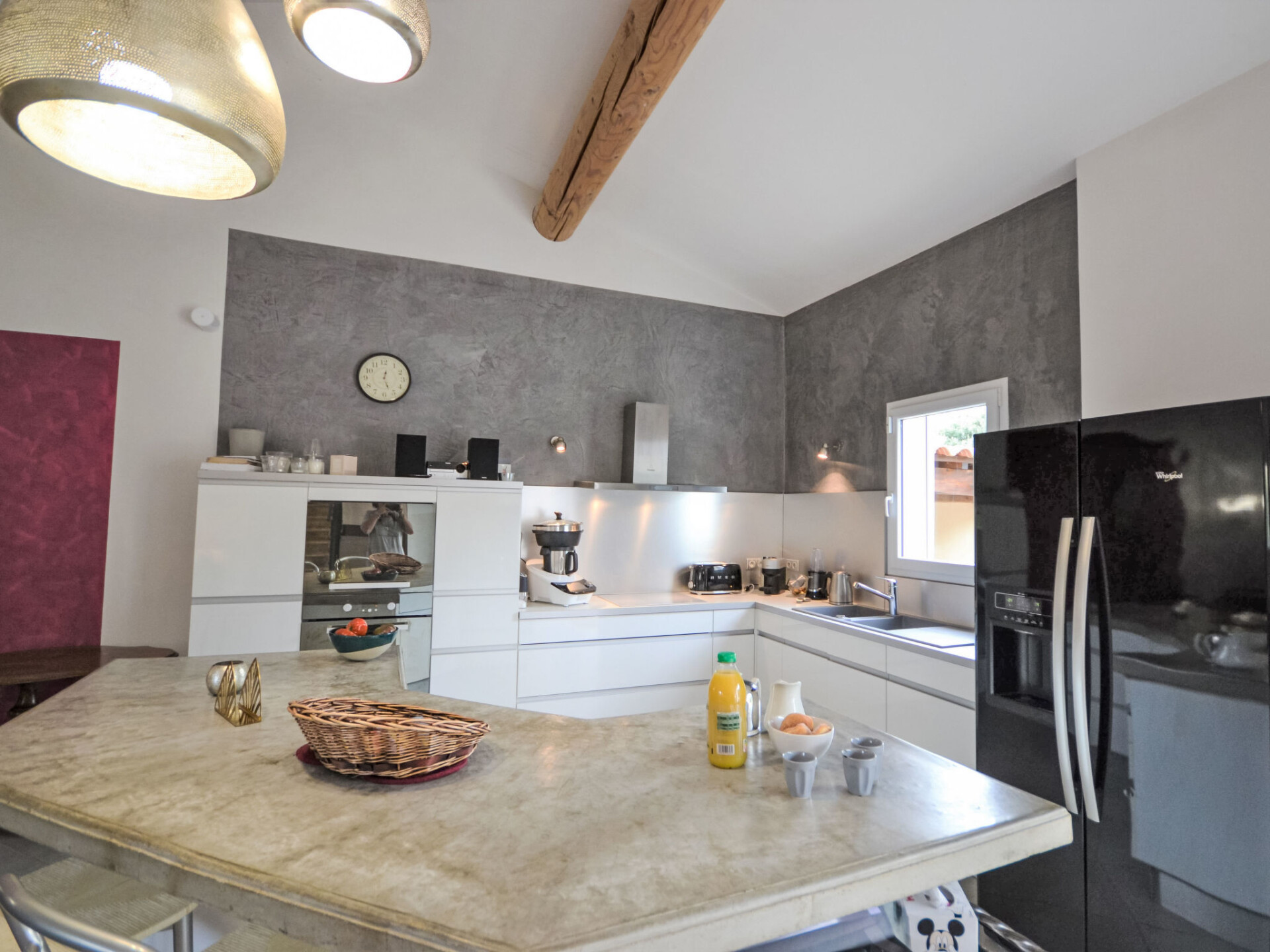 "La Romaine", huis 5-kamers op het zuiden gelegen. Ruim, mooi en smaakvol ingericht: groot woon-/eetkamer 40 m2. Uitgang naar het terras, naar het zwembad, op het zuiden. Open keuken 10 m2 (afwasmachine, 4 inductiekookplaten, broodrooster, waterkoker, magnetron, diepvriezer, elektrische koffiemachine, kookeiland). Uitgang naar het terras, naar het zwembad. Air-conditioning. Souterrain: 1 kamer met 2 bedden (90 cm, lengte 190 cm), douche/WC, dubbele wastafels, TV en Flatscreen TV. Uitgang naar de tuin. Bovenverdieping: 1 kamer met 2 bedden (90 cm, lengte 190 cm), bad, aparte WC, bad/douche en dubbele wastafels. 2 kamers, elke kamer heeft 1 2-pers bed (1 x 160 cm, lengte 190 cm). Terras 8 m2, op het westen gelegen, groot terras 30 m2, op het zuiden gelegen. Terrasmeubelen, elektrische barbecue, ligstoelen (8), zitgelegenheid. Ter beschikking: wasmachine, droger, kinderstoel, kinderbed, haardroger. Internet (WiFi, gratis). Parkeerplaats (omheind, 4 Auto's). Geschikt voor families eén tweepersoonskamer is buiten het appartement. Maximaal 1 huisdier/hond toegestaan. Rookmelders. Aanbod door een particulier volgens art. 155, IV van CGI.