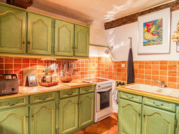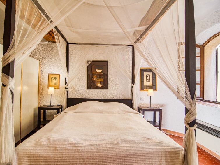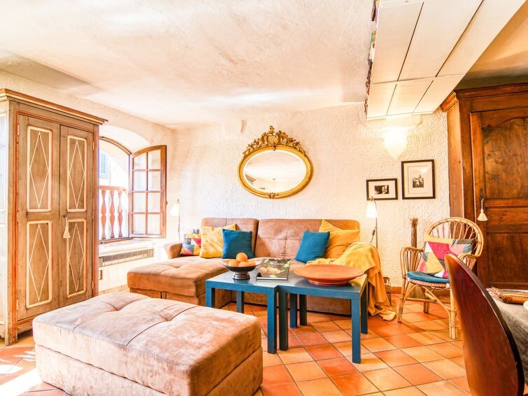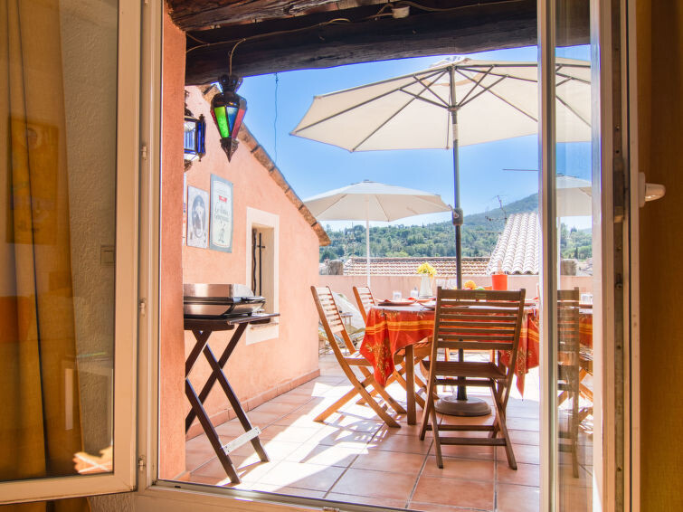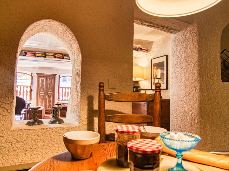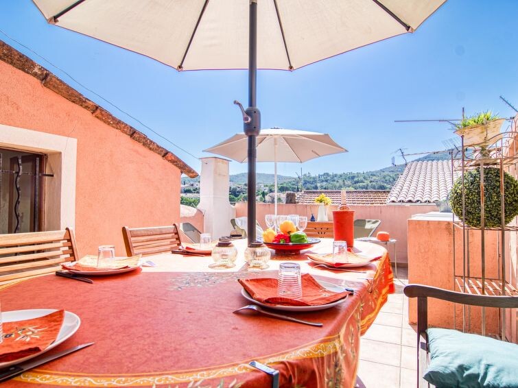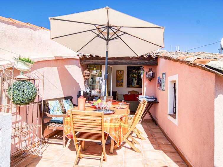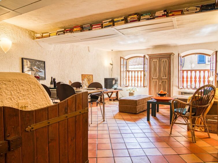 "La Roq", huis in een rij 4-kamers 150 m2 op 4 verdiepingen. Gerenoveerd in 2009, comfortabel en rustiek ingericht: 1 kamer met 2 bedden (90 cm, lengte 200 cm), aparte WC en douche. Bovenverdieping: 1 kamer met 1 2-pers bed (160 cm, lengte 200 cm), bad, aparte WC en dubbele wastafels. 2e Verdieping: woon-/eetkamer met 1 divanbed (160 cm, lengte 200 cm), TV en elektrische verwarming. Keuken (oven, afwasmachine, 4 keramische glas kookplaten, broodrooster, waterkoker, elektrische koffiemachine) met eettafel. 3e Verdieping: salon met 1 divanbed (120 cm, lengte 185 cm). Uitgang naar het terras. Groot terras 40 m2. Terrasmeubelen. Ter beschikking: wasmachine, strijkijzer, kinderbed. Internet (Internet (WiFi), gratis). Rookvrij huis, geen parkeerplaats. Rookmelders. 831070007173W