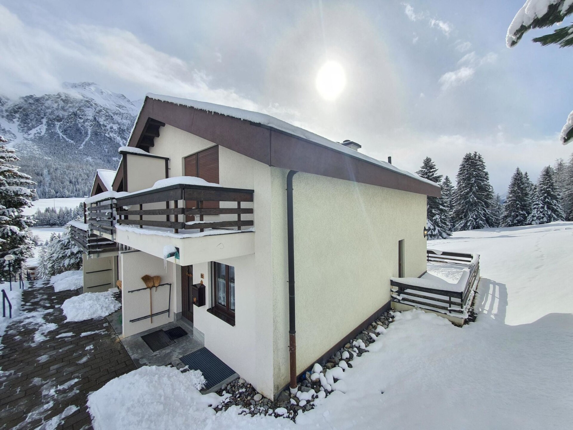 120 m2. Meer informatie beschikbaar bij de aanbieder: Calm location on southern village limits, near Crestas lift, with unobstructed view of the Alps. A few minutes walk to the village centre. Comfortable 3-storey corner house, huge sun deck, surrounded by greenery, children's playground.