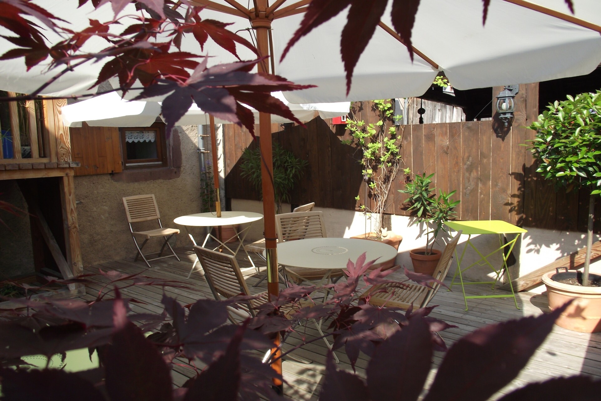 Op het gedeelde terras kan je de dag afsluiten met een goed glas wijn. De eigenaresse zal je voorzien van allerlei leuke tips voor in de omgeving.