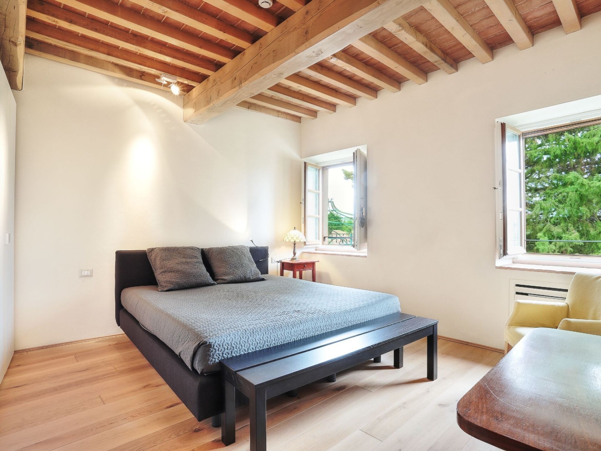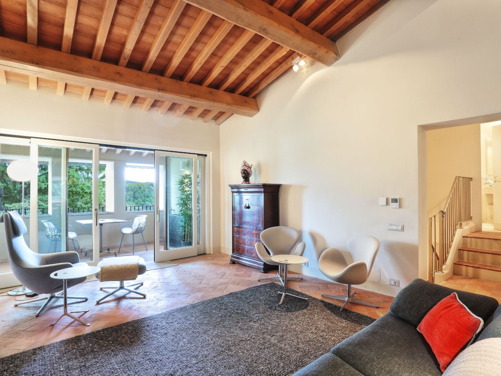 Beautiful and bright flat situated in the centre of the ancient medieval village of Castelfalfi, inside the Toscana Resort Castelfalfi.Castelfalfi is located in the heart of Tuscany, among hills and vineyards, and is an ideal place to relax and to visit cities of historical and artistic interest such as Florence, Pisa, Siena, San Gimignano and Volterra. A few metres from the flat are restaurants, shops and a beautiful public garden.The flat of approx. 100 sqm, located within an ancient building completely renovated a few years ago, consists on the first floor of an entrance hall, two double bedrooms, two bathrooms with shower, sink, toilet and bidet, as well as two hallways and storage room under the stairs with washing machine. The internal staircase leads to the second floor where there is a third bathroom, with shower, toilet and washbasin, and a large living area with kitchen and living room from which, through a glass door, there is access to a covered loggia with a view of the beautiful Tuscan hills and the swimming pool. The flat is furnished with modern taste and quality furnishings. The house is equipped with wi-fi, air conditioning, heating, mosquito nets, TV and a fully equipped kitchen with oven (microwave also works), fridge and dishwasher.Guests have access to the communal swimming pool measuring 11 x 5 metres, 1.5 metres deep, surrounded by an area with parasols and sun loungers. The house has two parking spaces, one covered and one uncovered, in the car park about 300 metres away. IT048027B47GV8IYJG