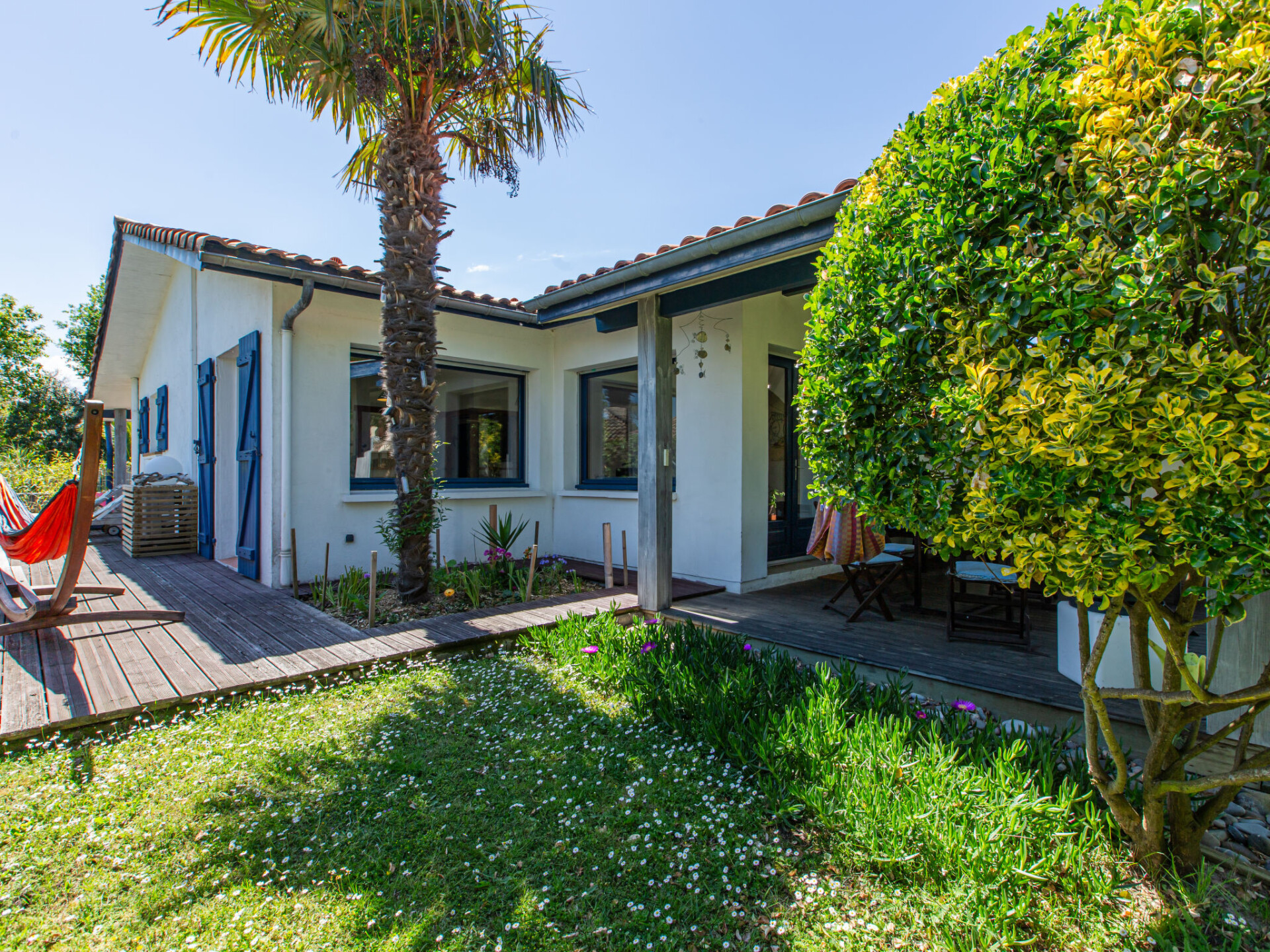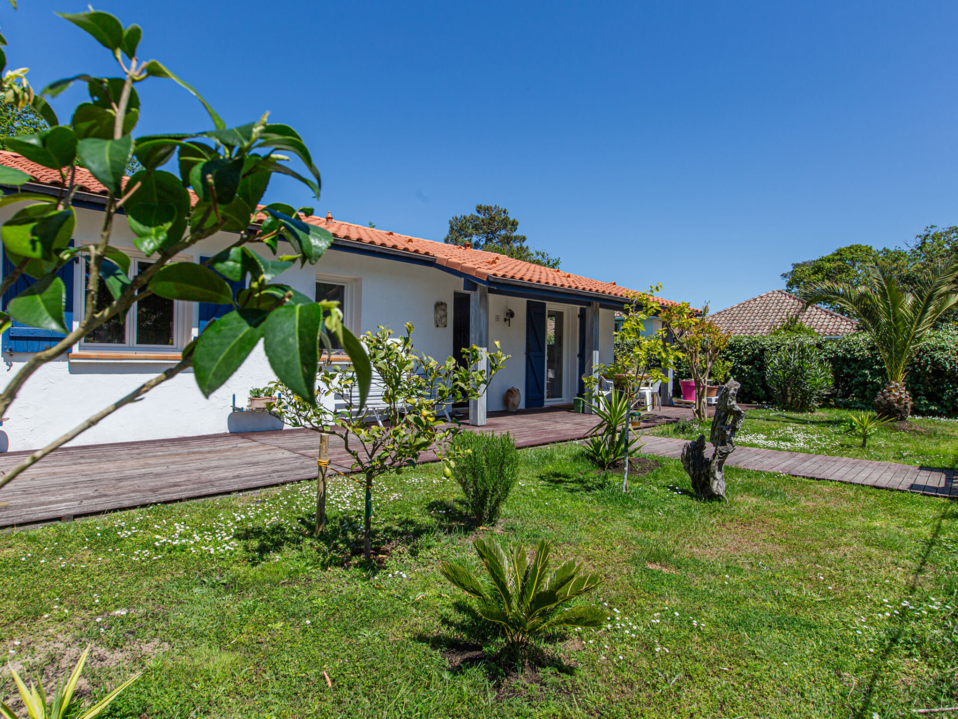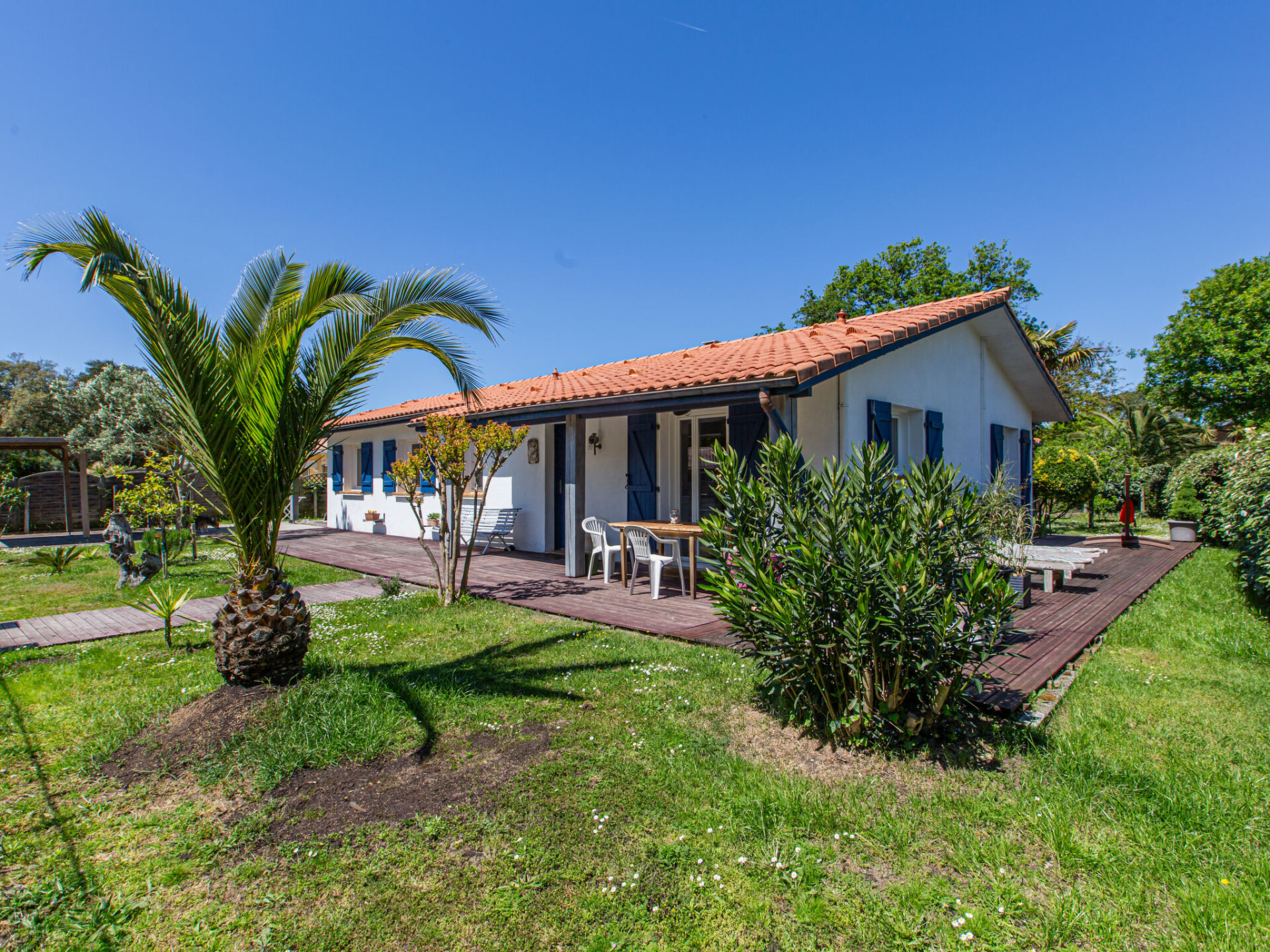 Huis 4-kamers 130 m2. Ruim en licht, comfortabel en mooi ingericht: groot woon-/eetkamer met eettafel en TV (Flatscreen TV). Uitgang naar het terras. 2 kamers, elke kamer heeft 1 2-pers bed (160 cm, lengte 190 cm). 1 kamer met 1 2-pers bed (160 cm, lengte 200 cm). Uitgang naar de tuin. Open keuken (oven, afwasmachine, 4 keramische glas kookplaten, broodrooster, waterkoker, magnetron, diepvriezer, elektrische koffiemachine). Douche/WC, aparte WC, dubbele wastafels. Air-conditioning, heteluchtverwarming. Groot terras 20 m2, overdekt. Terrasmeubelen, elektrische barbecue, ligstoelen (2). Ter beschikking: wasmachine, strijkijzer, kinderbed, haardroger. Internet (Internet (WiFi), gratis). Rookvrij huis. Rookmelders. Aanbod door een particulier volgens art. 155, IV van CGI. 40133000123DS