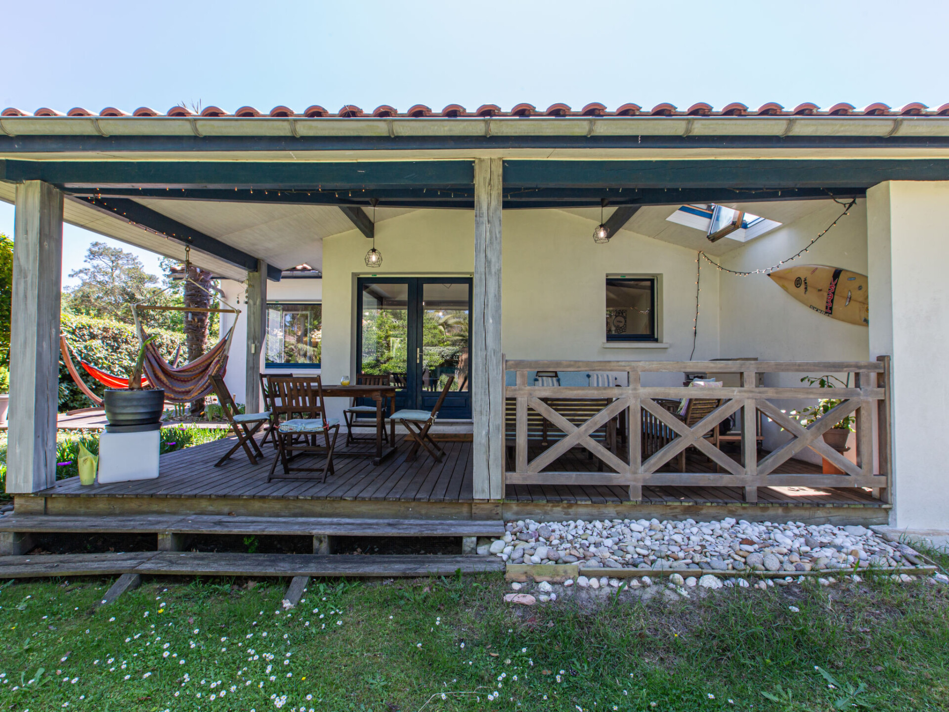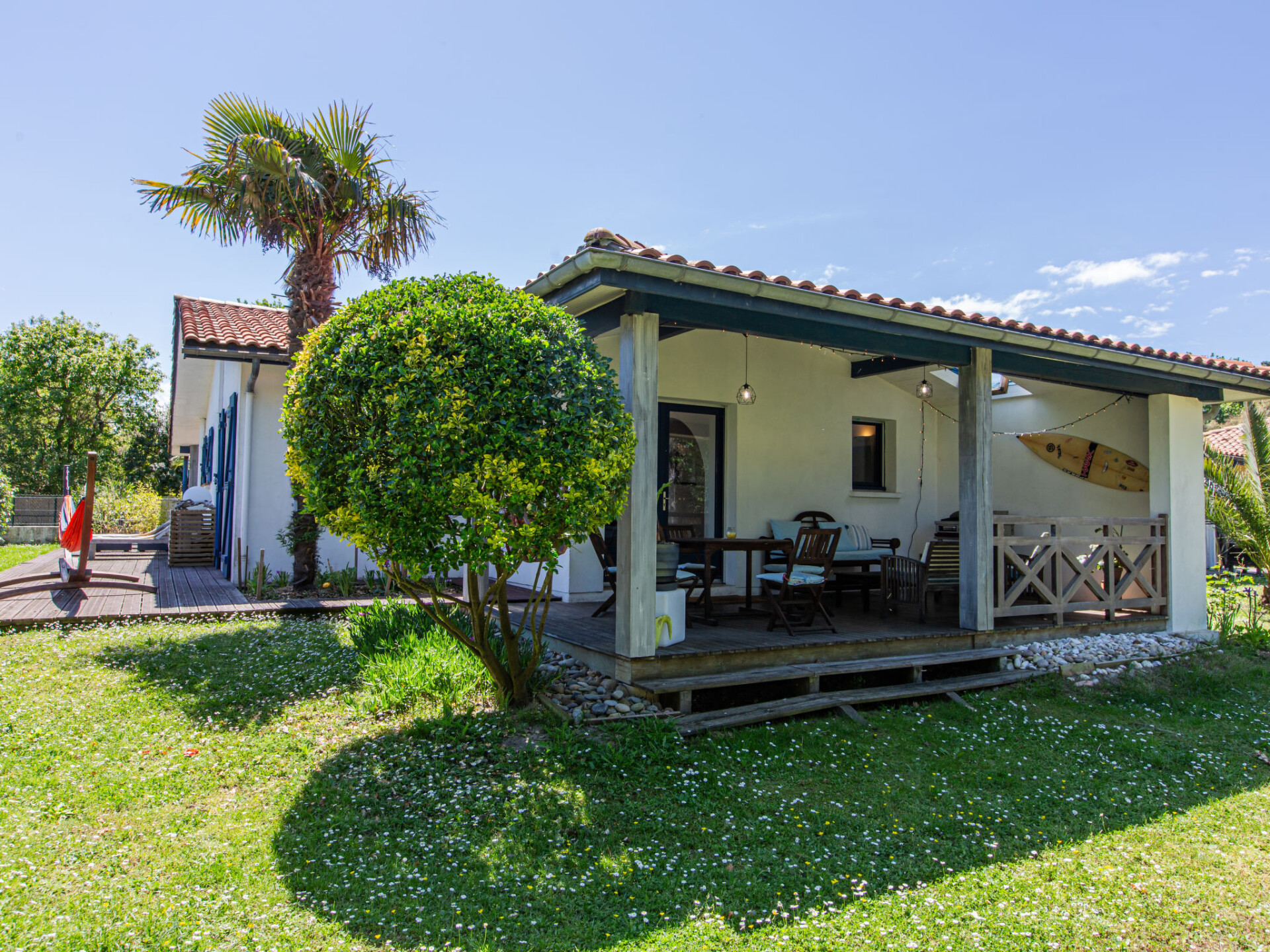 Mooi huis "Labenne Océan 974". In het centrum van Labenne-Océan, 3 km van het centrum van Labenne-Bourg, 23 km van het centrum van Biarritz, villa wijk, 800 m van zee, aan een doodlopende weg. Voor alleengebruik: terrein 1.000 m2 (omheind) met gazon. In het huis: hot tub. Parkeerplaats (voor 2 auto's) bij het huis op het terrein. Carport. Winkel 300 m, supermarkt 3 km, bushalte "Labenne-Charles de Gaulle" 3 km, zandstrand "Labenne-Océan" 800 m. Golfterrein (18 holes) 10 km, surfschool 900 m, fietspad 150 m. Attracties in de buurt: Zoo Labenne 2 km, Capbreton 9 km, Hossegor 11 km, Seignosse 15 km, Espagne 45 km, Présence de 2 chats sur le terrain. Op het grondstuk dierhouderij.