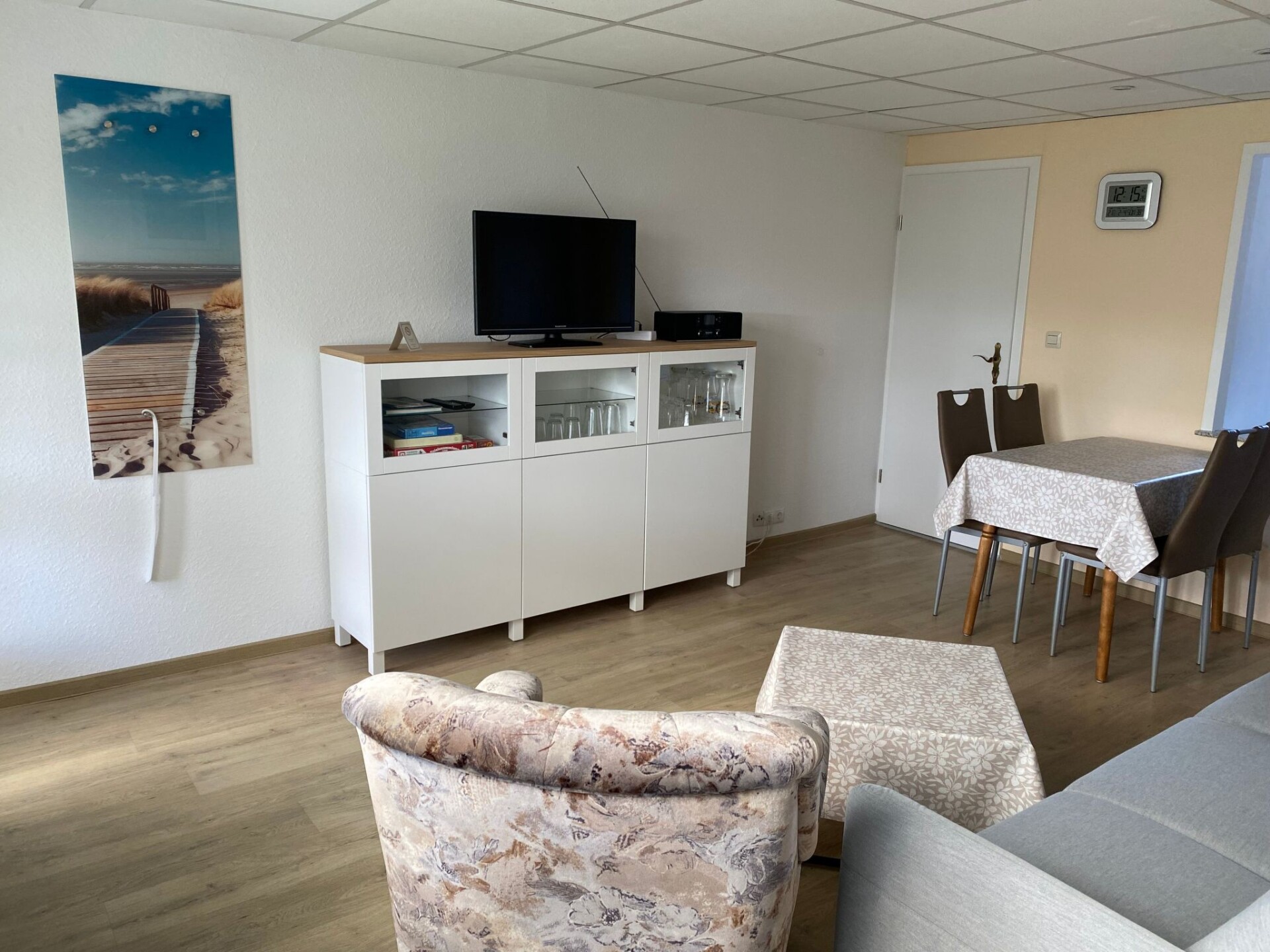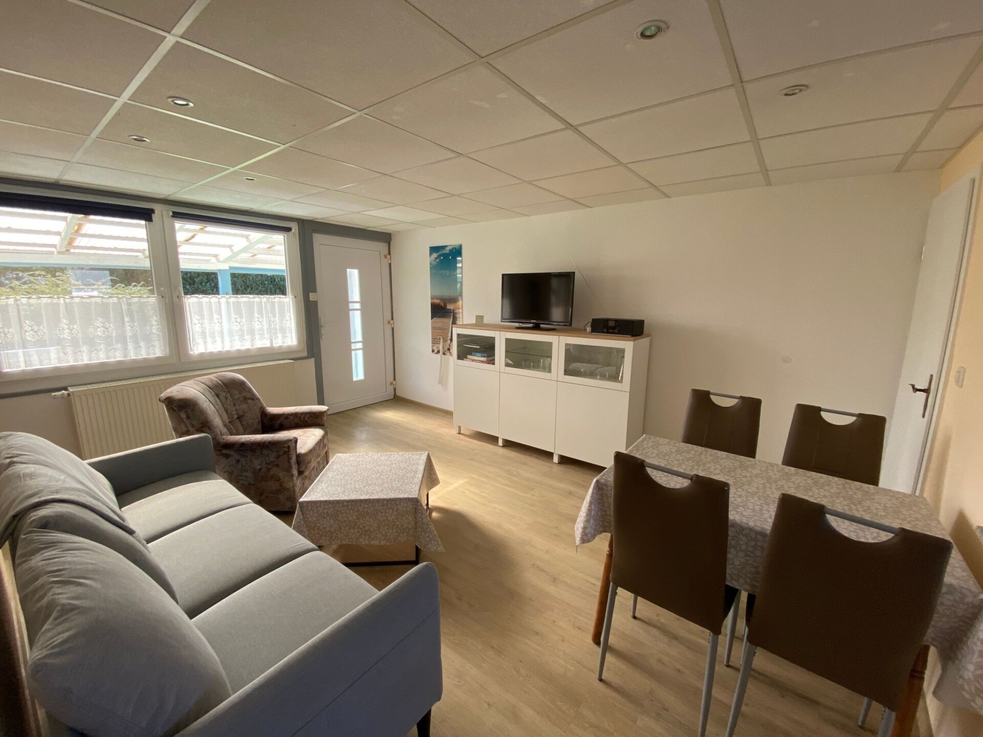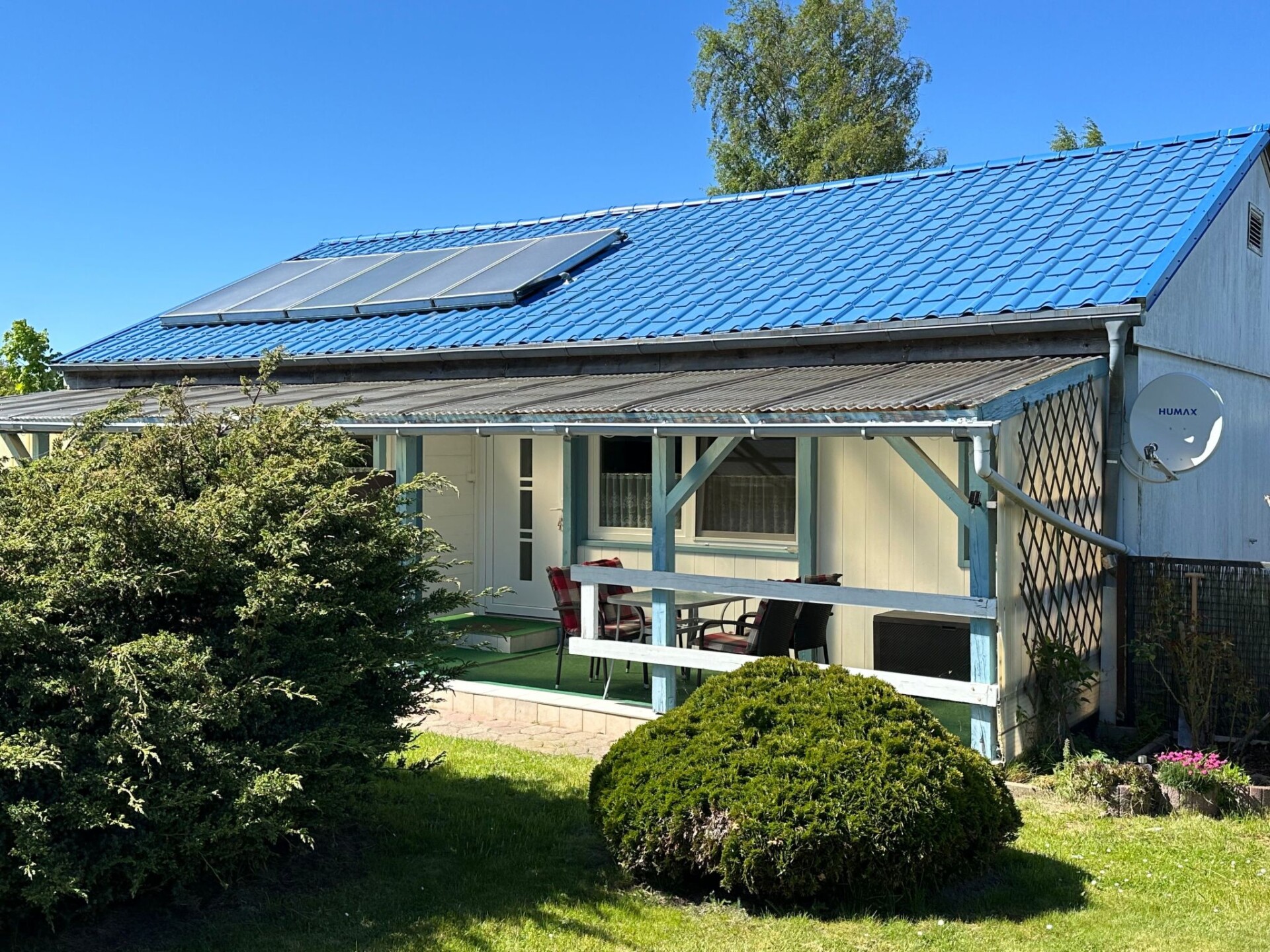 Welcome to this charming holiday home in Loissin on the picturesque Baltic Sea coast, a perfect retreat for anyone who loves peace and nature. Just a few steps away from the Greifswald Bodden and the idyllic natural beach, this detached holiday home for up to 4 people and a dog offers an ideal base for water sports enthusiasts, anglers and those seeking relaxation. The well-equipped accommodation, surrounded by the peaceful atmosphere of a bungalow estate, promises an unforgettable stay in the Gahlkow/Loissin region.Inside the cosy double bungalow you will find everything you need for a comfortable stay. Accommodation is provided in two bedrooms, coupled with a practical bathroom with shower. The kitchen equipment also leaves nothing to be desired: A ceramic hob and a filter coffee machine are available for preparing meals and refreshing coffee. In addition, the modern, solar-assisted heating system ensures that the house is a cosy and warm home all year round.The outdoor area of this holiday home invites you to linger with its covered terrace. Equipped with a table and four chairs, it offers the ideal place for shared meals or relaxing hours outdoors. The approx. 600 m², fully fenced property is shared and is therefore perfect for guests with an animal companion. There is also a car parking space for your convenience.The surrounding area of Loissin has something for every guest, whether you are looking for relaxation or adventure. A dog beach awaits you and your four-legged friend just 70 metres away, while a grocery store is within easy reach around 1300 metres away. For water sports enthusiasts, the nearby surf school offers courses for beginners. The central location of the holiday home also allows for easy excursions to the islands of Rügen and Usedom as well as to the famous imperial spas.Surrounded by peaceful nature and yet close to exciting leisure activities, this holiday home in Loissin is the perfect place for your next holiday. Experience unforgettable days on the Baltic Sea coast, enjoy the hospitality and discover the numerous treasures of this area. Whether it's walks on the beach, bike tours through the countryside or exciting water sports - here you will find everything you need for a fulfilling holiday.
