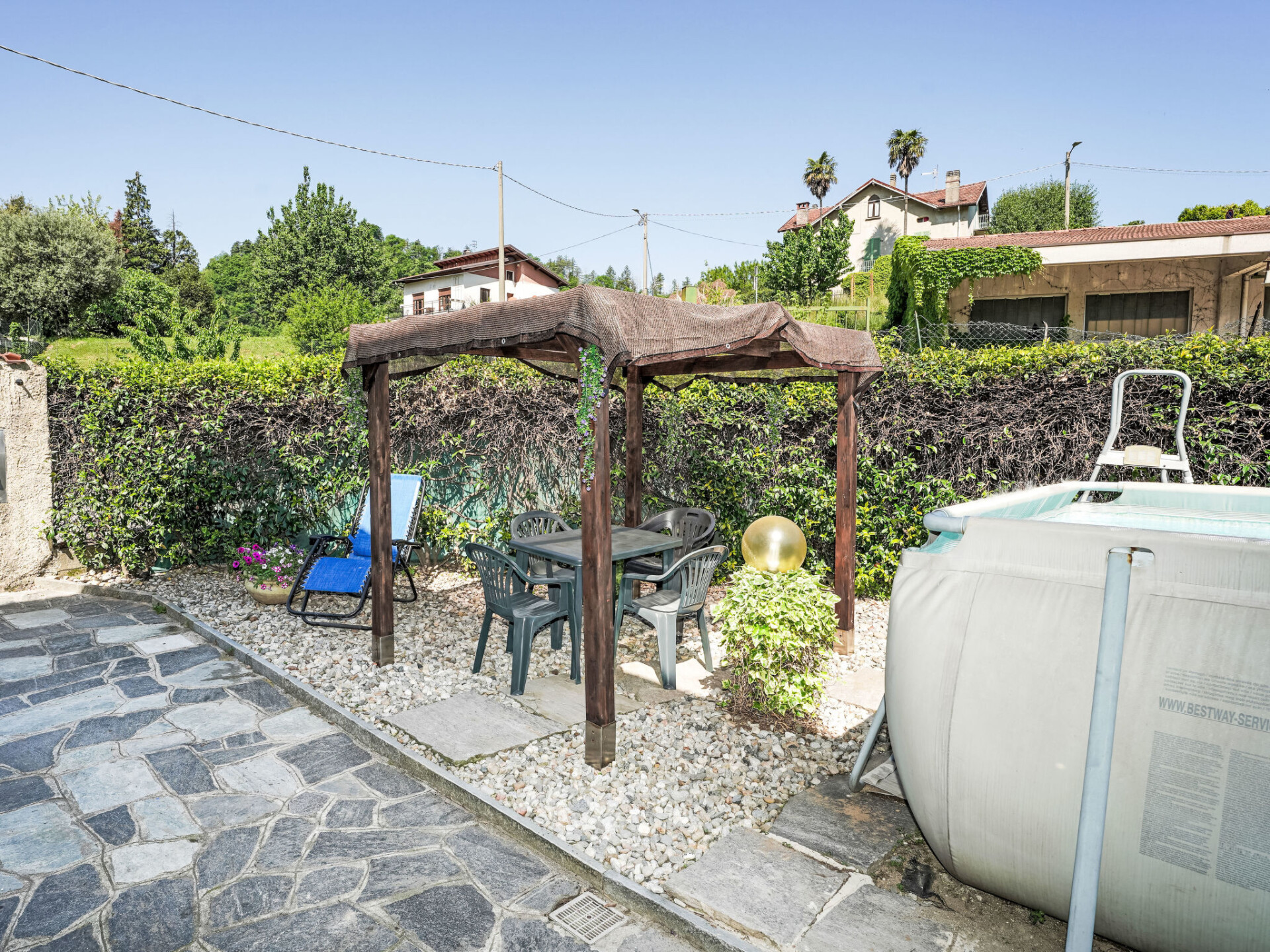 Huis met 2 woningen van 2 verdiepingen. 1 km van het centrum van Caldè, 1 km van het meer. Voor medegebruik: terrein (omheind), openluchtzwembad (verhoogd) (5 x 2 m, 120 cm diepte, seizoensgebonden beschikbaarheid: 01.Mei. - 30.Sep.). Tuinmeubelen, openbare parkeerplaatsen 50 m. Supermarkt, restaurant, bar, bushalte 500 m. Attracties in de buurt: Laveno 7 km. Wandelgebied Sant'Antonio 5 km. Auto noodzakelijk. De eigenaar woont op hetzelfde terrein. De eigenaar heeft een hond.