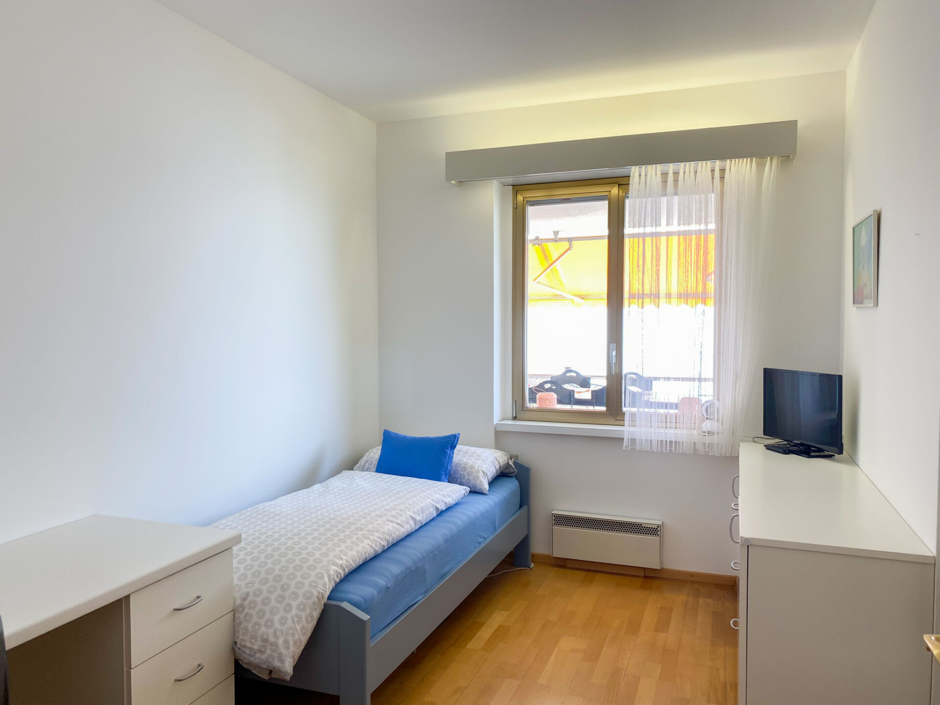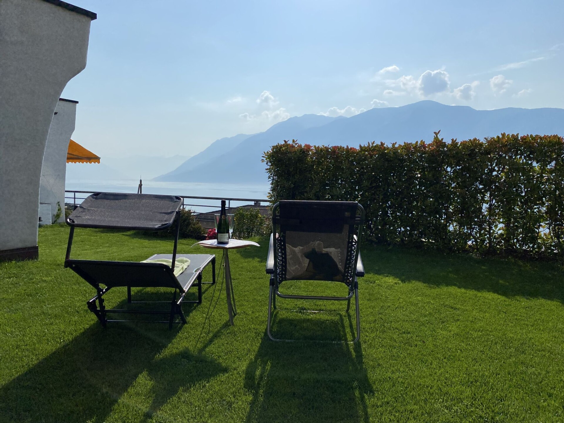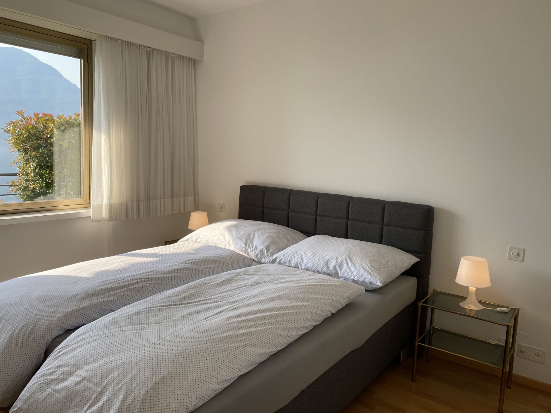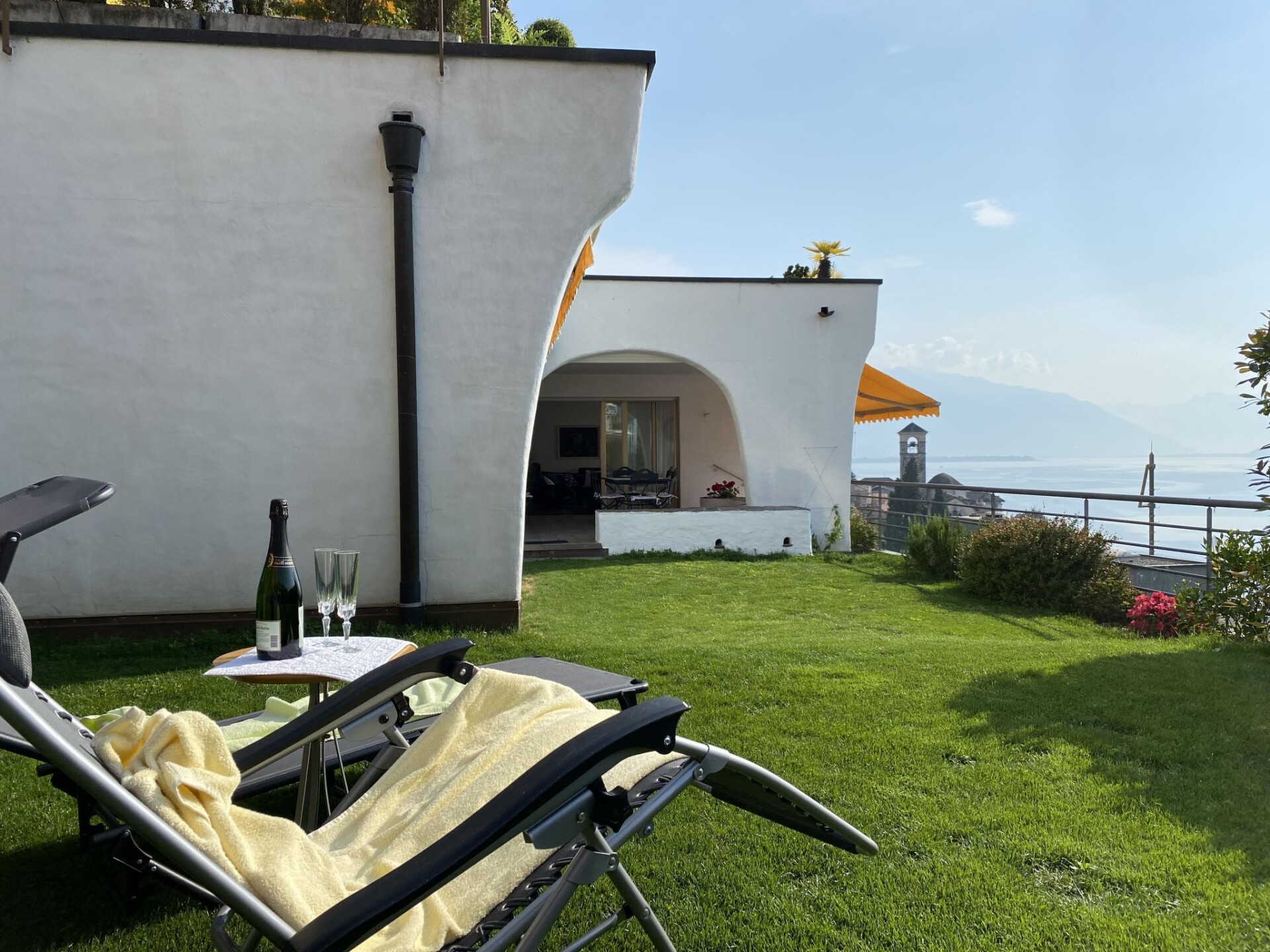 "Lakeview", appartement 4-kamers 160 m2, op het zuidwesten gelegen. Ruim en licht, comfortabel en gezellig ingericht: groot, open woon-/eetkamer met panoramavenster met Kabel-TV en internationale TV-zenders (Flatscreen TV). Uitgang naar het terras. 1 kamer met 1 bed (90 cm, lengte 200 cm), Kabel-TV (Flatscreen TV). 1 2-pers. kamer met 1 2-pers bed (160 cm, lengte 200 cm). 1 2-pers. kamer met 1 2-pers bed (2 x 80 cm, lengte 200 cm), douche/bidet/WC en hot tub. Keuken (oven, afwasmachine, 4 keramische glas kookplaten, broodrooster, waterkoker, magnetron, elektrische koffiemachine, pads voor de koffiemachine (Nespresso) extra, raclette oven, fondue Set (chinese, kaas)). Uitgang naar het terras. Bad/WC, aparte WC. Groot terras gedeeltelijk overdekt, zithoek in de tuin. Terrasmeubelen, ligstoelen (5). Mooi panoramazicht op het meer, de bergen en het landschap. Ter beschikking: wasmachine, droger, strijkijzer, kinderstoel, kinderbed tot 2 jaar (extra), haardroger. Internet (WiFi, gratis). Parkeerplaats nr. 1 (overdekt). Niet rokers woning. NL-00005856