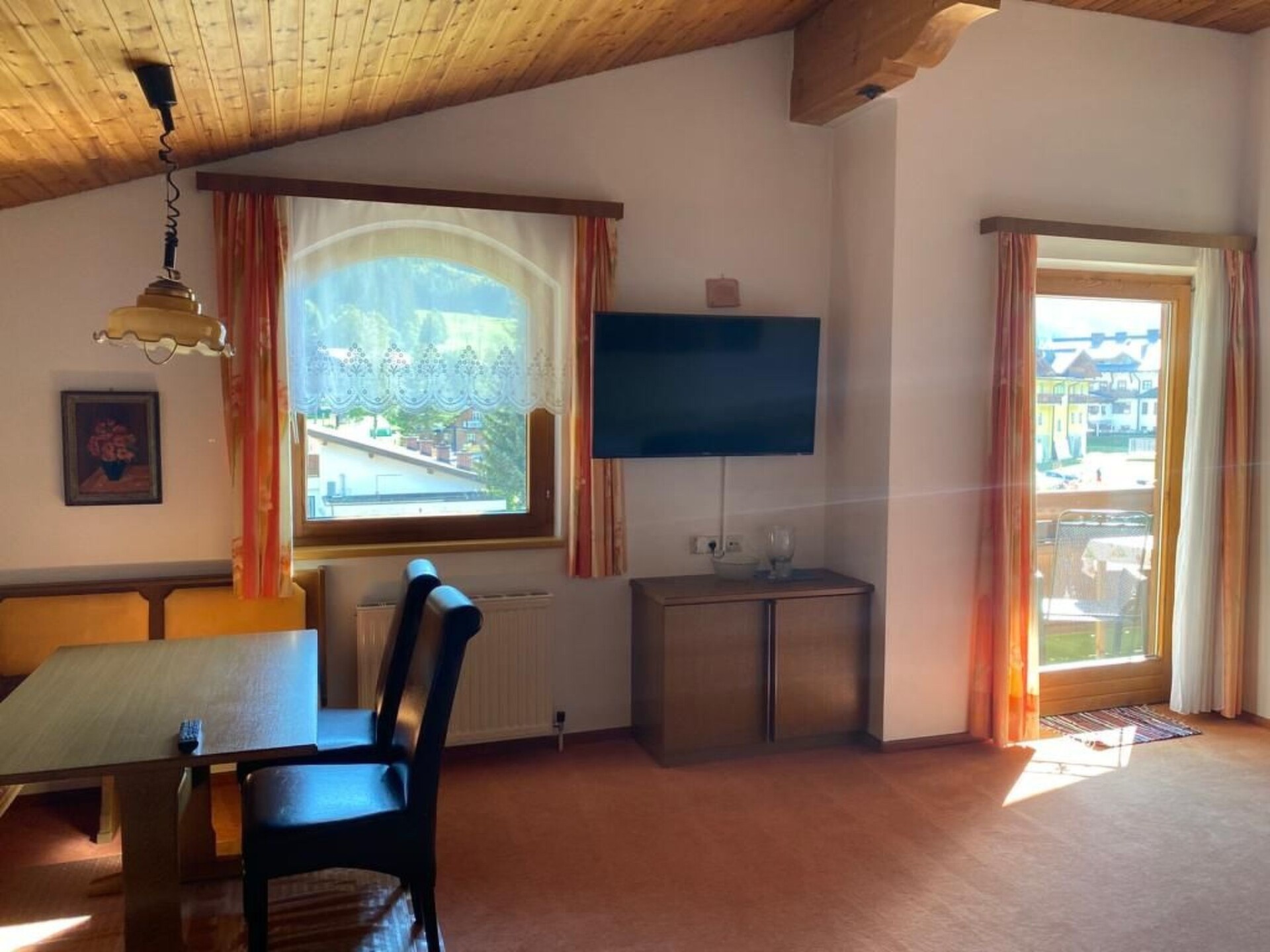 Dit prachtige vakantiehuis met drie appartementen ligt midden in het dorp Filzmoos en belooft toch absolute rust en ontspanning. Twee appartementen hebben directe toegang tot de tuin, waar zich ligstoelen, tuinmeubelen, parasol en een barbecue bevinden. Voor de kleine gasten is er een zandbak, kinderschommel, tafeltennistafel en veel plaats om te spelen. Het Landhuis Jäger heeft drie grote appartementen, elk met 65m² leefruimte. Elk appartement heeft twee slaapkamers (tweepersoonsbedden en ook eenpersoonsbedden). Eén appartement heeft twee tweepersoonsbedden en nog een stapelbed. Zo is het dus geschikt voor 3-4 kinderen. De keuken is zeer goed uitgerust. Vaatwasser, magnetron, elektrisch fornuis met vier platen, oven en koelkast met vriesvak. Bovendien hebben de appartementen een eethoek, een woonlandschap (uittrekbare bank) en een voorkamer. In de badkamer bevindt zich een douche en wastafel. Het toilet is separaat. Voor peuters is er op aanvraag ook een kinderbedje beschikbaar. Alle appartementen hebben een flatscreen-tv. (Kabel) en kosteloos internet WiFi. Het landhuis Jäger ligt zeer centraal in Filzmoos. Winkels, skischolen, skiliften zijn vlakbij. In de zomer is het een ideaal startpunt voor vele mooie wandel-en bergtochten, een tennisbaan en een minigolfbaan bevinden zich direct voor het huis. Eén appartement heeft een groot balkon op het zuiden en is gelegen op de eerste verdieping. Op slechts een paar meter van het landhuis vindt u een kosteloze openbare zwembad met binnen-en buitenzwembaden evenals een sauna. Voor uw auto hebben we een afgesloten parkeerplaats. Basisinformatie - Huisdieren toegestaan: geen - Accommodatietype: appartement - bevindt zich in: woonwijk - type woning: souterrain - type gebouw: meergezinshuis - verdieping waarop het object zich bevindt: begane grond - totaal aantal verdiepingen in het gebouw boven de begane grond: 1 - laatste uitgebreide renovatie: 2016 - bescherming tegen inkijk - huiseigenaar woont op het perceel - geen jeugdgroepen - niet-rokers - meter boven de zeespiegel: 1050 - aantal slaapkamers: 2 - aantal badkamers: 1 Top eigenschappen - wifi - airconditioning: geen - verwarming: overal - vloerverwarming: geen - balkon - tuin: voor alleengebruik - privéparkeerplaatsen in totaal: 4 - ㄴ daarvan parkeerplaatsen in garage: geen - ㄴ daarvan parkeerplaatsen in carport: geen - ㄴ daarvan privéparkeerplaatsen buiten: 4 Slapen slaapkamer 3 - tweepersoonsbed (1.80 m breed) - extra bed - 2x kinder-/babybed slaapkamer 6 - tweepersoonsbed (1.80 m breed) - stapelbed Badkamer badkamer 3 - douche - wastafel sanitaire voorzieningen in de vakantieaccommodatie - douche - toilet - föhn Koken/Wonen - koffiezetapparaat: filterkoffiezetapparaat, koffiezetapparaat, koffiezetapparaat met capsules - koelkast/vriezer: diepvriesvak, diepvrieskast, koelkast - kookplaat: keramische kookplaat, elektrische kookplaat, kookplaat - afzuigkap - oven - Mini-oven - broodrooster - magnetron - waterkoker - vaatwasser - theedoeken - oppervlakte keuken: 15 m² - aantal eettafels: 1 - maximaal aantal zitplaatsen: 6 - aantal woonkamers: 1 - zonwering voor woonkamer Entertainment - televisie: tv, antenne/DVB-T tv, kabel-tv, satelliet-tv - Smart tv - muziekinstallatie - radio Voor kinderen - kinderstoel - stopcontact beschermer - speeltoestellen - speelplein in de tuin Huishouden - wasmachine: voor gemeenschappelijk gebruik in het gebouw - wasdroger: voor gemeenschappelijk gebruik in het gebouw - wasrek - strijkijzer - stofzuiger - schoonmaakmiddelen Duurzame accommodaties - Recycling van afval - Organisch afval beschikbaar - glasrecycling beschikbaar - papierrecycling beschikbaar - plastic recycling beschikbaar - Laadstation voor elektrische auto's - Isolatie van het huis - natuurlijke duurzame isolatiematerialen - geïsoleerd dak - geïsoleerde gevel - energiebesparende ramen - systeem voor gebruik van regenwater Buitenbereik - veranda - dakterras - outdoor meubilair - barbecue: barbecue - overdekte fietsenstalling - overdekte en afsluitbare fietsenstalling Omgeving - uitzicht: , tuin, bos, weide, berg - direct aan de bosrand - dichtstbijzijnde centrum van een plaats: 100 m - levensmiddelenzaak: 200 m - uitgaansgelegenheid: 100 m - restaurant: 50 m - station: 10,0 km - vliegveld: 65,0 km - snelweg: 11,0 km - afstand openbaar vervoer: 100 m - rivier: 100 m - openbaar zwembad: 100 m - fietsverhuur: 100 m - fietspad (toeristisch): 300,0 km - wandelpad: 300,0 km - mogelijkheid om paard te rijden: 100 m - ski - afstand tot skipiste: 100 m - afstand tot skischool: 100 m - afstand tot langlaufloipe: 100 m - afstand tot skibus: 100 m - bergbaan: 100 m