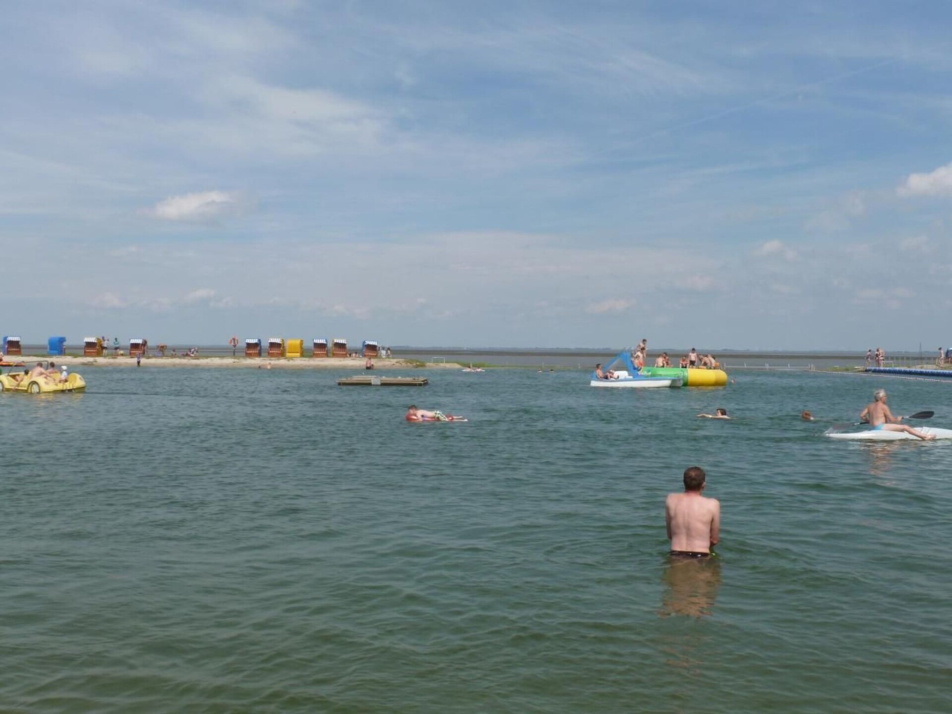 Discover the newly renovated Landhaus Markus, an idyllic holiday farm on the picturesque Jade Bay south of the North Sea. After a comprehensive renovation in 2012, our holiday farm is the perfect holiday destination for families with children, anglers, cyclists and older guests. Our 85sqm holiday flat impresses with its careful and loving furnishings. It is at ground level and completely barrier-free, so that both young and old guests with disabilities are very welcome here. The flat offers a comfortable eat-in kitchen with a modern fitted kitchen, which has a dishwasher, microwave and all the necessary kitchen utensils. The cosy brown fabric sofa and an armchair in the living area invite you to relax, while the white country-style bedroom with a large wardrobe and mirror promises pure relaxation. Another bedroom with a bunk bed and single bed as well as a wardrobe and desk is ideal for children.The large garden of our holiday farm is a paradise for our little guests. With a trampoline, various play vehicles and football goals, there is plenty to discover and experience. Meanwhile, parents can relax on the sun lounger, round off the day with a cosy barbecue or watch the sunset. Located right next to the house, there's also a dyke for keen anglers.Numerous attractive excursion destinations await you in the neighbourhood of Landhaus Markus. From our holiday flats, you can easily reach the North Sea resort of Dangast, Bremerhaven with the Climate House and the Emigration Centre as well as the Zoo by the Sea. In addition to the many maritime experiences, you can also discover the rare "floating moor" of Sehestedt or take a trip to the seal banks. For active holidaymakers, there is the nearby Weser cycle path and the opportunity to go on mudflat hikes, which provide an insight into the fascinating world of the Wadden Sea.Let yourself be enchanted by the charm of our Landhaus Markus holiday farm and experience unforgettable days by the North Sea. Here, where hospitality is a top priority, you will find the ideal retreat for those seeking relaxation, adventure and nature enthusiasts. We look forward to welcoming you as our guests and sending you our best North Sea greetings. Experience a pure holiday for the whole family at Landhaus Markus - your home away from home.