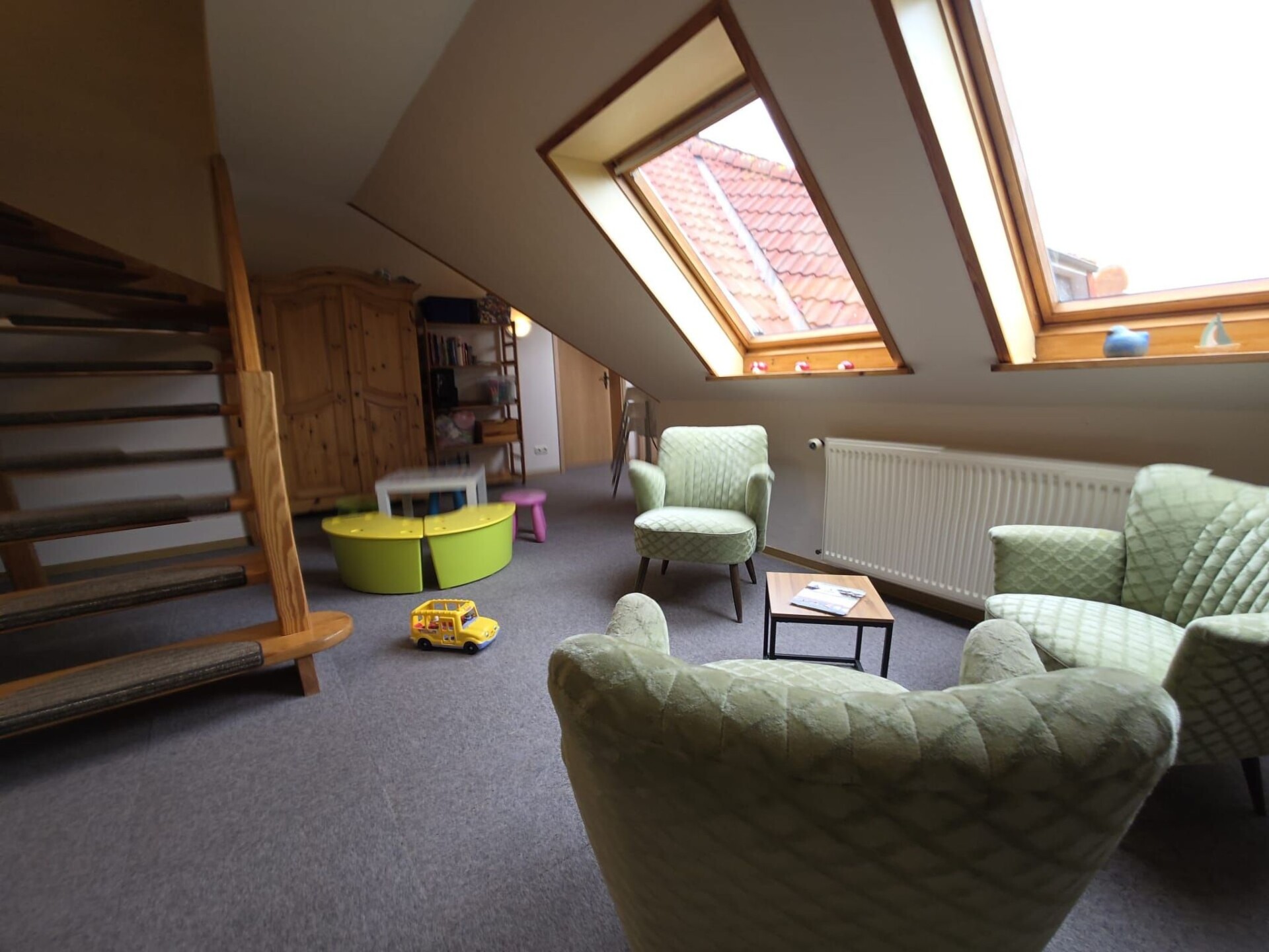 At Ferienhaus Landskron in Friederikensiel, you will stay in a family-friendly holiday flat for up to four people. The holiday home is situated on an extensive plot in a very quiet location directly on the old summer dyke. The large play and sunbathing lawn with numerous children's play equipment is equally popular with our holiday guests and their children. Our large children's vehicle park with go-karts, bobbycars and other children's vehicles for young and old gives the children particular pleasure. The communal terrace is equipped with garden furniture and offers the opportunity to socialise, barbecue and relax. A charcoal barbecue is also available here.There are plenty of parking spaces right next to the house.Our house has central heating. For our holiday guests we offer a washing machine and a tumble dryer for shared use.You will stay in a comfortably furnished, approx. 60 square metre, barrier-free 3-room holiday flat on the 1st floor. The centre of the flat is a spacious living area with an open-plan kitchen and dining area for four people. Here you will also find cable TV and a DVD player. Highchairs for children are available if required.The well-equipped kitchen includes:- Oven- Glass ceramic hob with 4 hobs- Refrigerator with freezer compartment- Dishwasher- Microwave oven- Coffee machine- electric kettle- ToasterTwo bedrooms, each with a double bed and wardrobe, complete the non-smoking flat. On request, we can equip one bedroom with a cot and changing table.The bathroom has a shower, washbasin and WC.Friederikensiel is a small village, 11 km from Schillig and 6 km from Carolinensiel. In Carolinensiel you will find numerous shopping facilities, restaurants and tourist attractions such as the museum harbour and the Sielhafen museum. The Cliner Quelle swimming pool offers water fun even in bad weather. In neighbouring Harlesiel, you can enjoy the sandy beach and the view of the East Frisian Islands from the large terrace of the Wattkieker restaurant on the Harlesiel beach and ferry harbour.The closest restaurant to your holiday flat serves home-style cooking and is located in the neighbouring village of Mederns, 3 km away. You can also do your daily shopping in Hohenkirchen, the main town in the municipality of Wangerland, 6 km away. The large indoor playground Kinder-Spielstadt Wangerland am Wangermeer is popular here.Friederikensiel is surrounded by an extensive network of cycling and hiking trails. You can reach the popular holiday resorts of Harlesiel, Carolinensiel and Neuharlingersiel directly along the dyke to the west and Schillig if you cycle or hike to the east.In Harlesiel and Schillig there are opportunities for mudflat walks and water sports such as surfing and kitesurfing. From Harlesiel Airport you can reach the island of Wangerooge on the shortest flight route in Germany. Of course, you can also reach our neighbouring town of Wangerooge in the North Sea from Harlesiel comfortably, but depending on the tide, by ferry. So nothing stands in the way of a varied and relaxing holiday in our holiday flat.We also welcome motorcyclists.