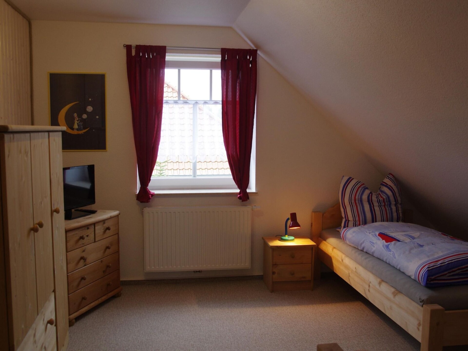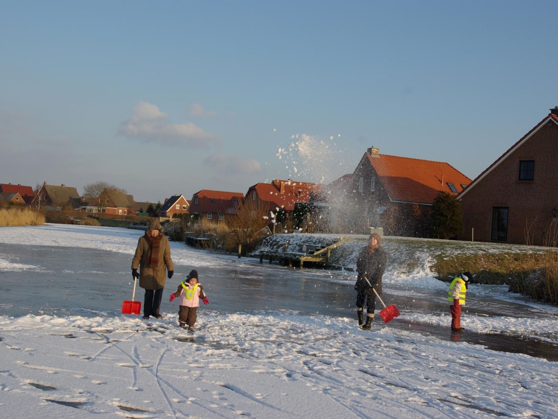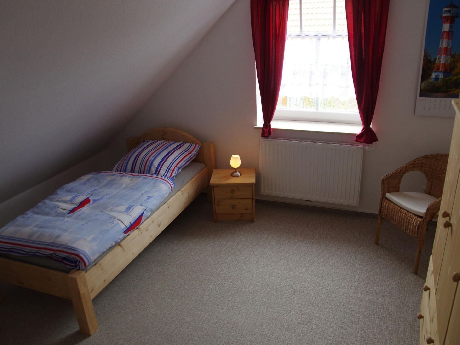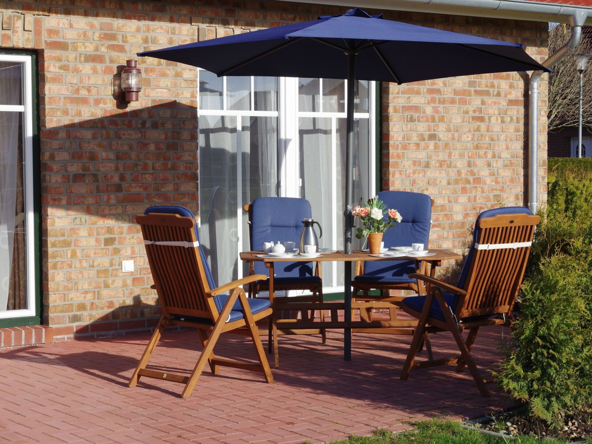 Spacious wellness holiday home with sauna, wood-burning stove and south-facing terrace for the whole familyYour holiday accommodation offers four bedrooms, one of which is on the ground floor, and two shower rooms. The house is therefore equipped for eight people, ideal for two families. The sauna and the wood-burning stove in the living room are ideal for a holiday not only in summer. The beautiful wooden beamed ceiling and the maritime furnishings give the house a very special character. On the ground floor is the spacious living/dining area with large doors leading onto the south-facing terrace. The kitchen is fully equipped with an oven, microwave, dishwasher and much more. A washing machine and tumble dryer are housed in the directly adjoining utility room. The ground floor bathroom has a shower, WC, bidet and private sauna. One of the (parents') bedrooms with a double bed (1.60 m x 2.00 m) is located on the ground floor and is therefore ideal for bringing the grandparents. There are three further bedrooms on the upper floor, one with a double bed (1.80 m x 2.00 m) and two with two single beds (each 0.90 m x 2.00 m). There is also another bathroom with shower. Note on WLAN: Unfortunately, the providers only allow a maximum Internet speed of UMTS. Instead of WLAN, you can refuel for a few days.The holiday home is located in Grimersum (approx. five km to Greetsiel). It is located in a quiet residential area with other holiday and private houses in a cul-de-sac.The boat harbour is only 60 m away. The canal there has a connection to Greetsiel and Emden; in summer by (paddle) boat, in winter partly by skate. A nice public playground is only a few steps away, so you can leave the children alone. A restaurant and shopping facilities are approx. 3 km away.Two car parking spaces belong to the property. The garden shed contains garden furniture and a barbecue. Enjoy sunbathing or marvellous barbecue evenings on the south-facing terrace.