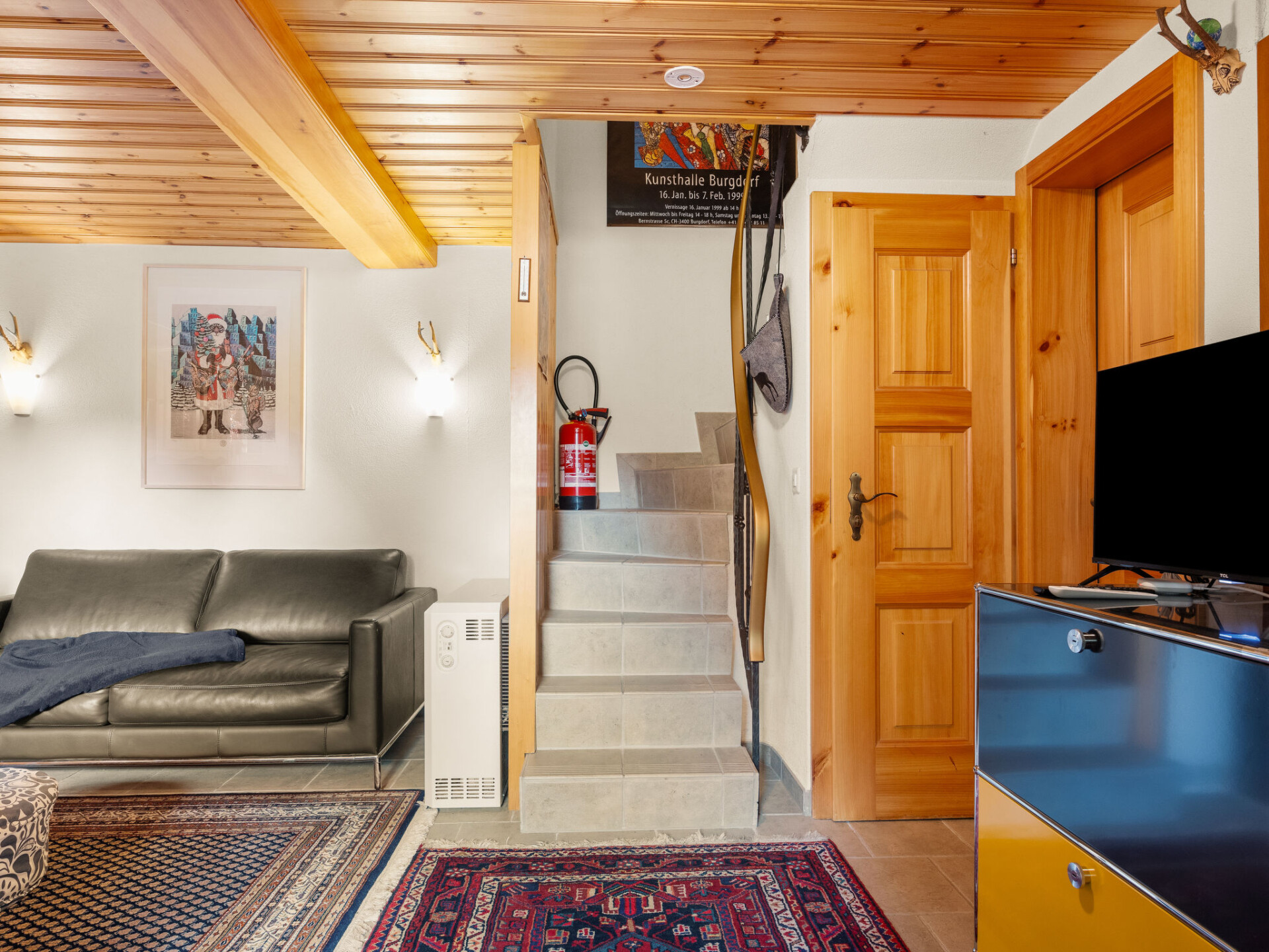 "Lätthaus Rot", huis 3-kamers 75 m2 op 2 verdiepingen. Eenvoudig en comfortabel ingericht: woon-/eetkamer met zwedenkachel, eettafel, Digitale TV, elektrische verwarming en boiler. Uitgang naar de tuin, naar het terras. Open keuken (oven, afwasmachine, 4 keramische glas kookplaten, broodrooster, waterkoker, elektrische koffiemachine, raclette oven, fondue Set (kaas)). Aparte WC. Elektrische verwarming. Bovenverdieping: (wenteltrap), 1 2-pers. kamer met 1 2-pers bed (180 cm, lengte 200 cm). 1 kamer met 1 bed (90 cm, lengte 200 cm). Douche/WC. Natuurstenen vloeren. Terrasmeubelen, barbecue, ligstoelen. Uitzicht op het landschap. Ter beschikking: wasmachine. Internet (Internet (WiFi), gratis). Parkeerplaats bij het huis, in de winter op 100 m. Rookvrij huis.