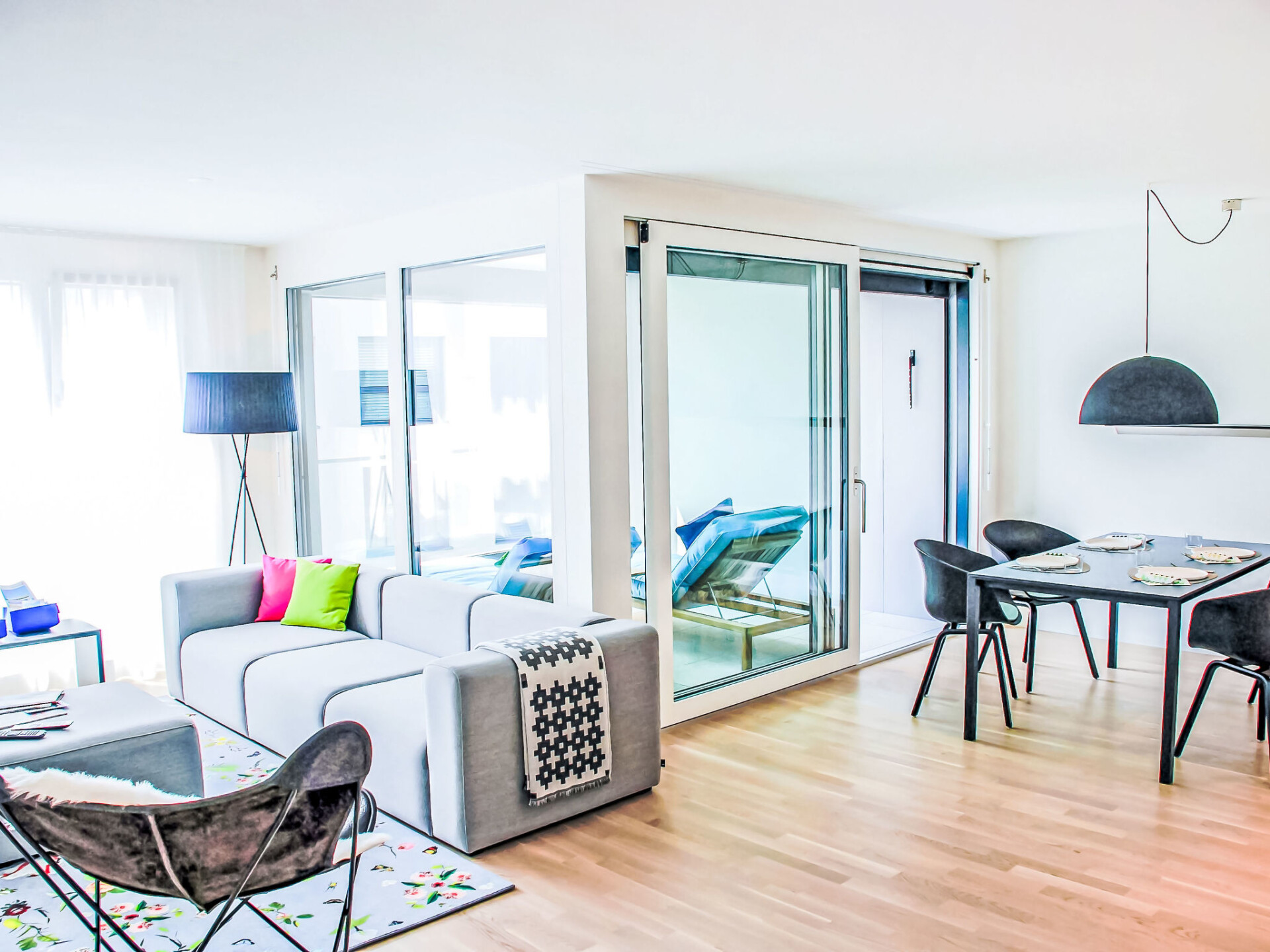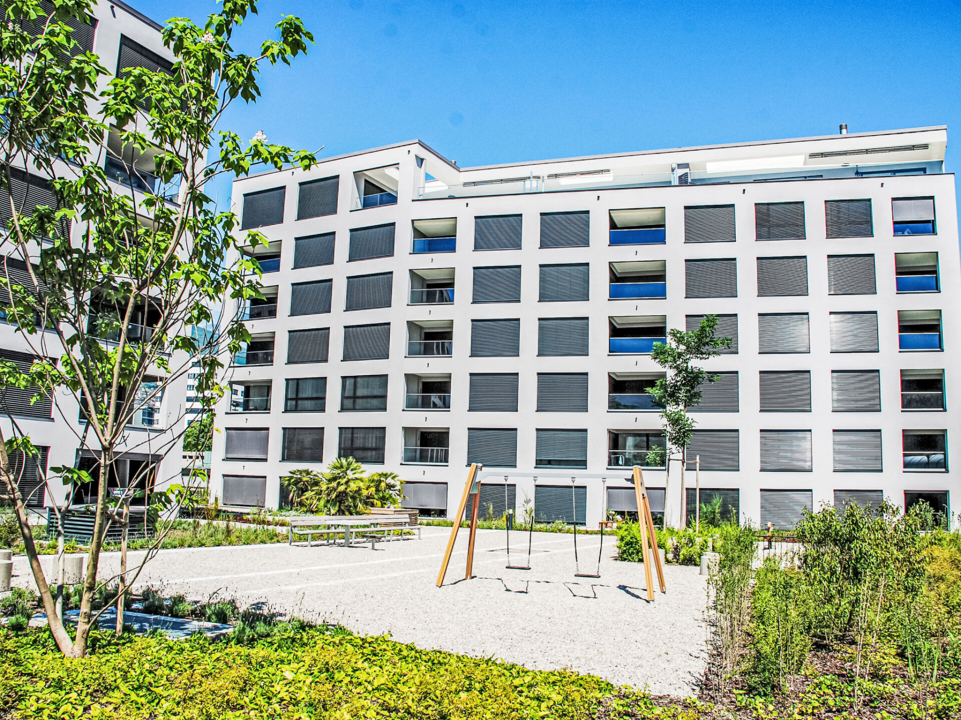 "LaVille A-3-3", appartement 3-kamers 89 m2 op de 3e verdieping, op het zuidwesten gelegen. Ruim en licht, modern en smaakvol ingericht: groot, open woon-/eetkamer met Sat-TV en Flatscreen TV. 1 2-pers. kamer met 1 2-pers bed (2 x 90 cm, lengte 200 cm). 1 kamer met 2 bedden (90 cm, lengte 200 cm). Open keuken (oven, afwasmachine, 4 inductiekookplaten, diepvriezer, elektrische koffiemachine, pads voor de koffiemachine (Nespresso) extra) met eettafel. Uitgang naar het balkon. Bad/WC, douche/WC. Vloerverwarming. Balkon 9 m2, op het zuiden gelegen en op het westen gelegen. Balkonmeubilair, ligstoelen (1). Uitzicht op de bergen en het landschap. Ter beschikking: wasmachine, droger, strijkijzer, kinderstoel, kinderbed tot 2 jaar (extra), haardroger. Internet (WiFi, gratis). Parkeerplaats nr. 50 (extra), hoogte 210 cm, breedte 230 cm. Niet rokers woning. NL-00006856